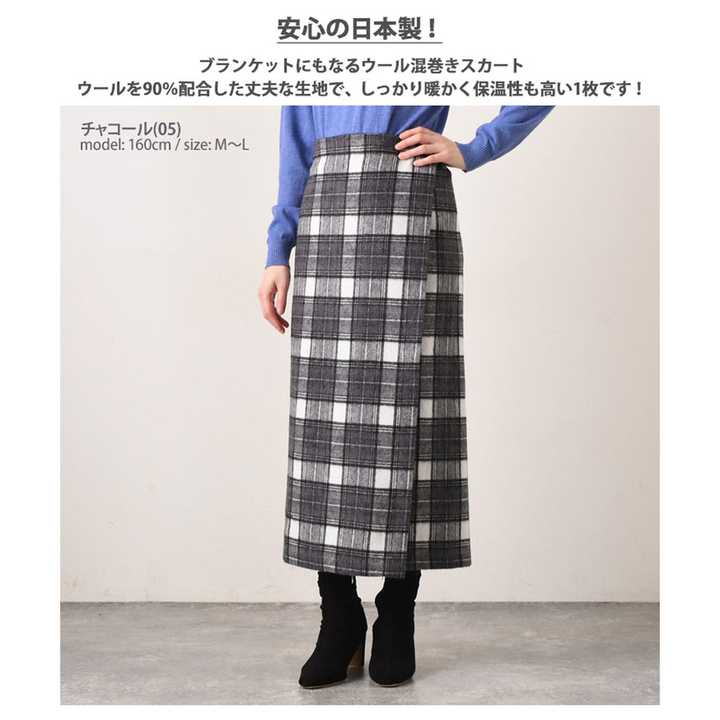 ●安心の日本製!ブランケットにもなるウール混巻きスカート