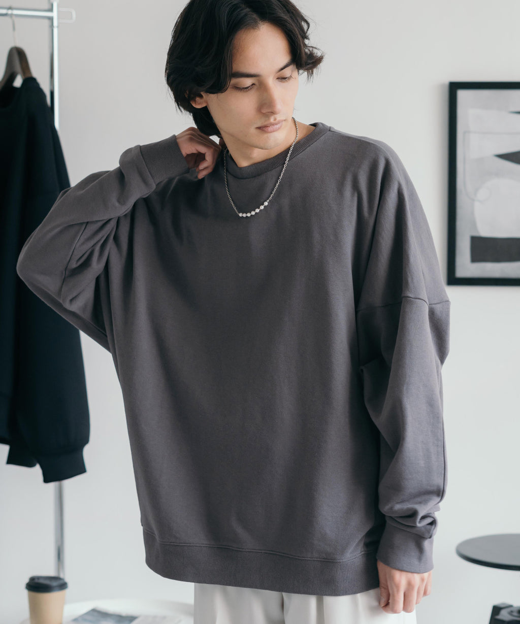 Rocky Monroe Trainer Sweat for Men and Women, Dolman, Back Fleece, Back Pile, Plain, Loose, Oversized, Big Silhouette, Musasabi, Loungewear, Roomwear, Volume