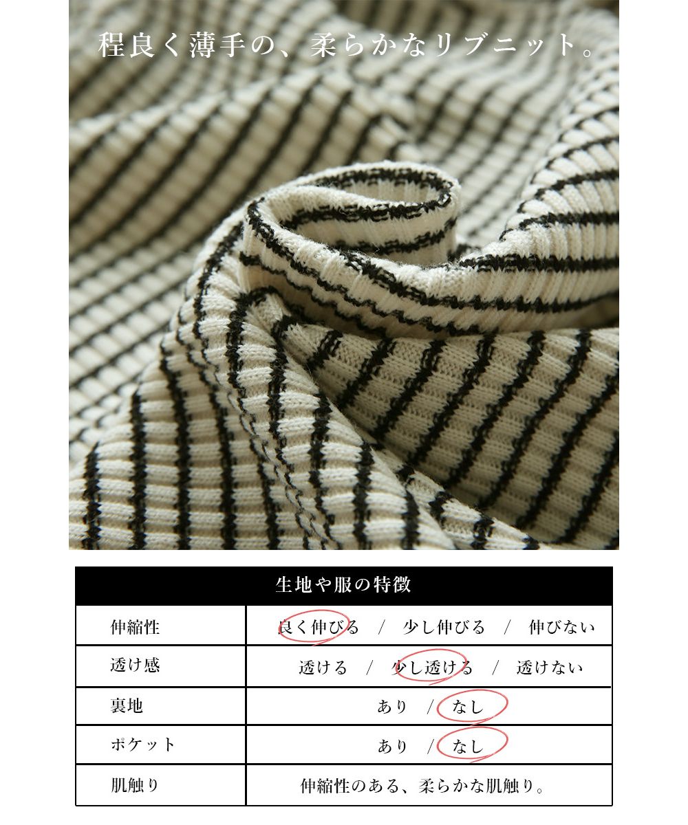 The thin striped design is sophisticated ◎ The cute puffy voluminous sleeves of this ribbed knit are adorable.