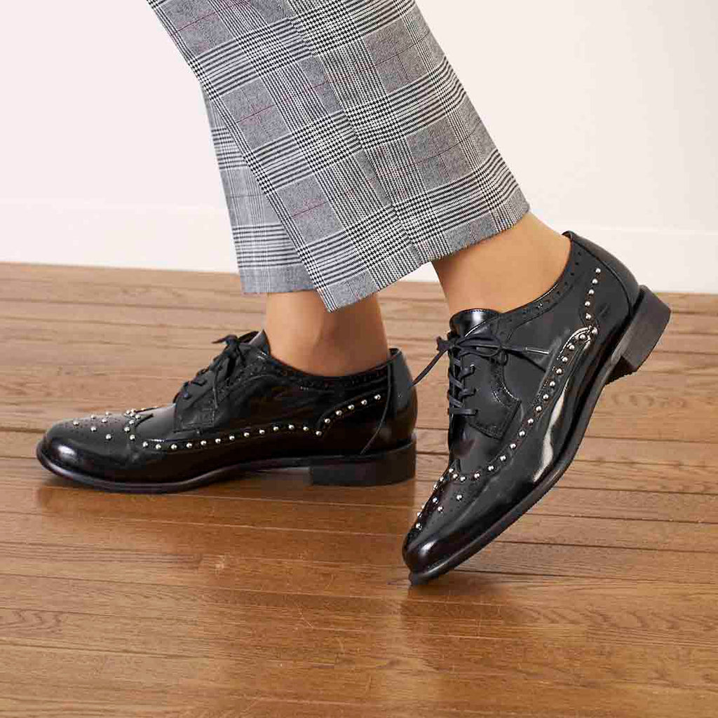 This design features carefully applied studs that catch the eye, making it an item that sharpens your usual style.