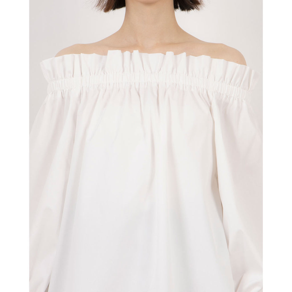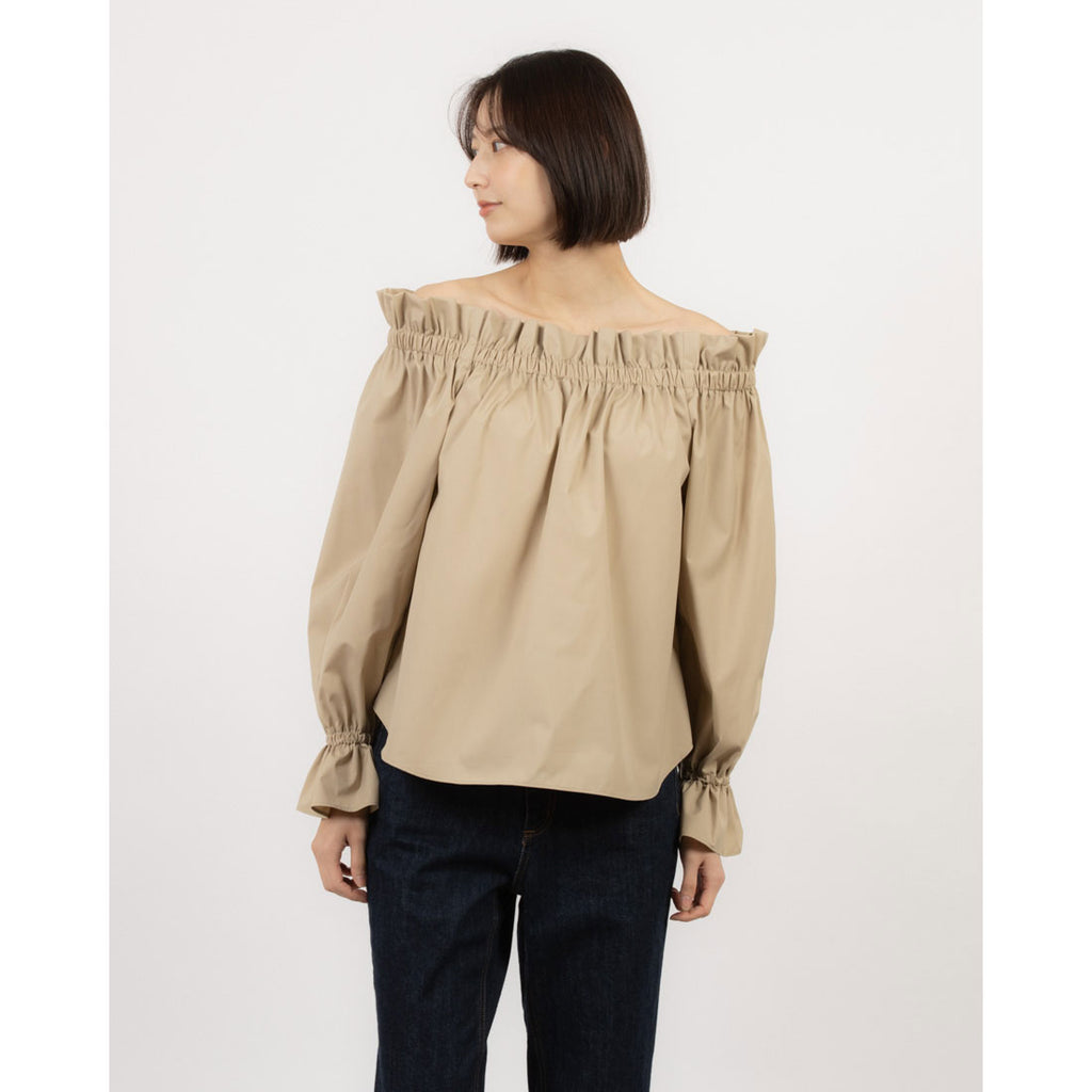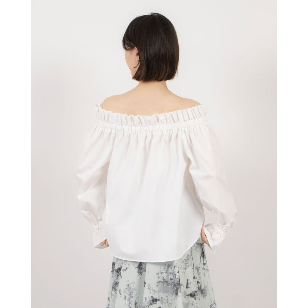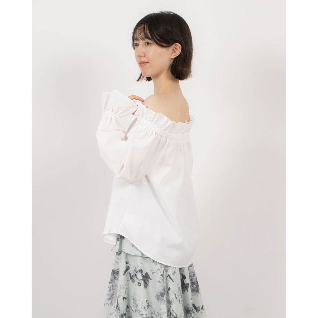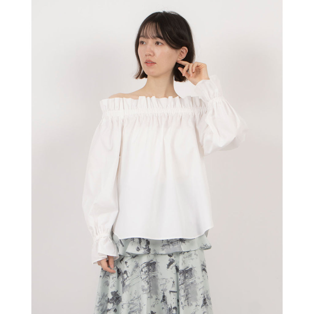 A blouse featuring an off-shoulder design that makes the shoulders look delicate.