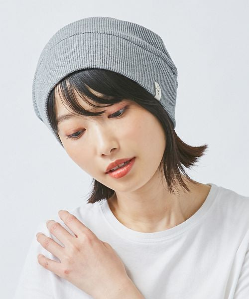 A beanie featuring a distinctive organic cotton 100% cross switch.