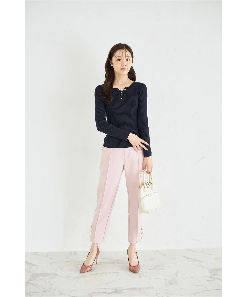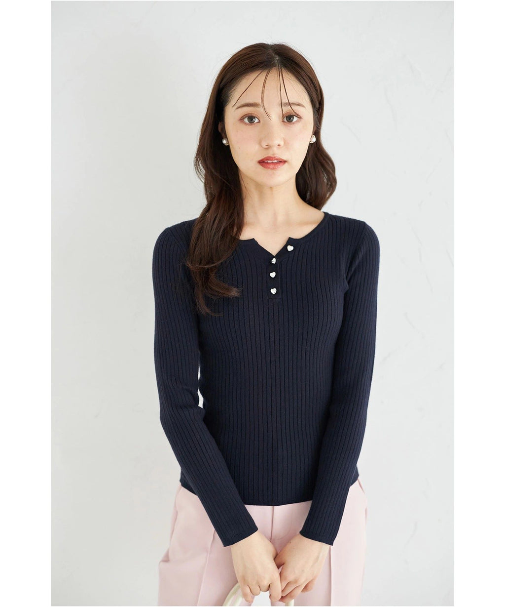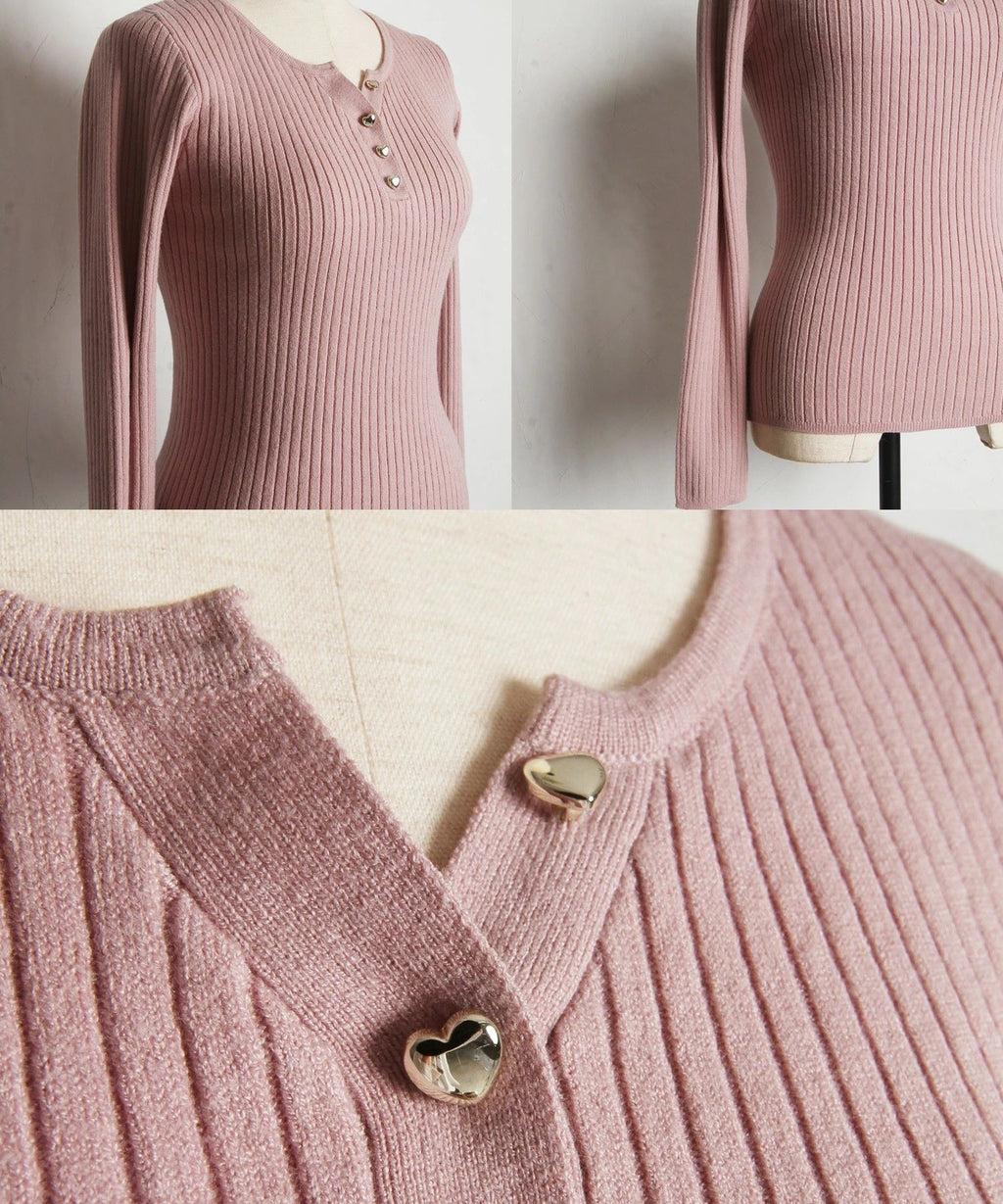 Tocco Closet Henry Neck Heart Button Rib Knit