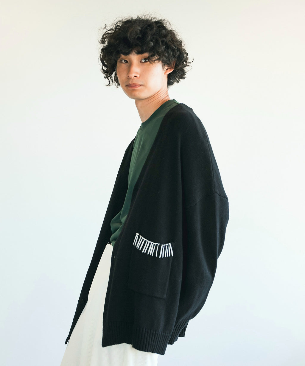 - The ribbed part of the pocket features decorative stitching, making it a cardigan that is simple yet has a unique personality compared to others.