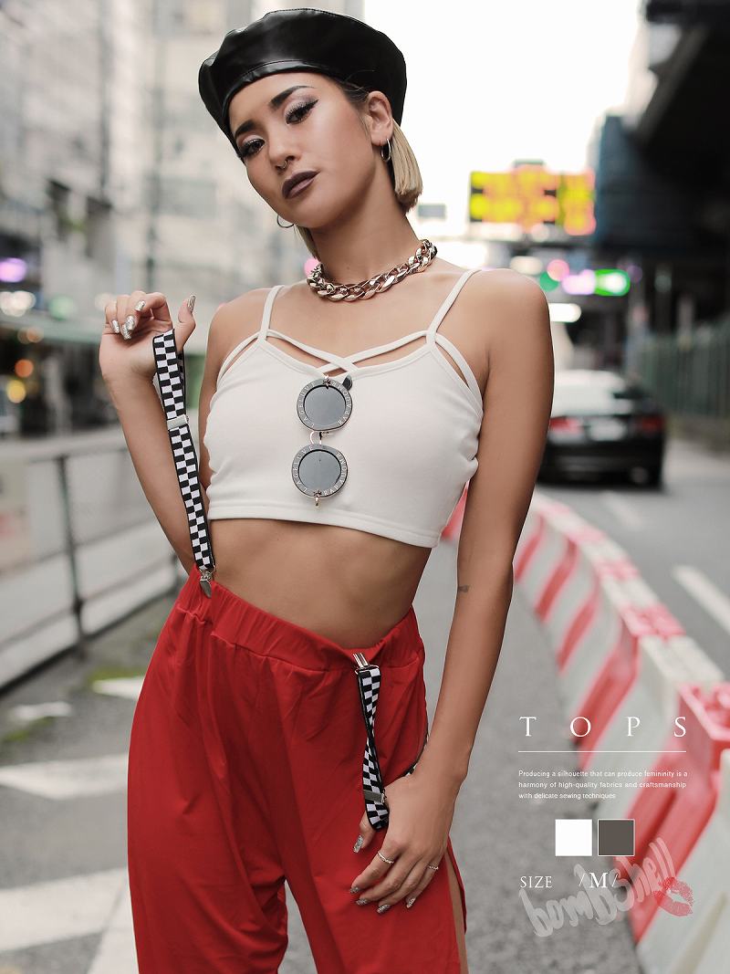 Bombshell camisole tank top with cups, solid color, half top, non-wire, cross, bear top, camisole, stretch, dance, inner bombshell