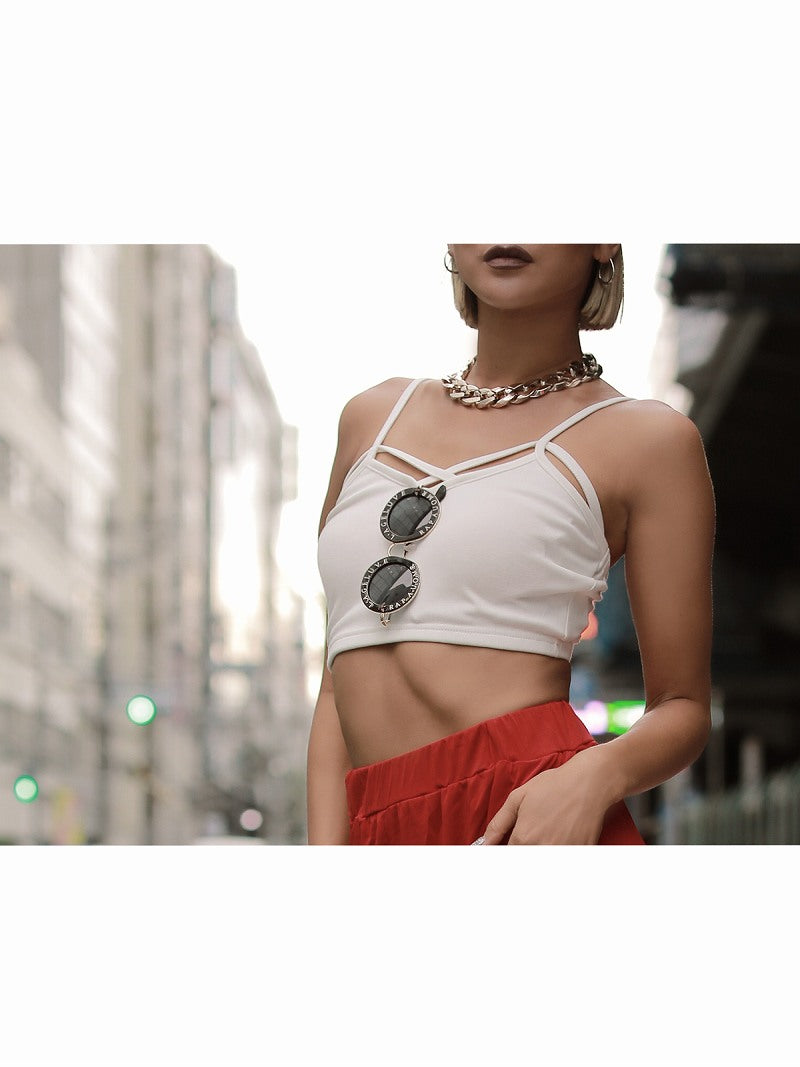 ☆ At first glance, it's a simple solid-colored half-top bustier, but the front features a cross design that subtly adds an accent!