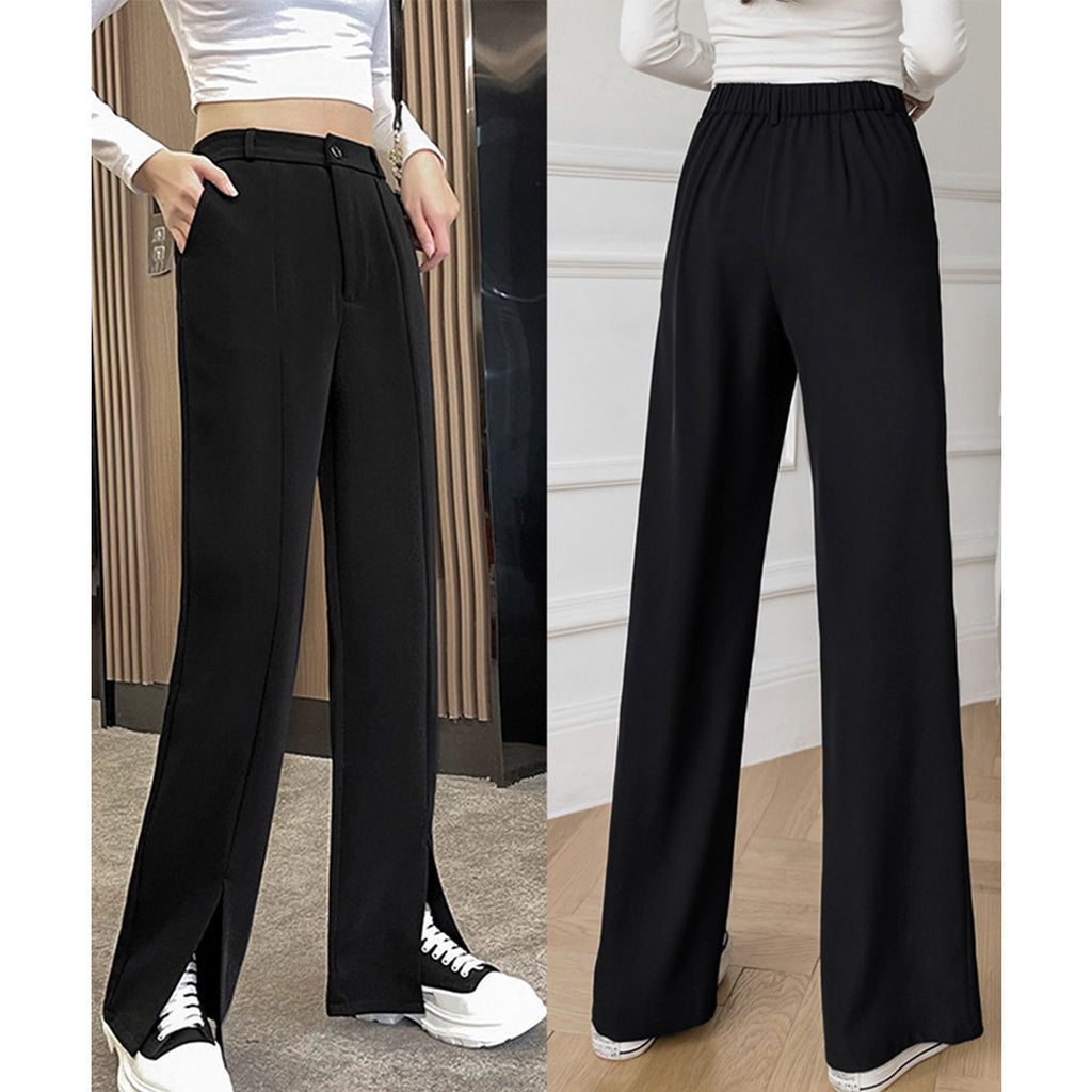 Ladies High Waist Long Pants Slimming Stylish Casual Straight Pants Leg Lengthening