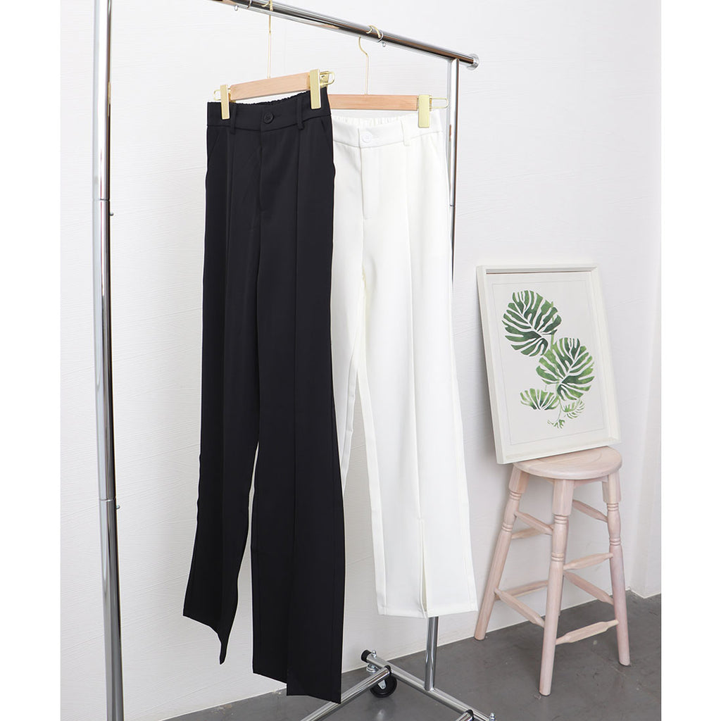 High-waisted center-pressed pants that create a sleek and slim silhouette.