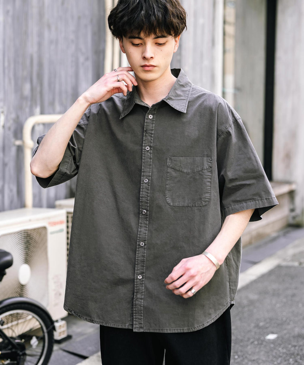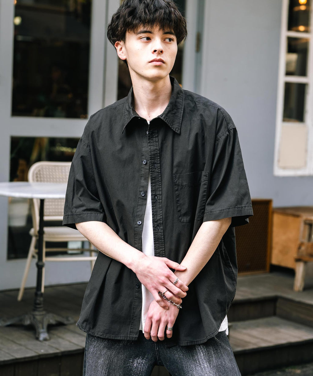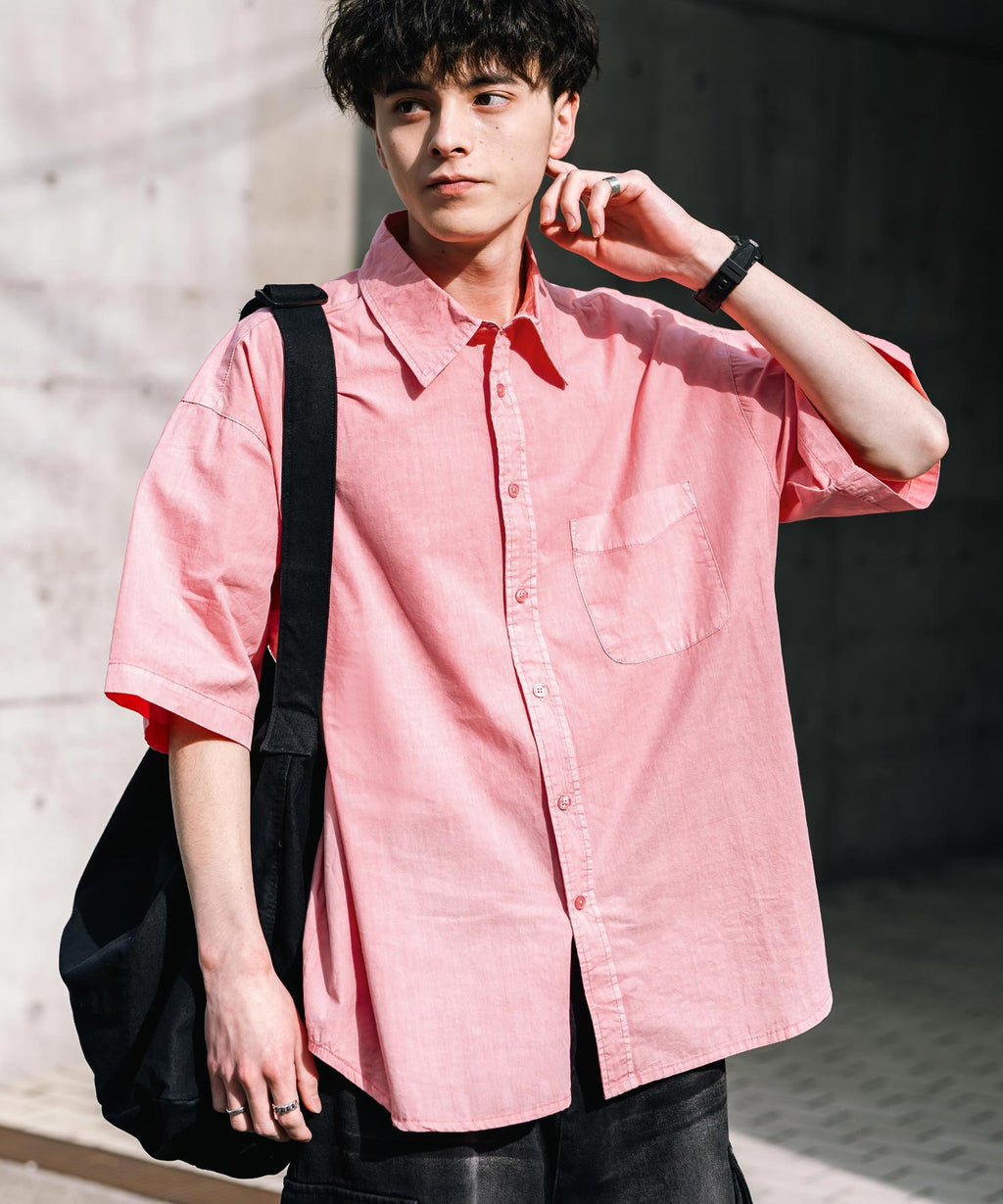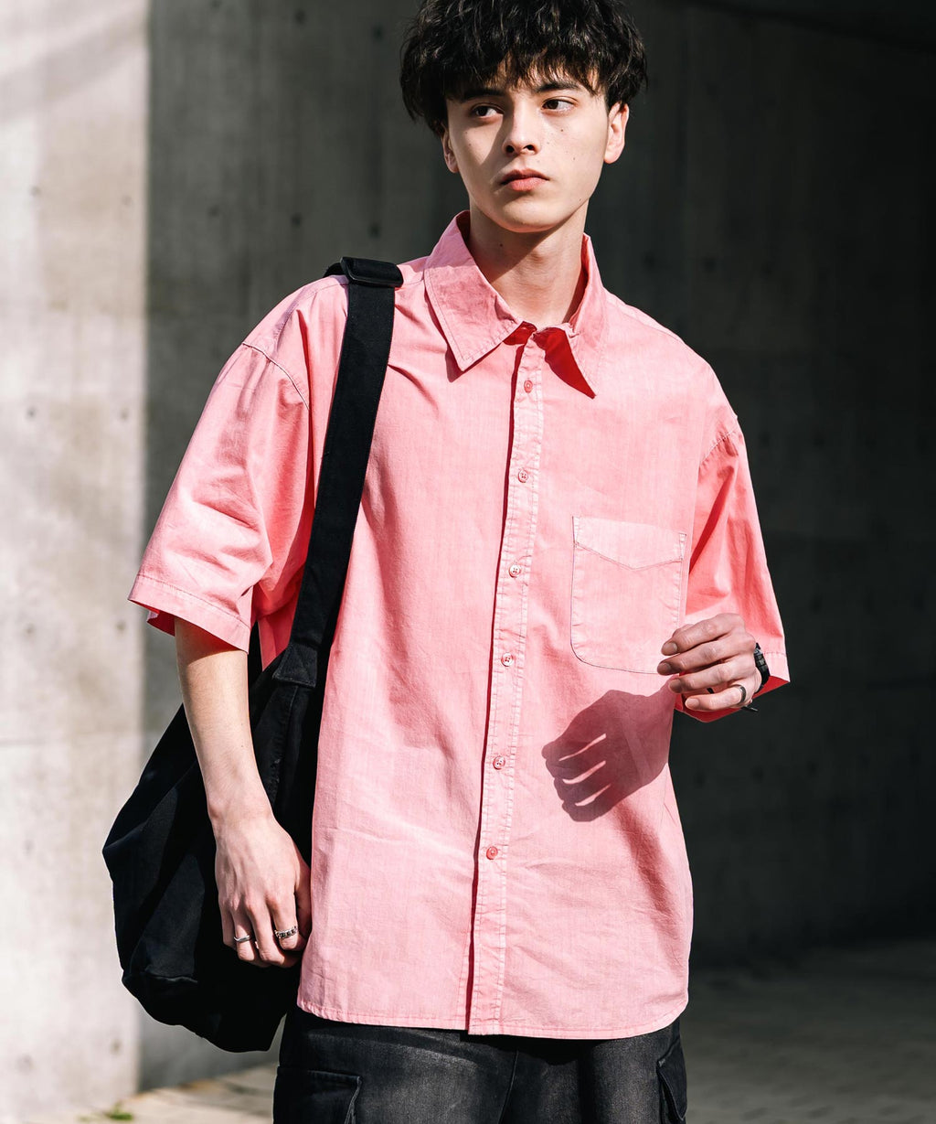 Rocky Monroe Casual Shirt Short Sleeve Pigment Men's Women's Broad Solid Oversized Vintage Used Feel Garment Dyed Fade Street 14391