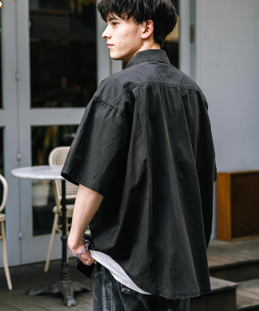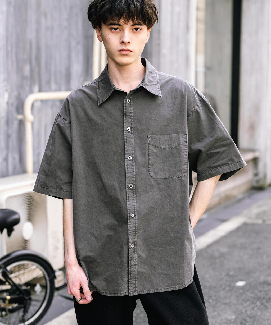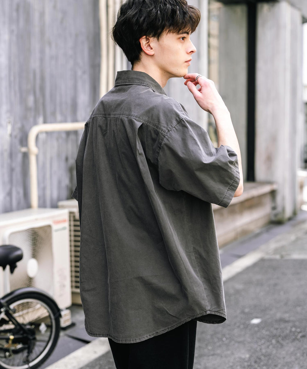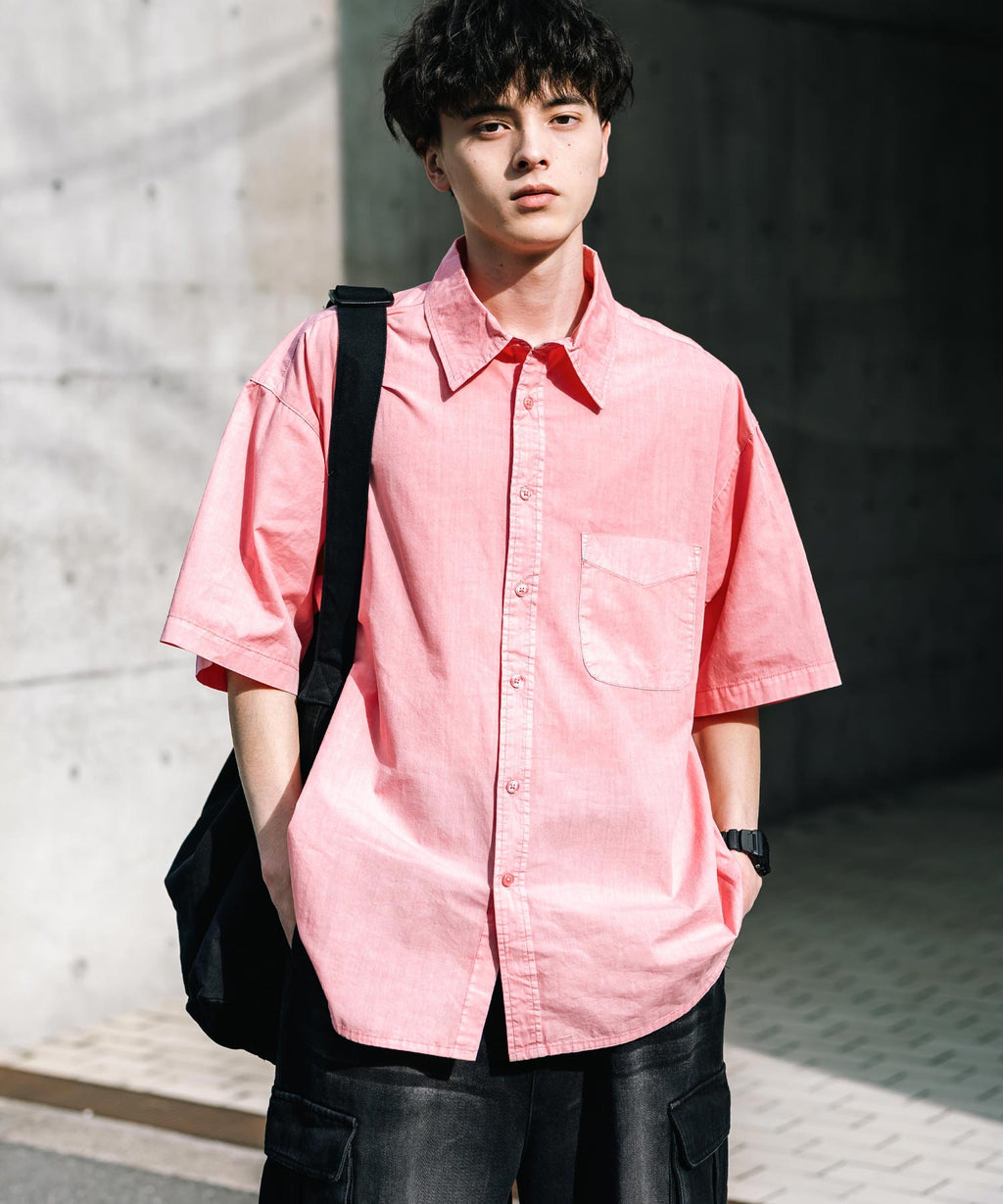 Rocky Monroe Casual Shirt Short Sleeve Pigment Men's Women's Broad Solid Oversized Vintage Used Feel Garment Dyed Fade Street 14391
