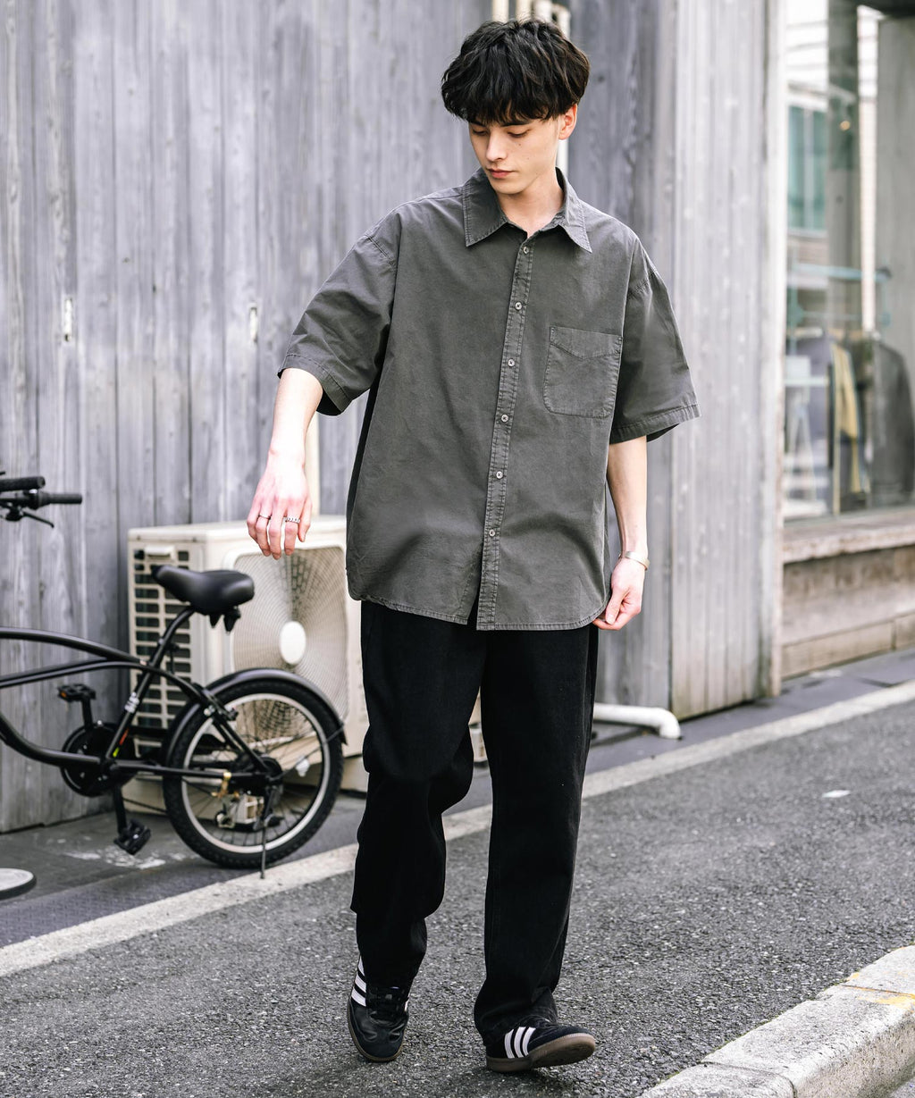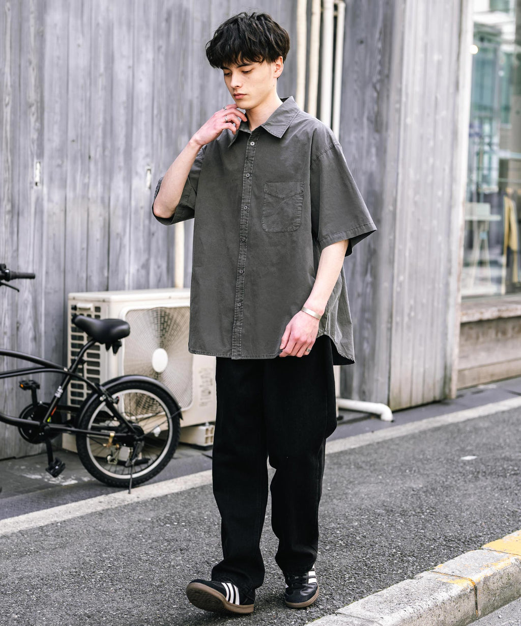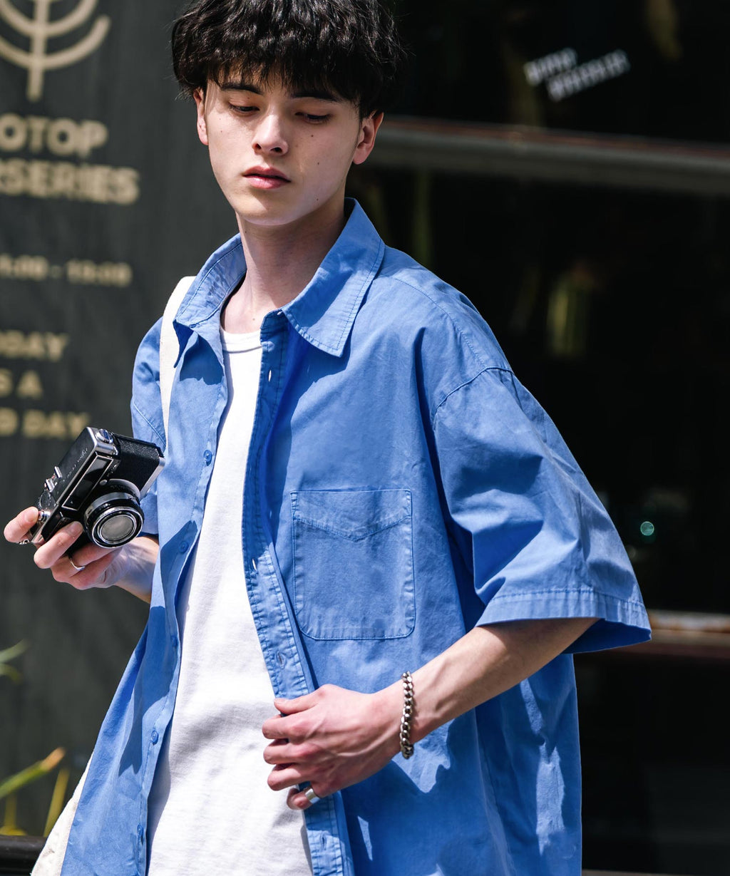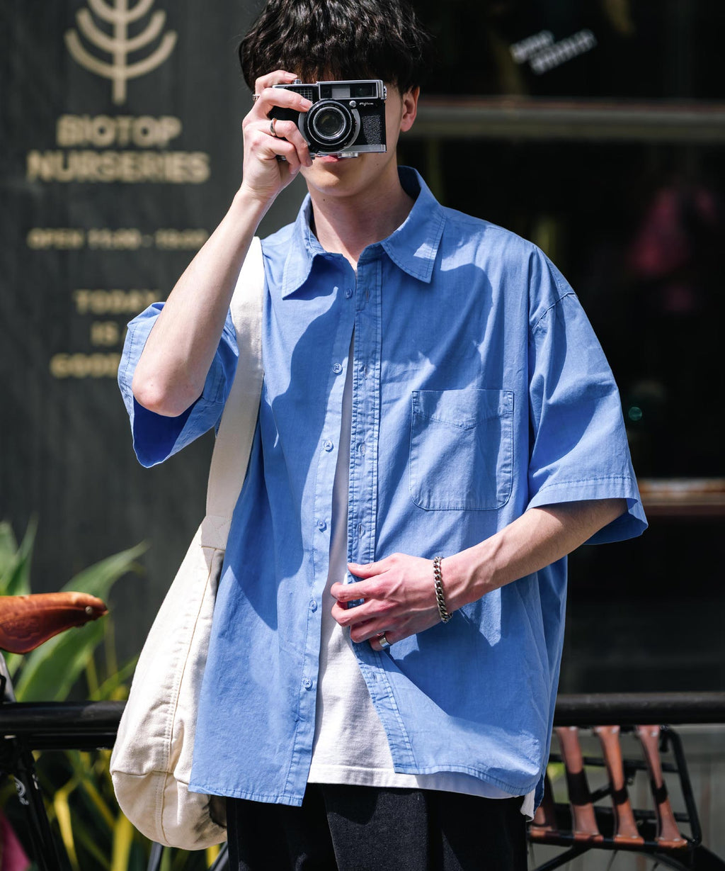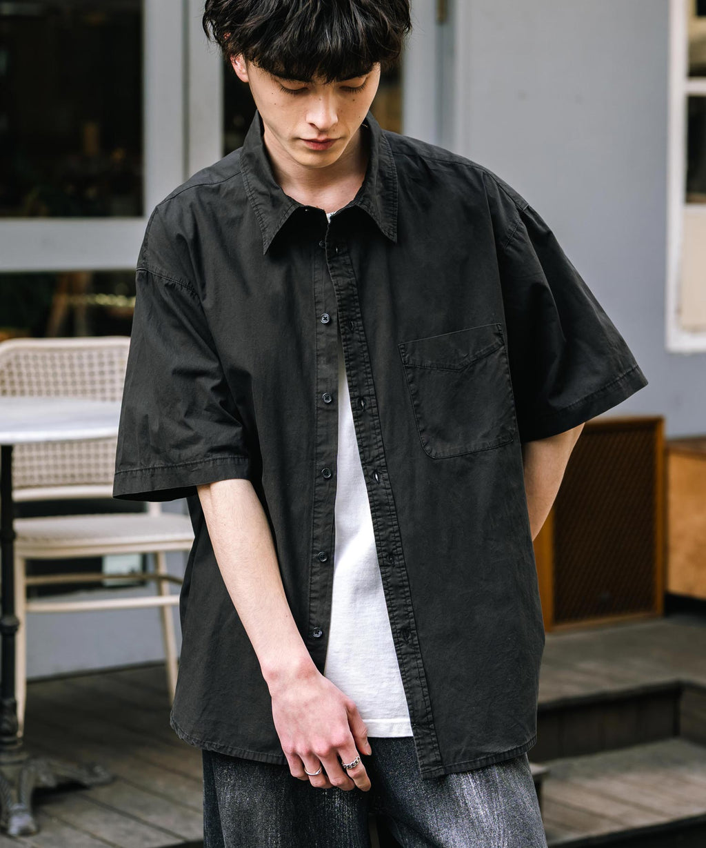 Rocky Monroe Casual Shirt Short Sleeve Pigment Men's Women's Broad Solid Oversized Vintage Used Feel Garment Dyed Fade Street 14391