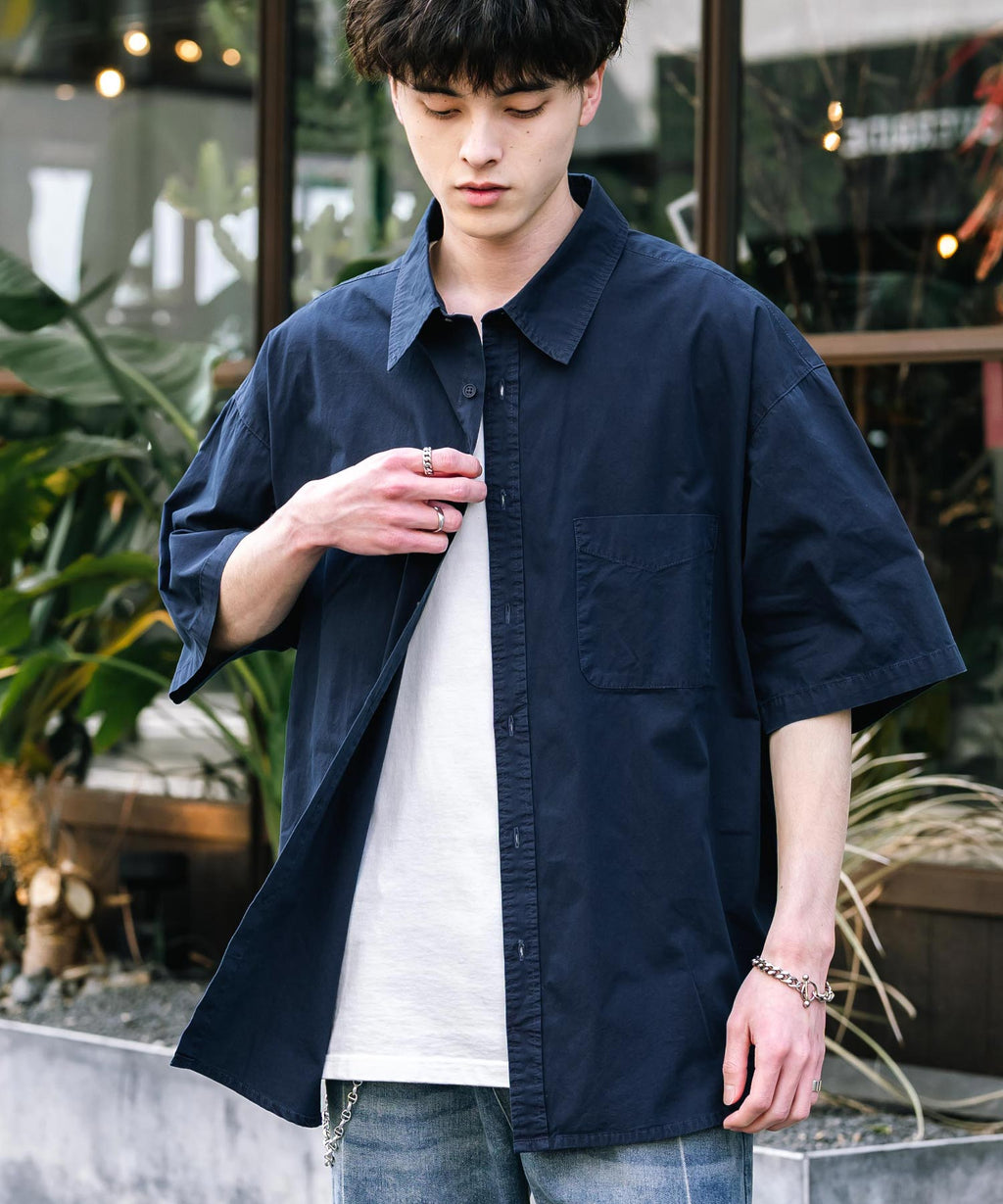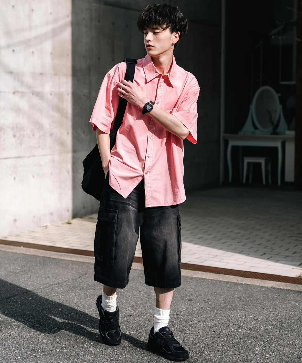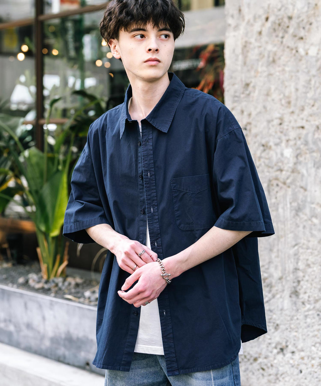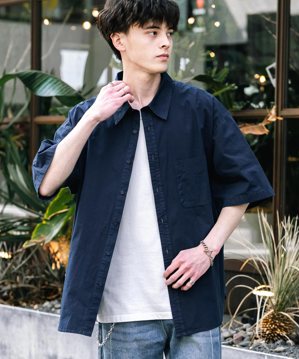 Rocky Monroe Casual Shirt Short Sleeve Pigment Men's Women's Broad Solid Oversized Vintage Used Feel Garment Dyed Fade Street 14391