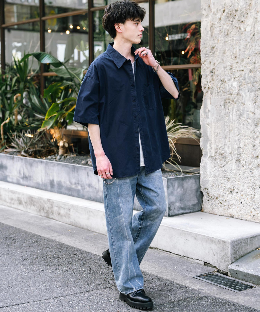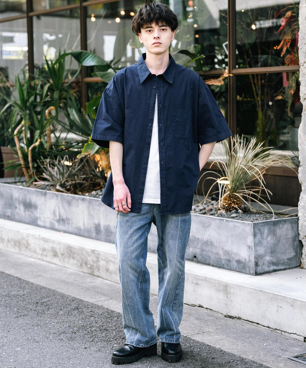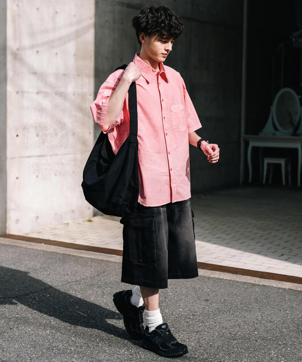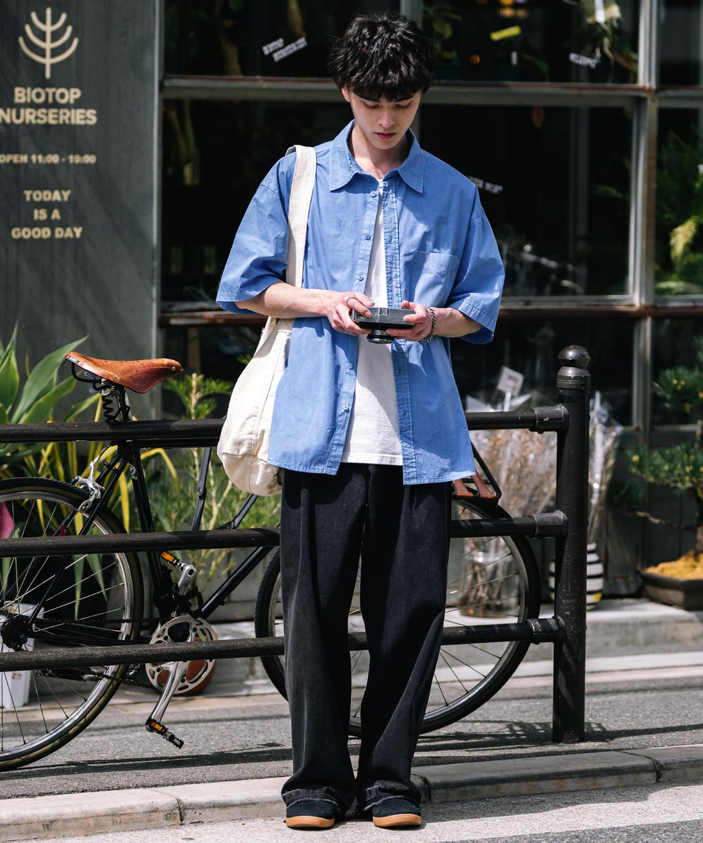 Rocky Monroe Casual Shirt Short Sleeve Pigment Men's Women's Broad Solid Oversized Vintage Used Feel Garment Dyed Fade Street 14391