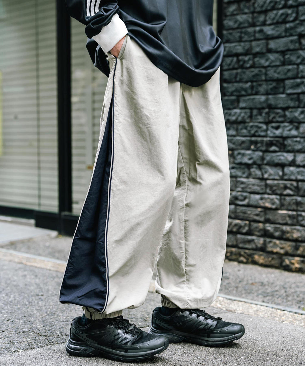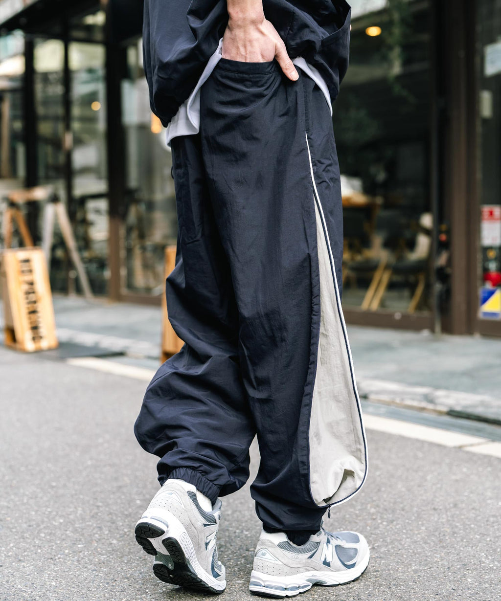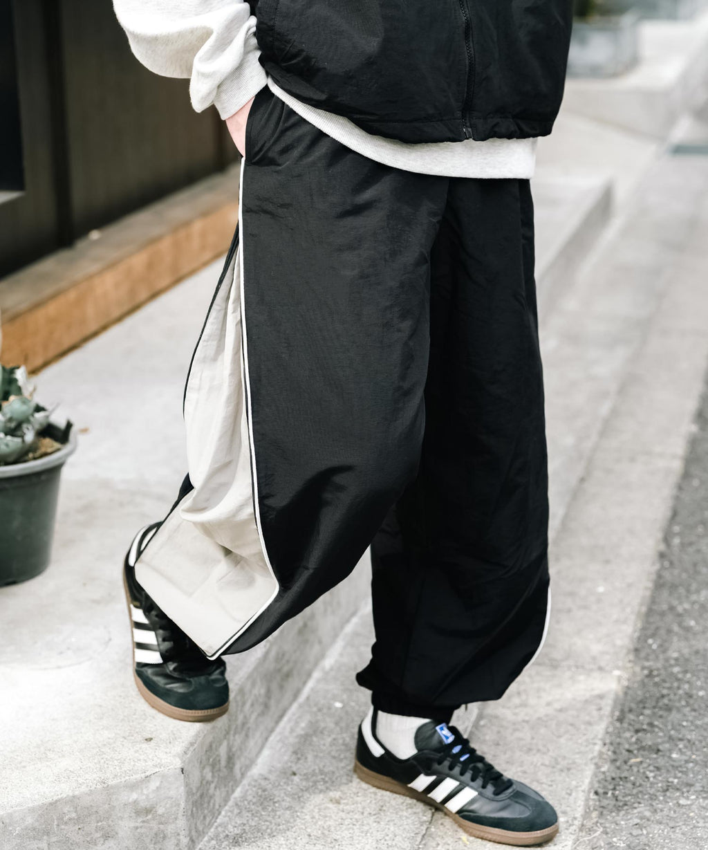 Rocky Monroe track pants nylon side zip wide men's women's color scheme 2way tech style piping easy jogger skater drawcord 14308