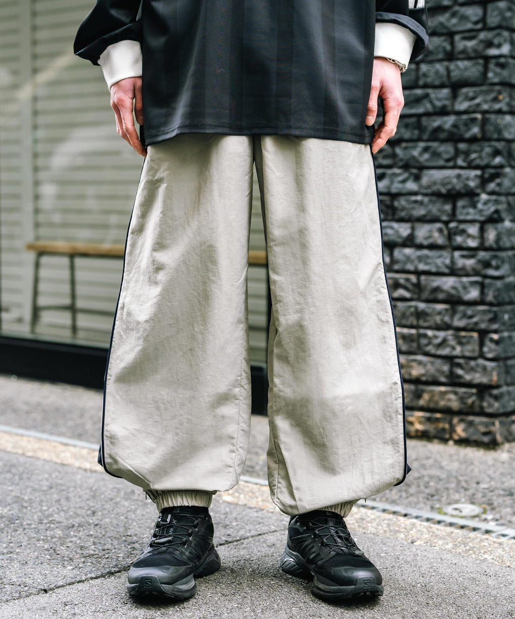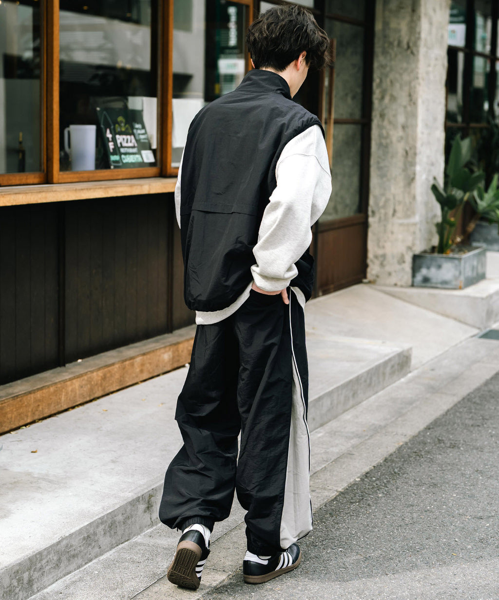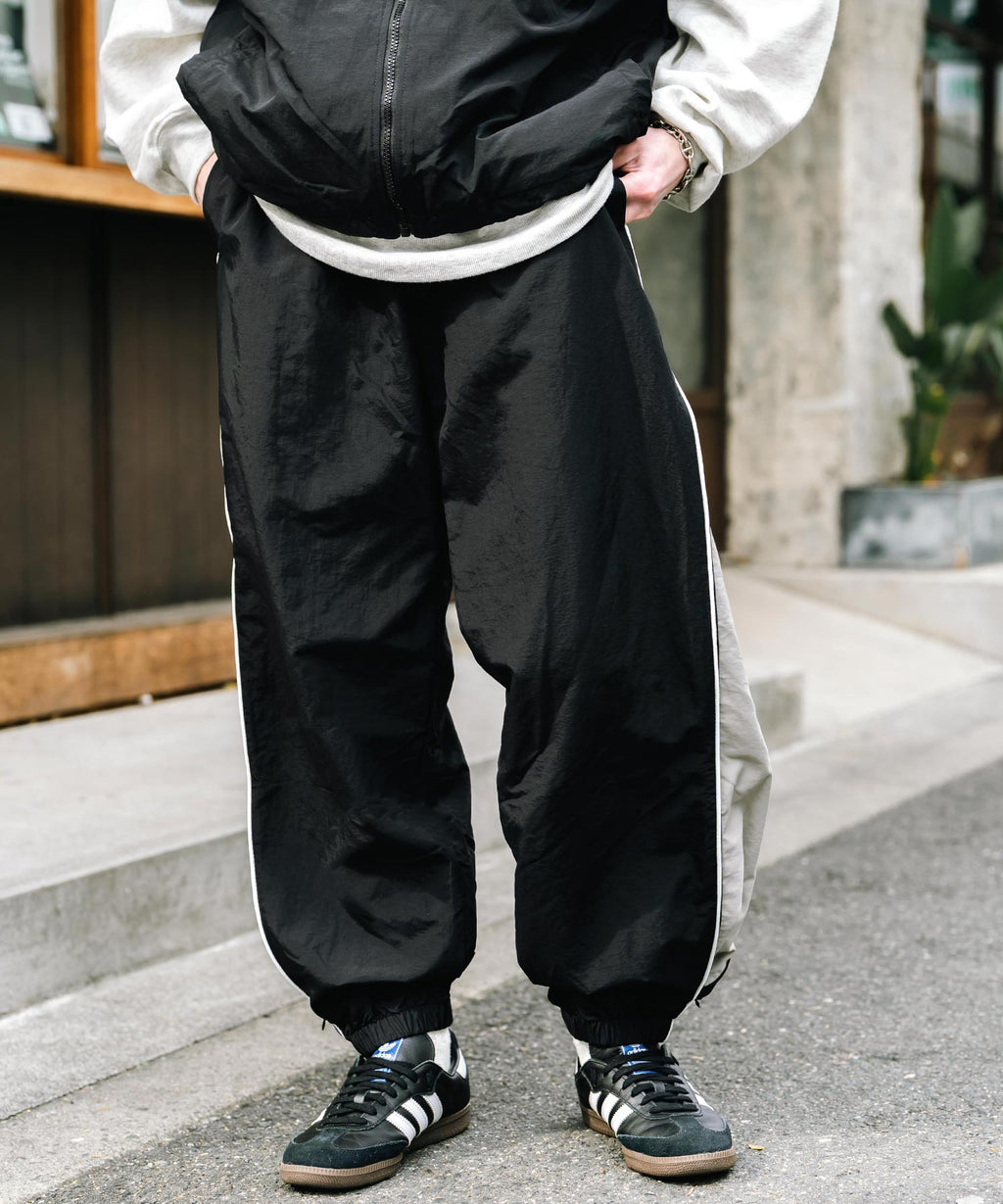 Rocky Monroe track pants nylon side zip wide men's women's color scheme 2way tech style piping easy jogger skater drawcord 14308