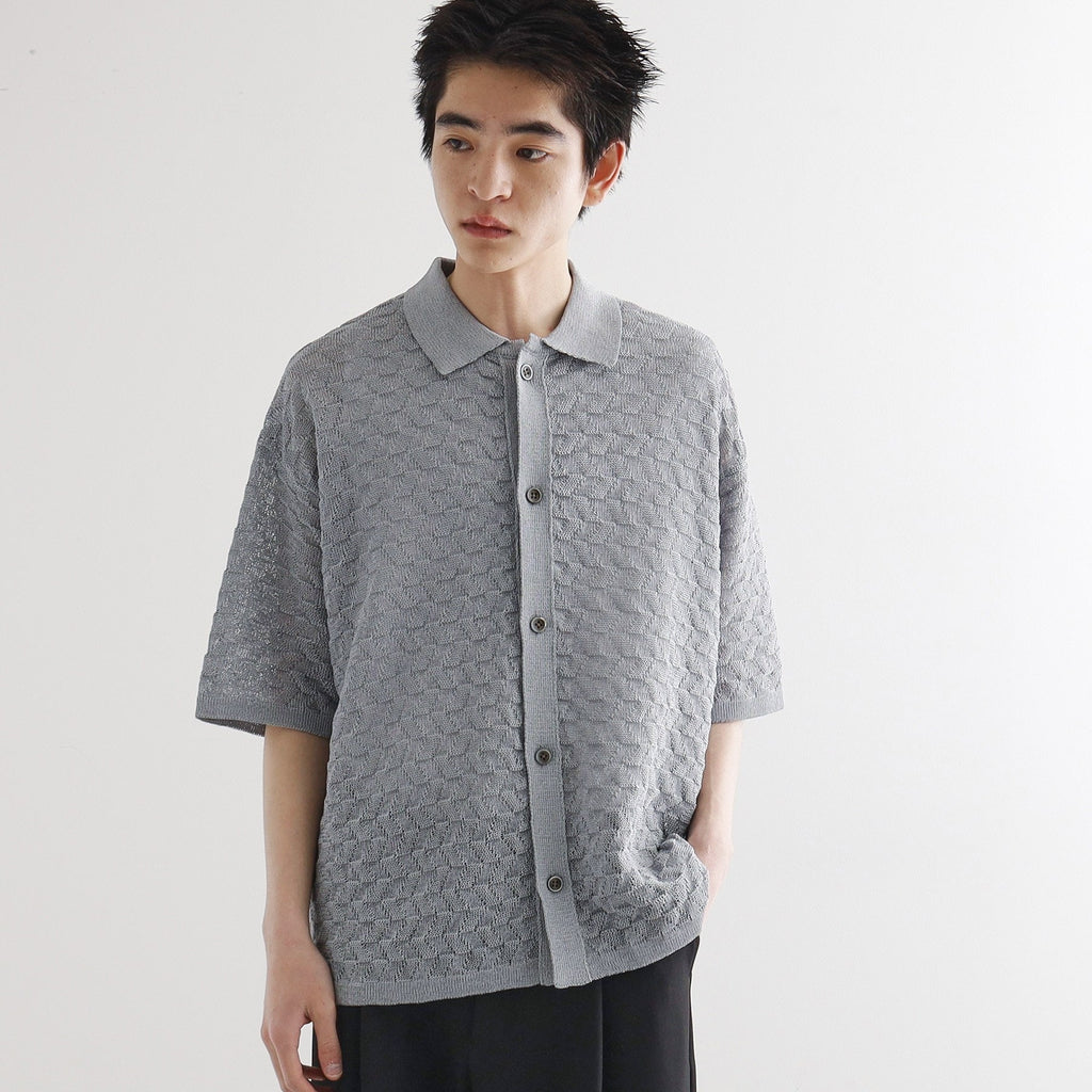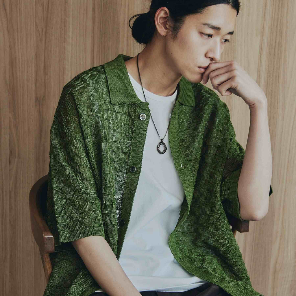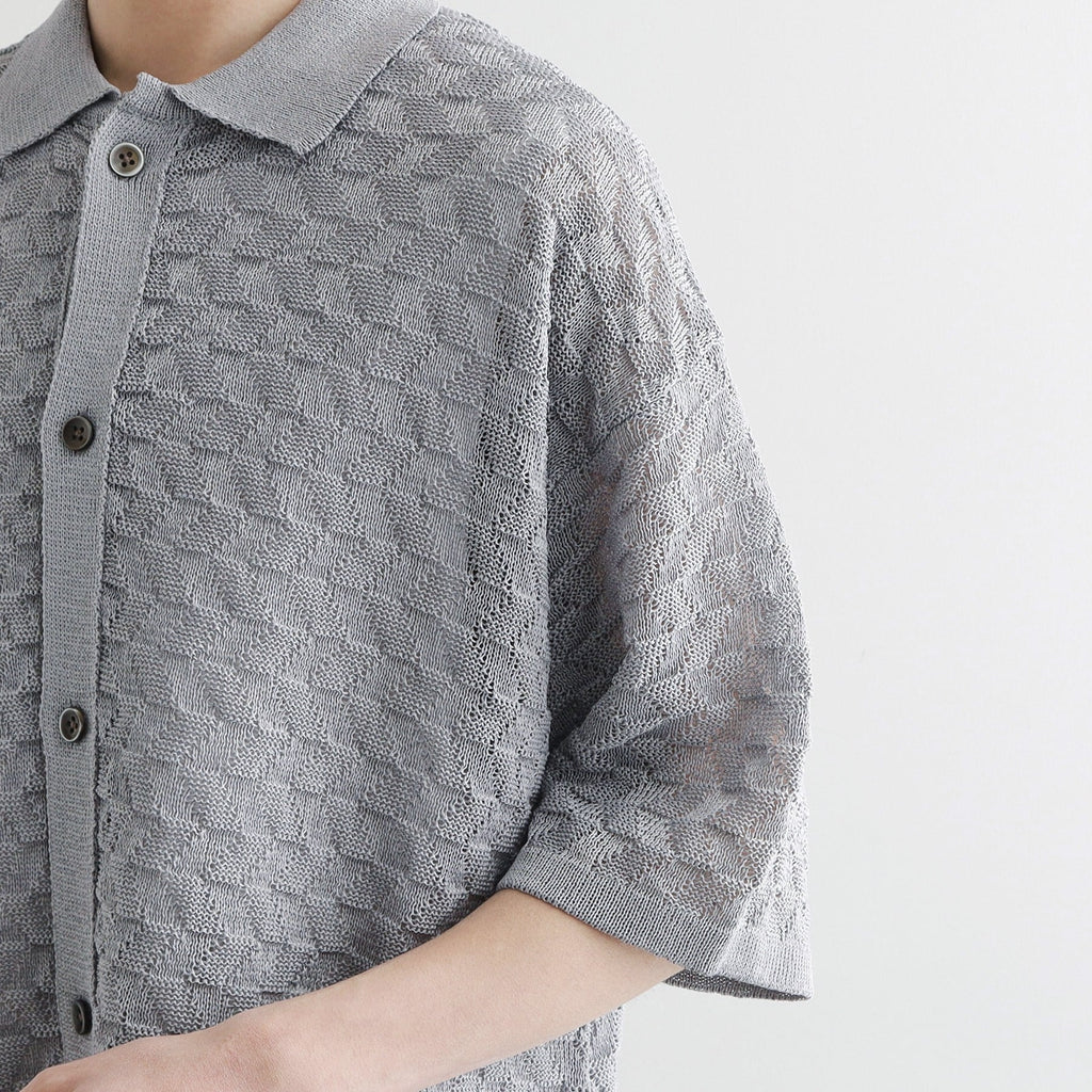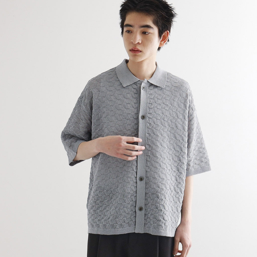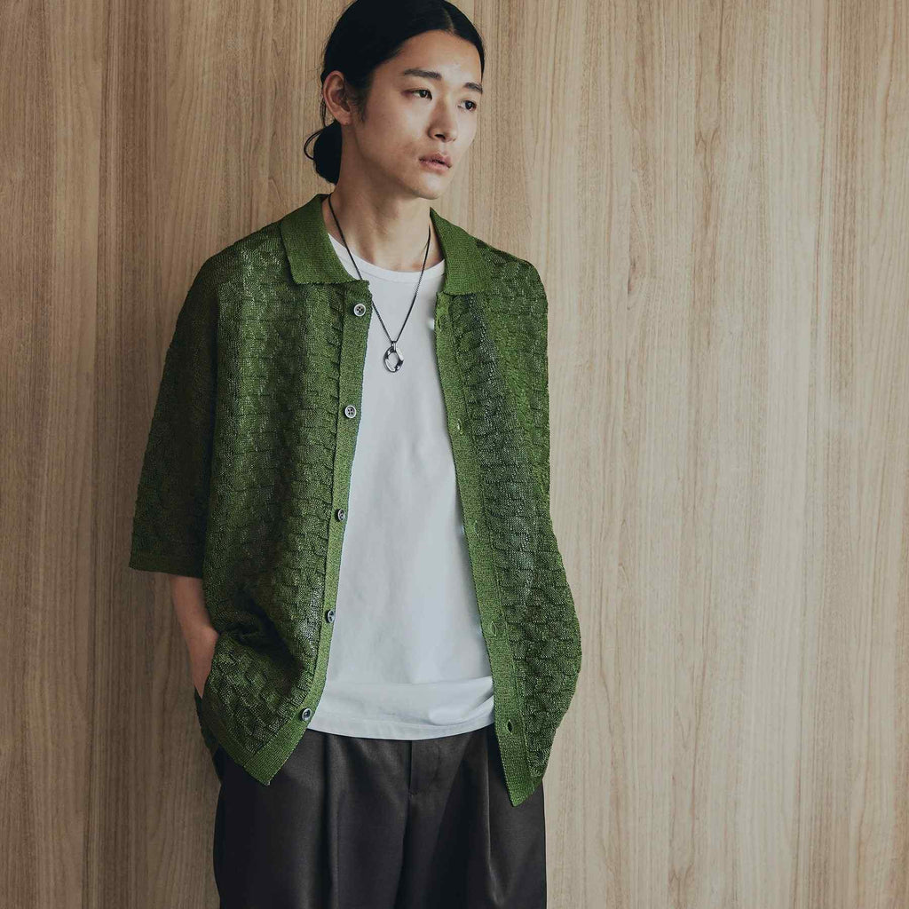 This is a recommended front-opening knit shirt made of straw yarn for the hot season.