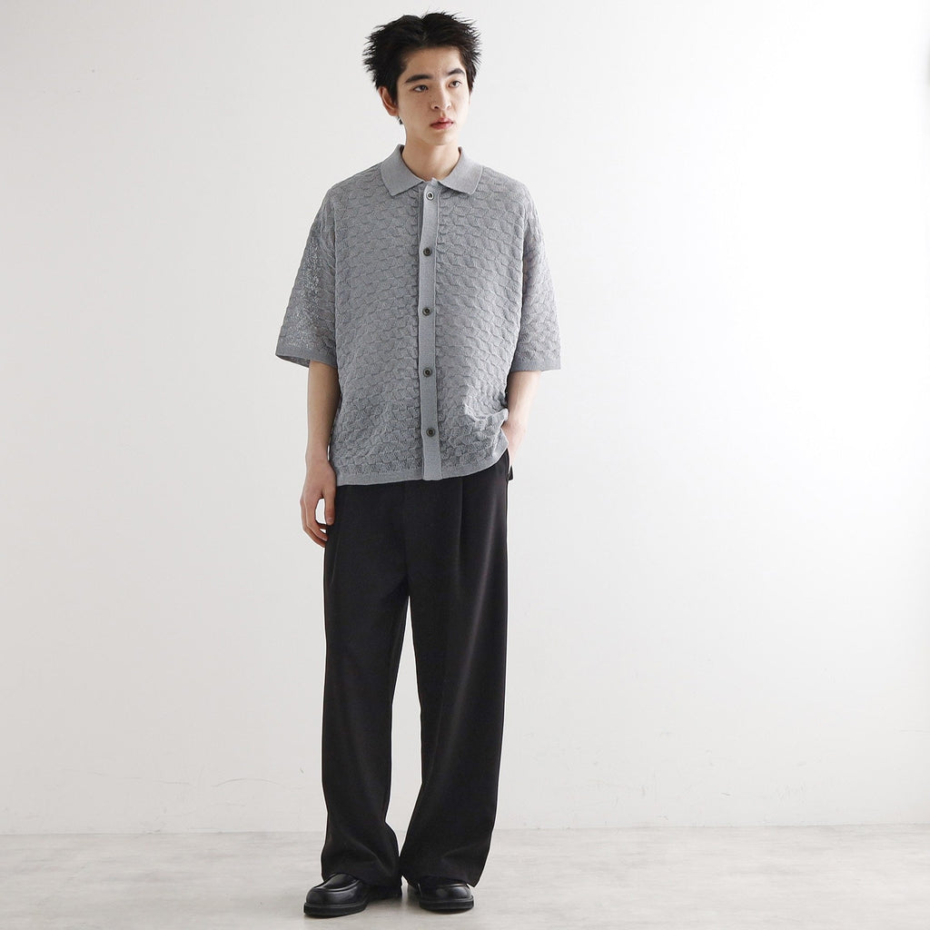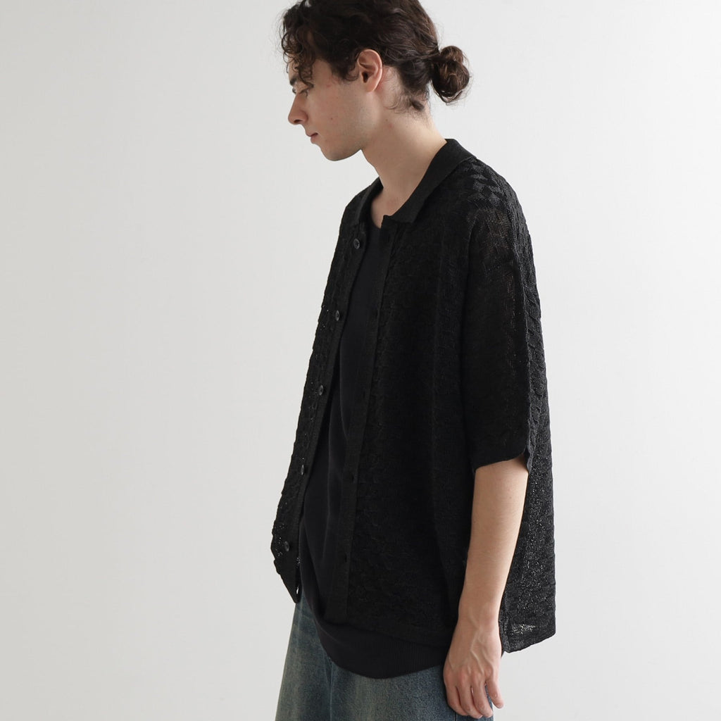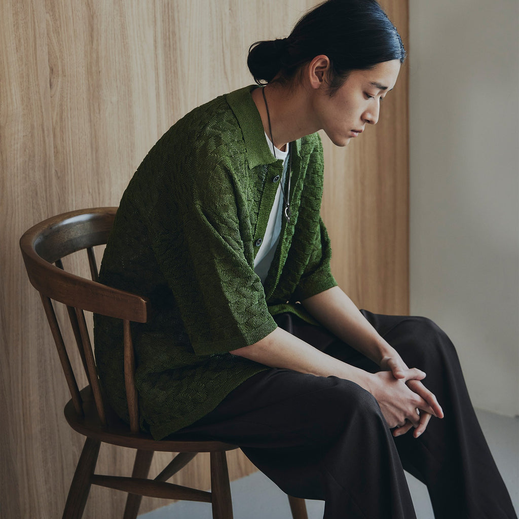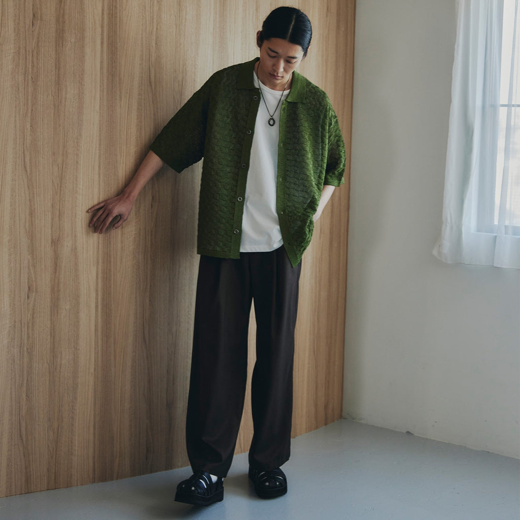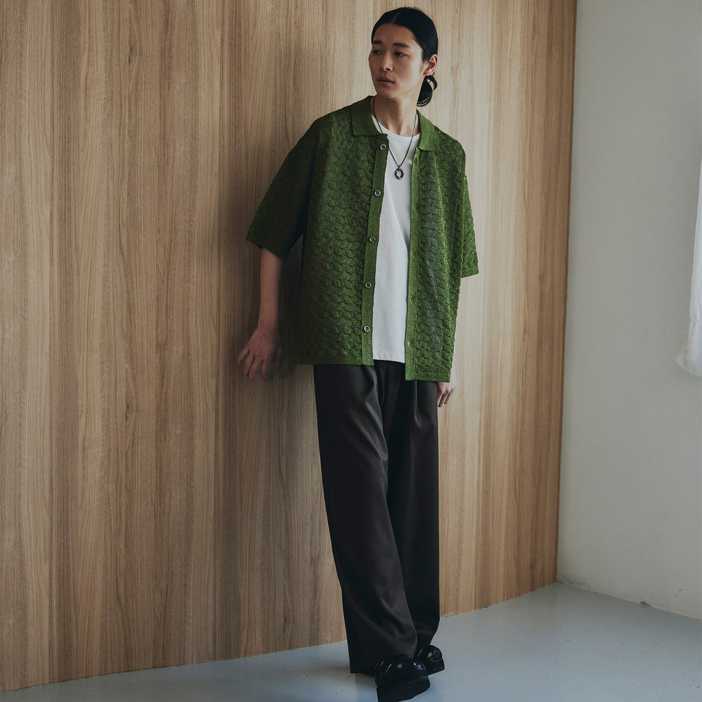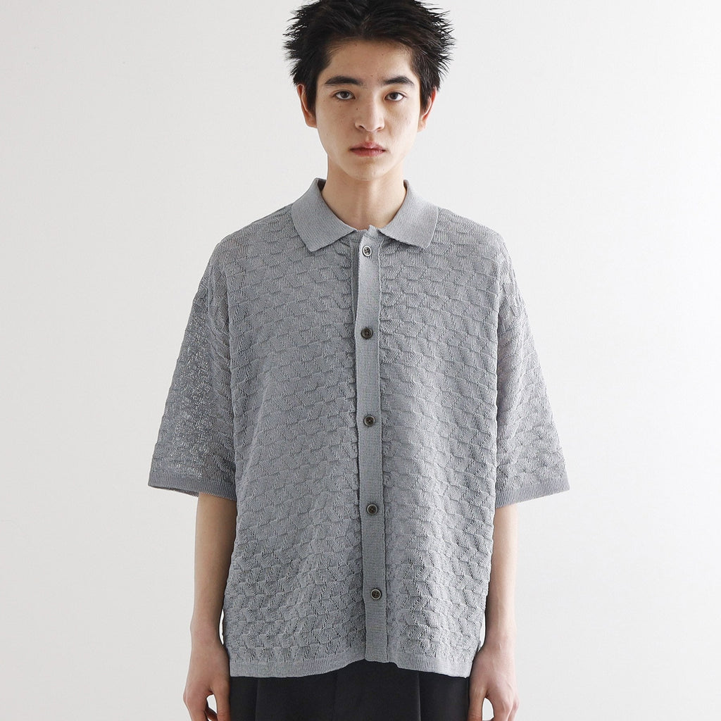 This is a recommended front-opening knit shirt made of straw yarn for the hot season.