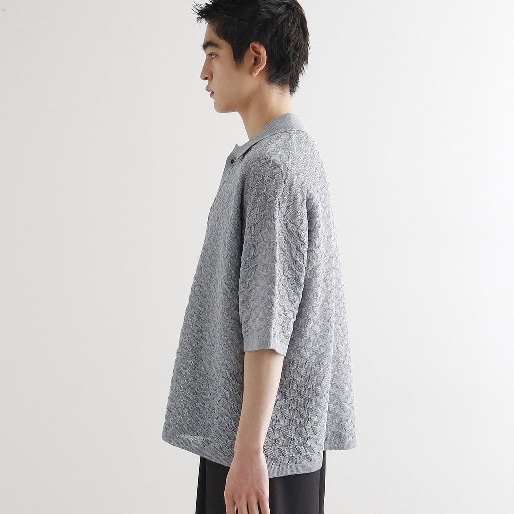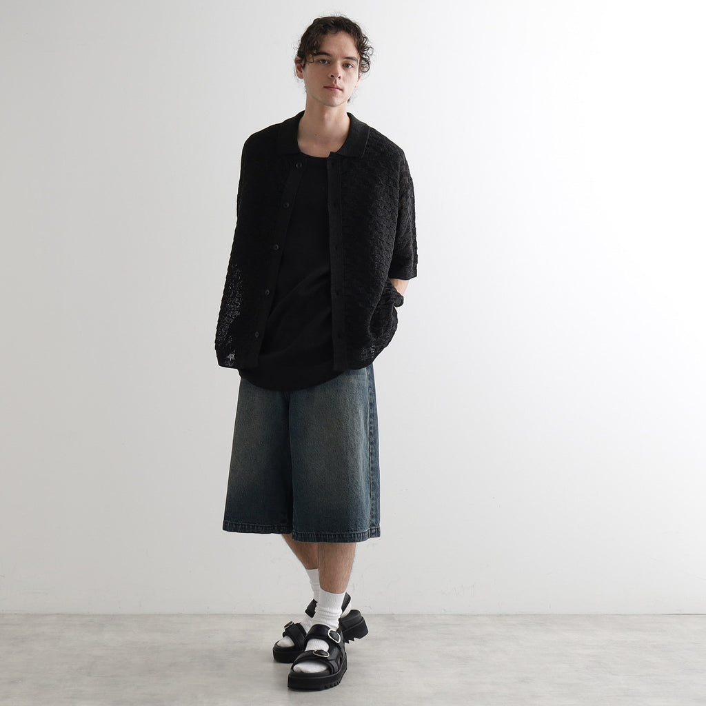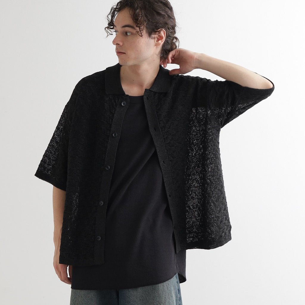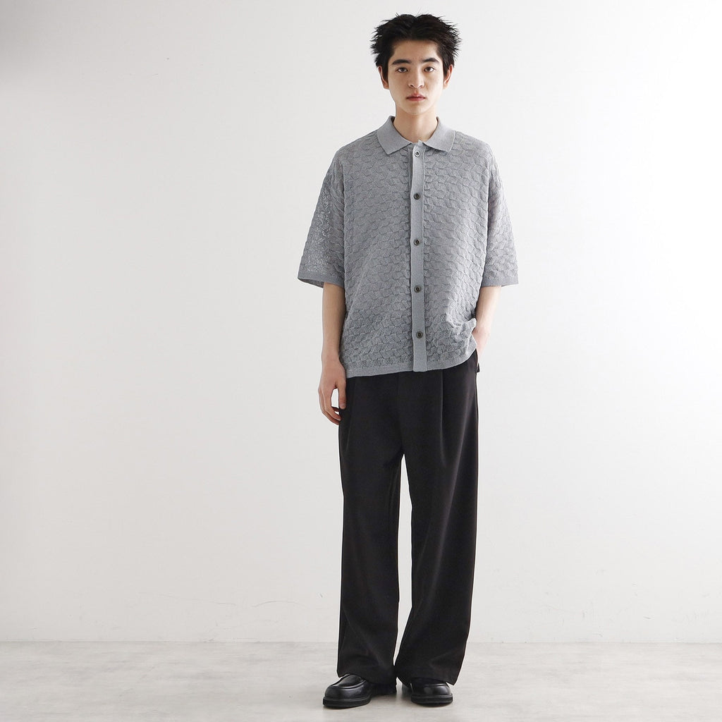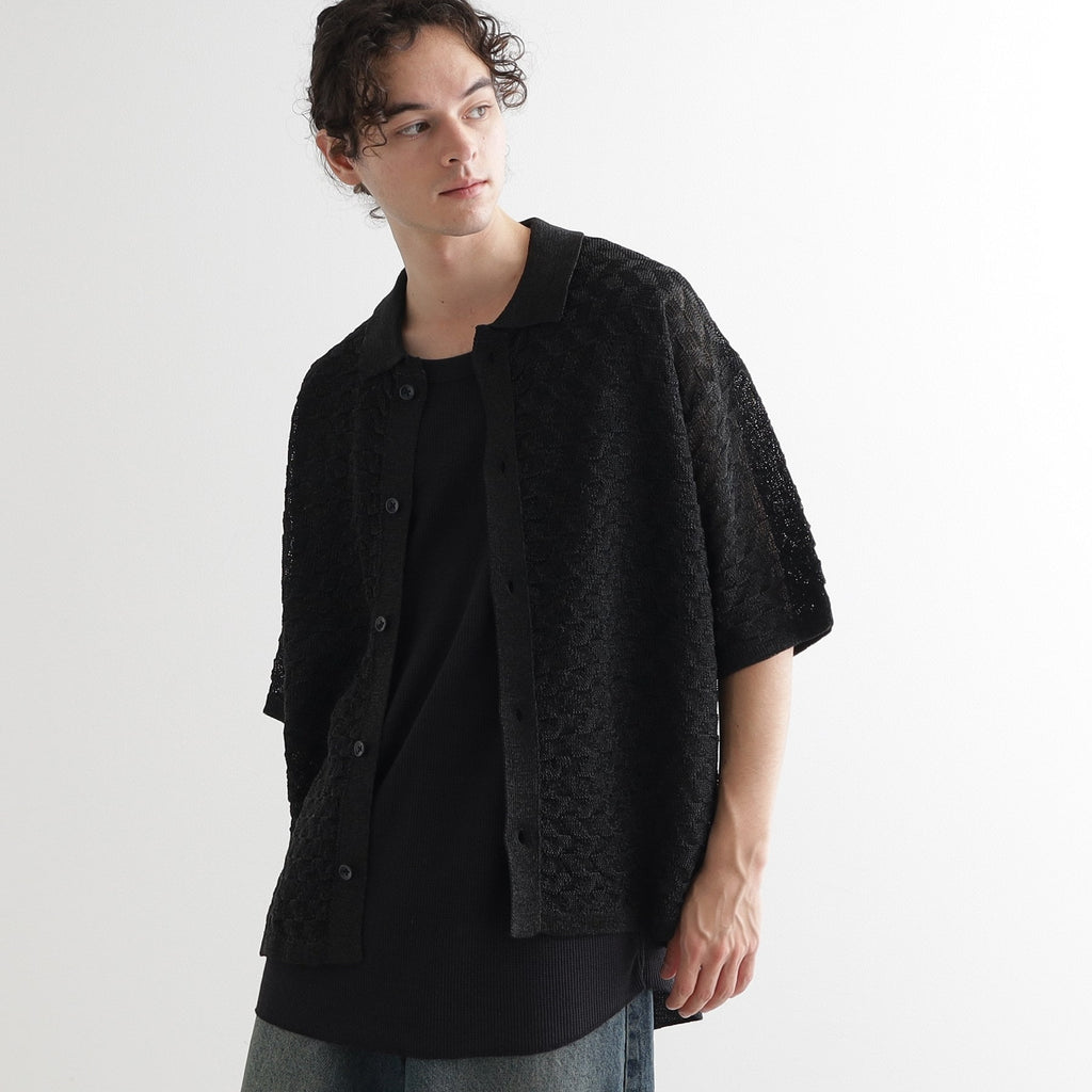 This is a recommended front-opening knit shirt made of straw yarn for the hot season.