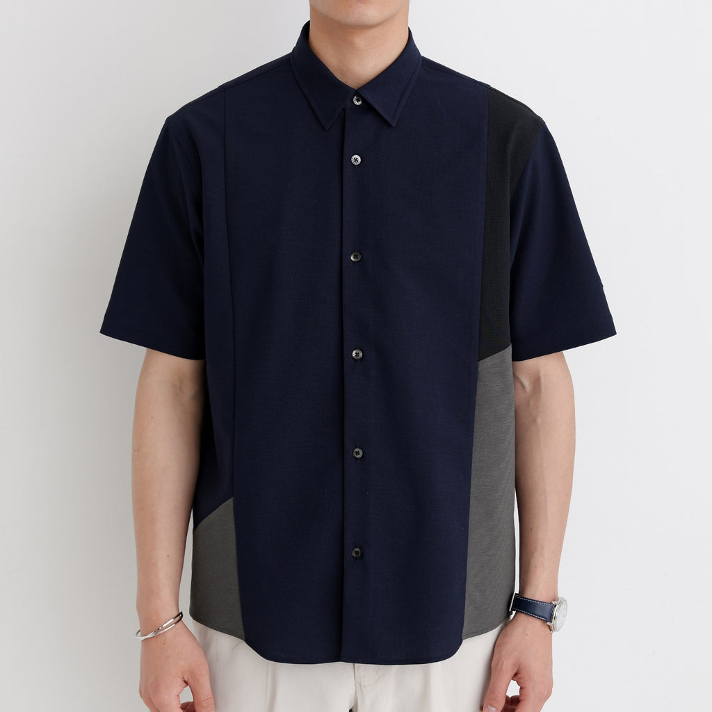 An asymmetrical sharp switch design radiates presence in this short-sleeve shirt.
