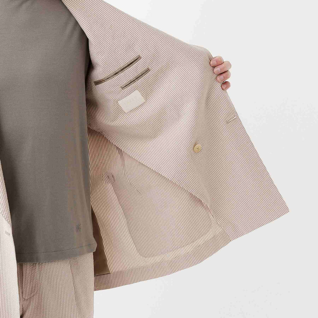 Material Material: Outer fabric: 70% cotton, 27% silk, 3% polyurethane; Lining: Body 100% cupro, Sleeves 100% polyester