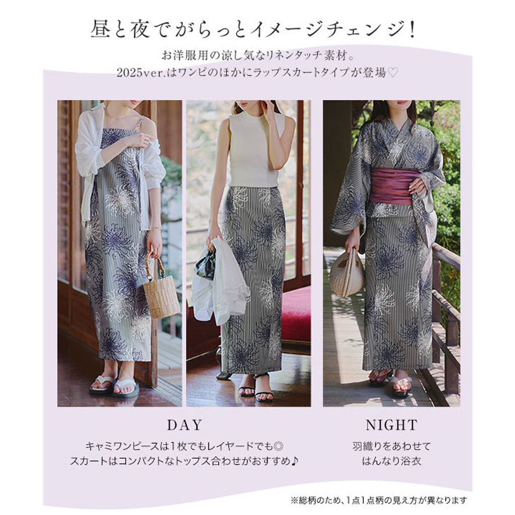 It is a two-piece type with a top like a jinbei and a dress or wrap skirt, making it easy to wear by oneself, allowing you to enjoy summer events like fireworks and festivals in a yukata style.