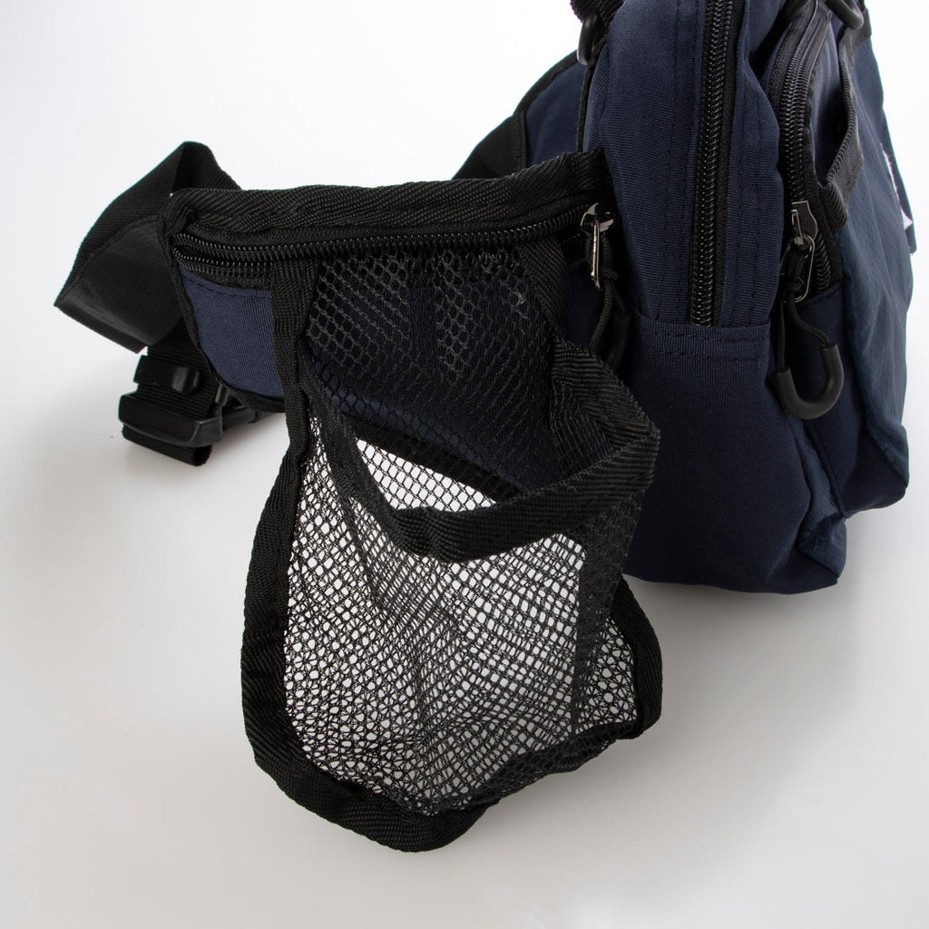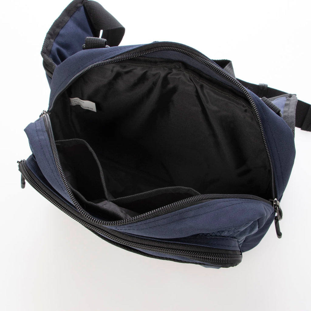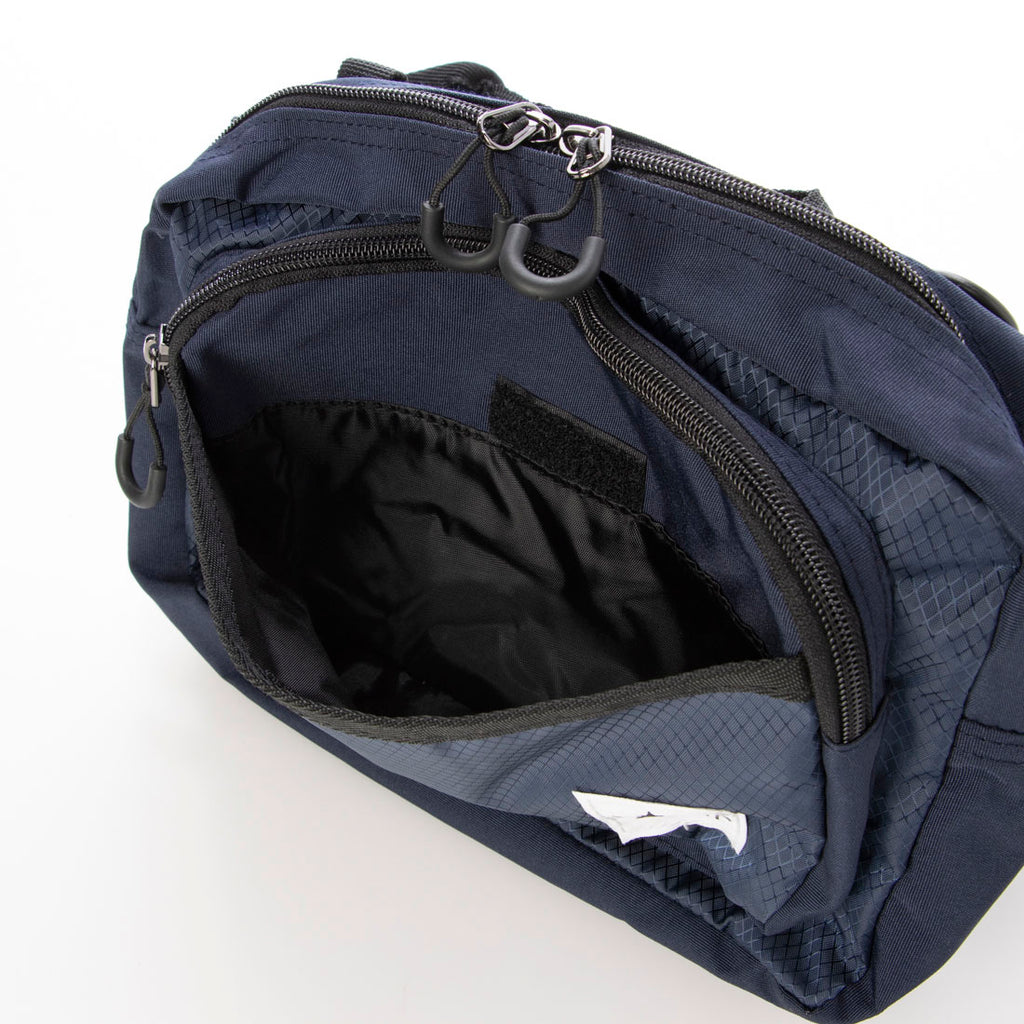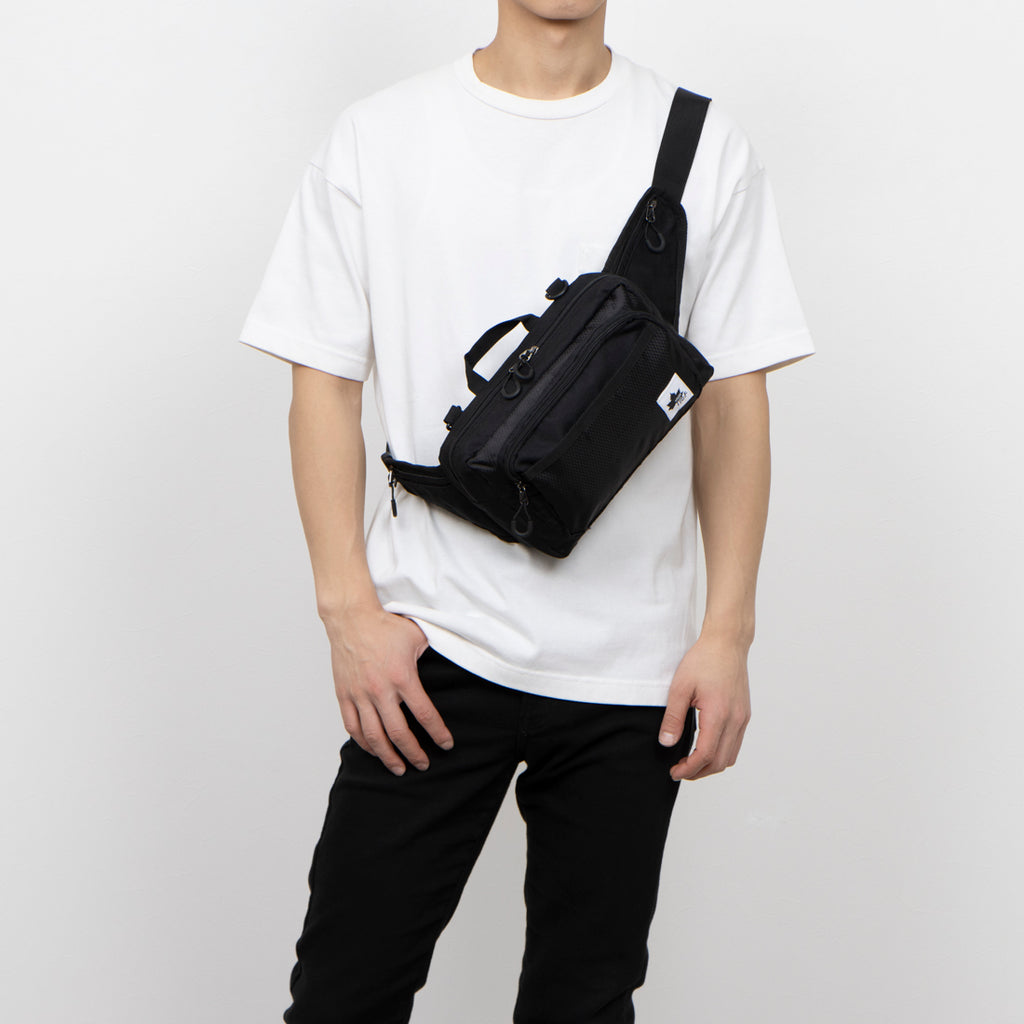 Despite its compact size of approximately H17×W26×D7cm, it is a versatile item that can be used as a hip bag, shoulder bag, or pouch.