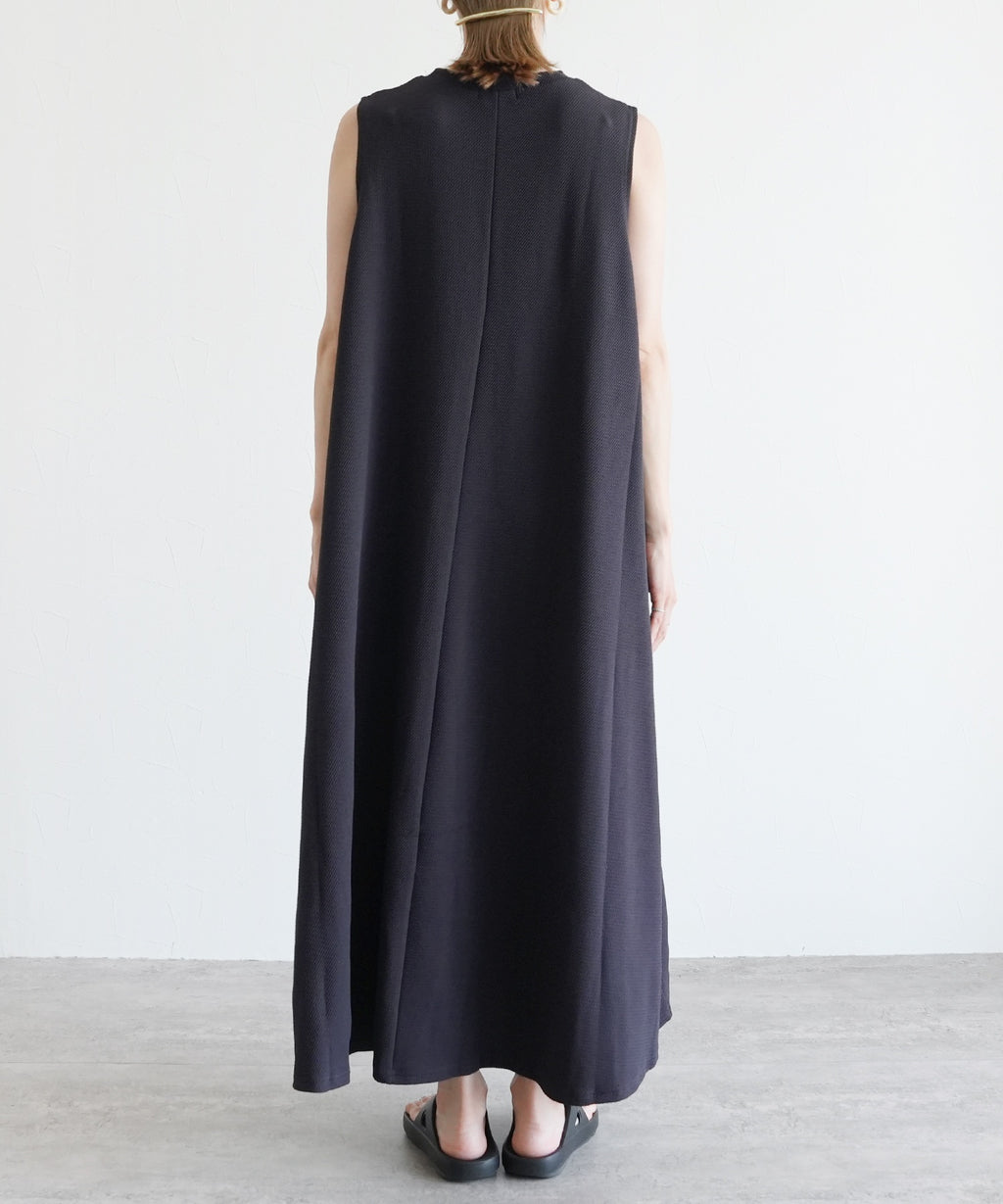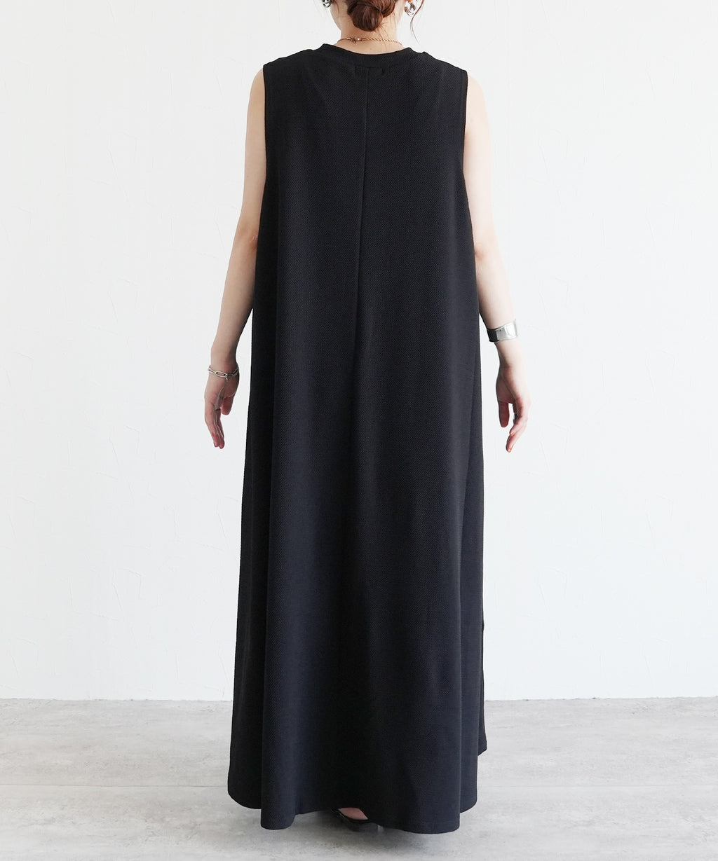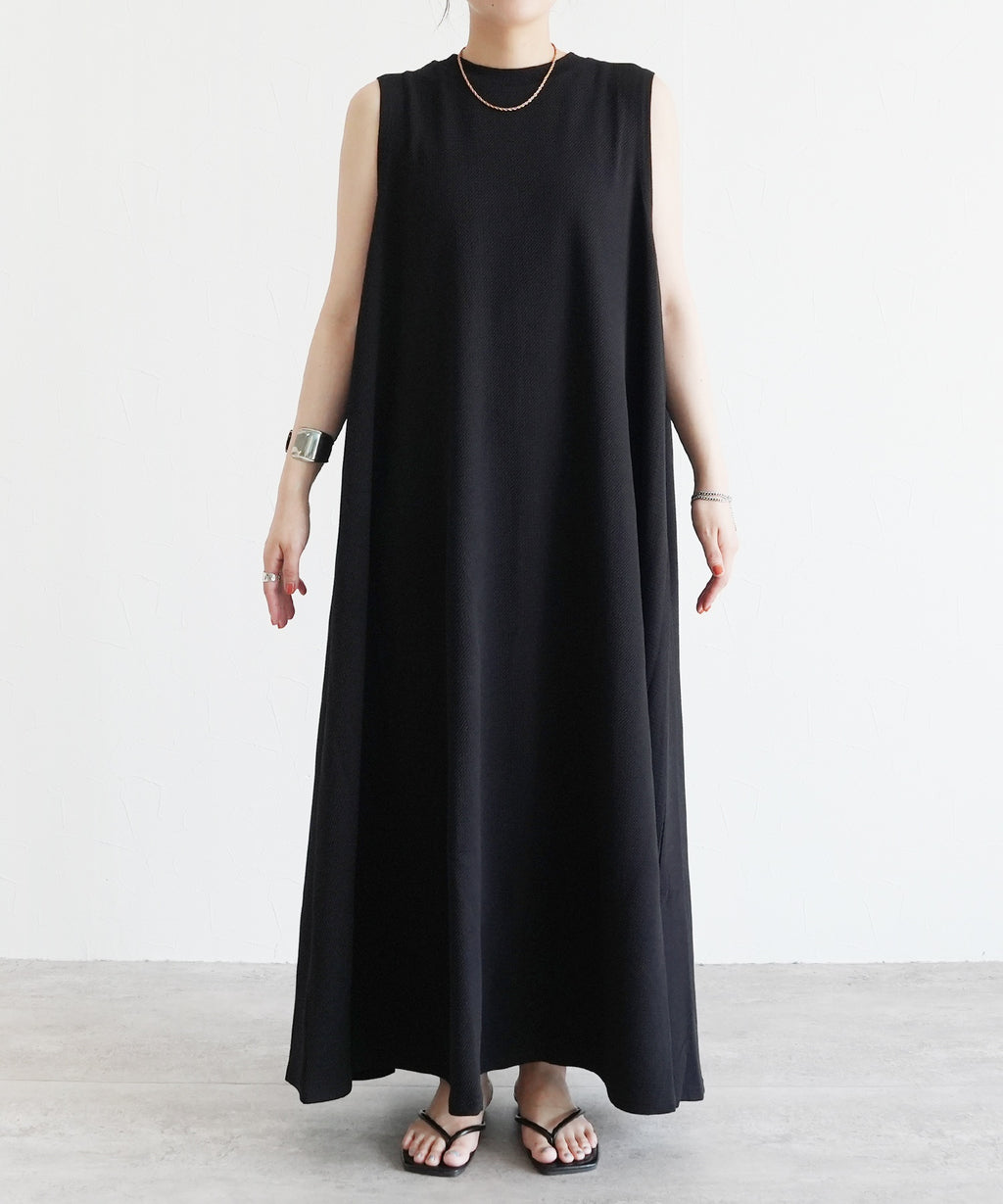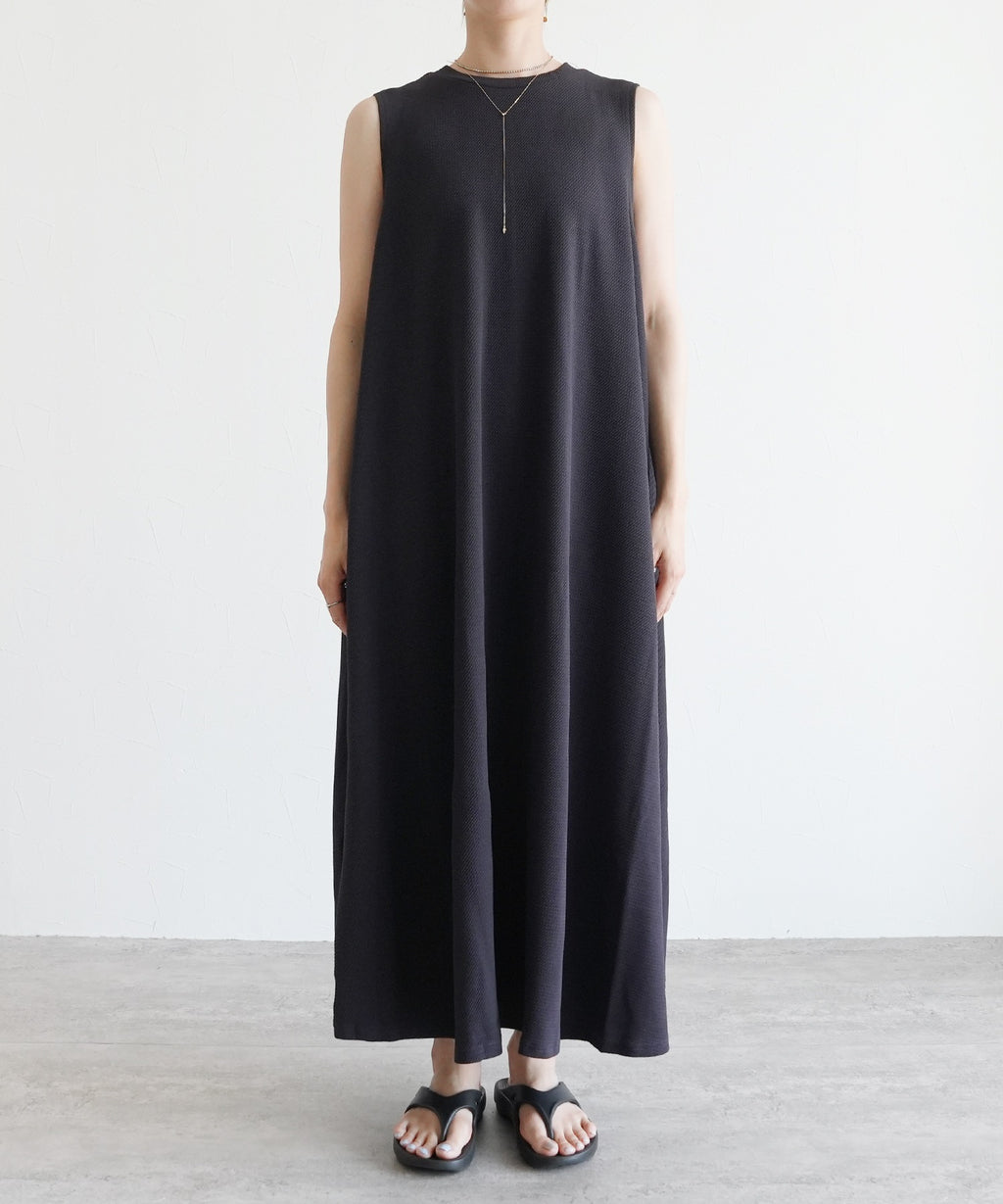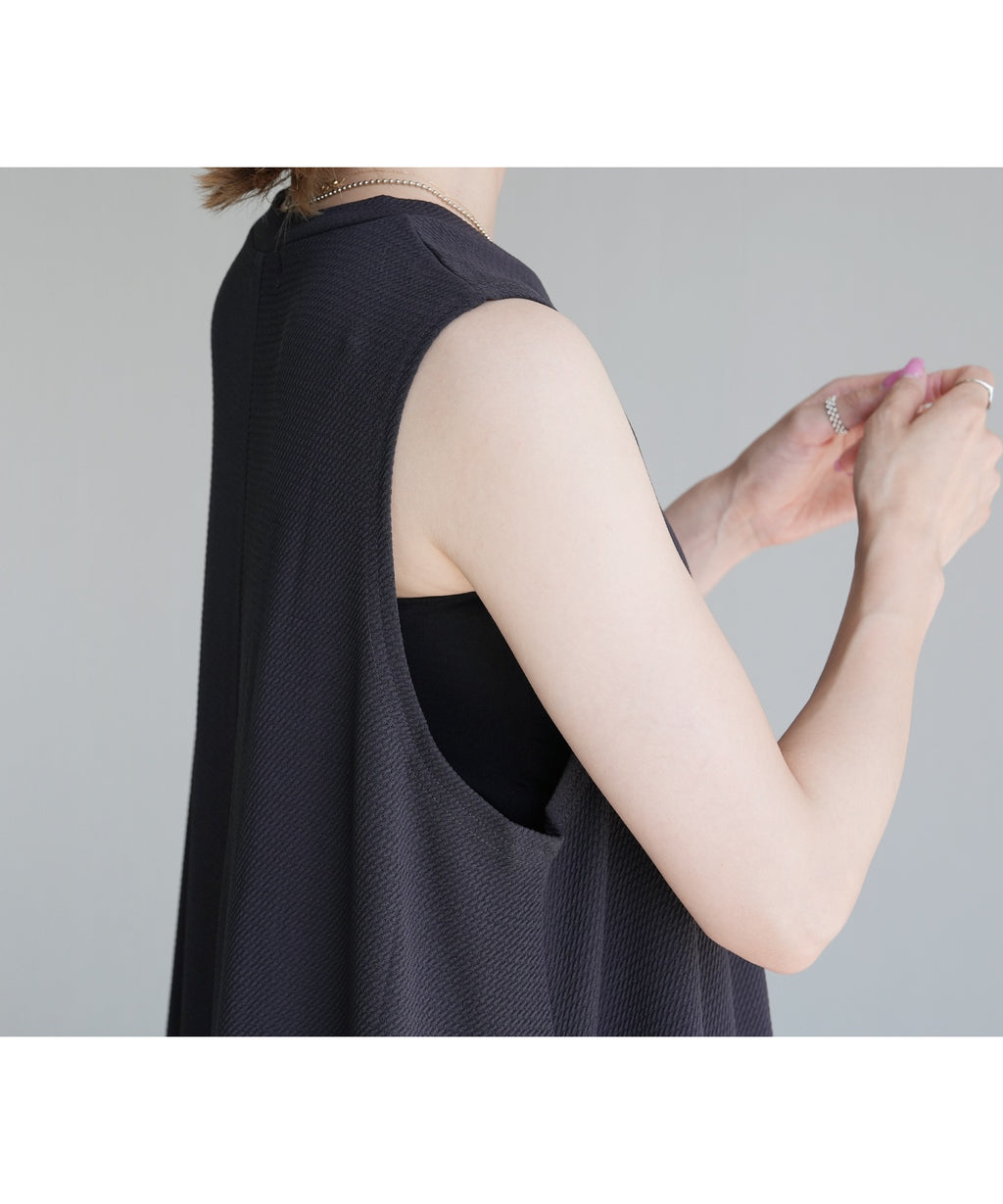 For outings or at home ♪ Sleeveless dress with embossed-like processing