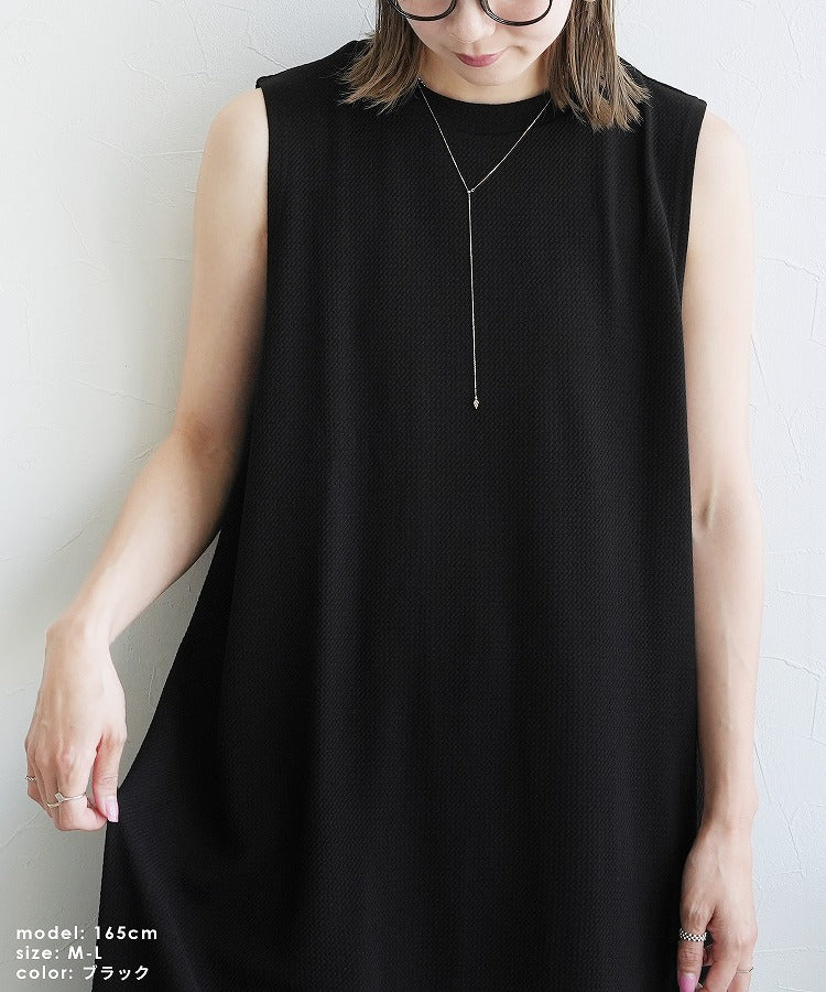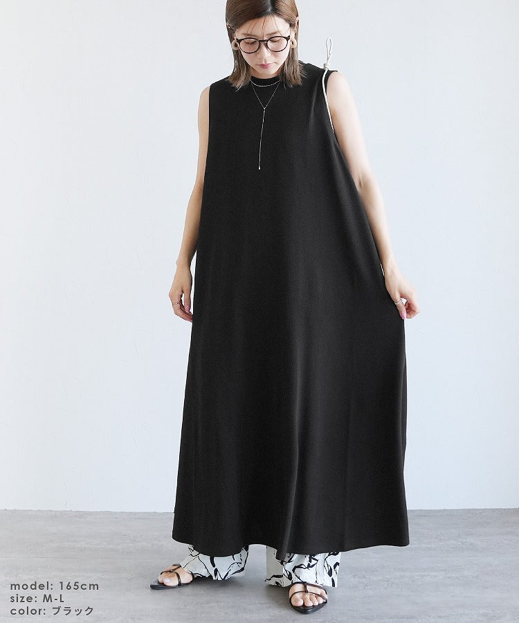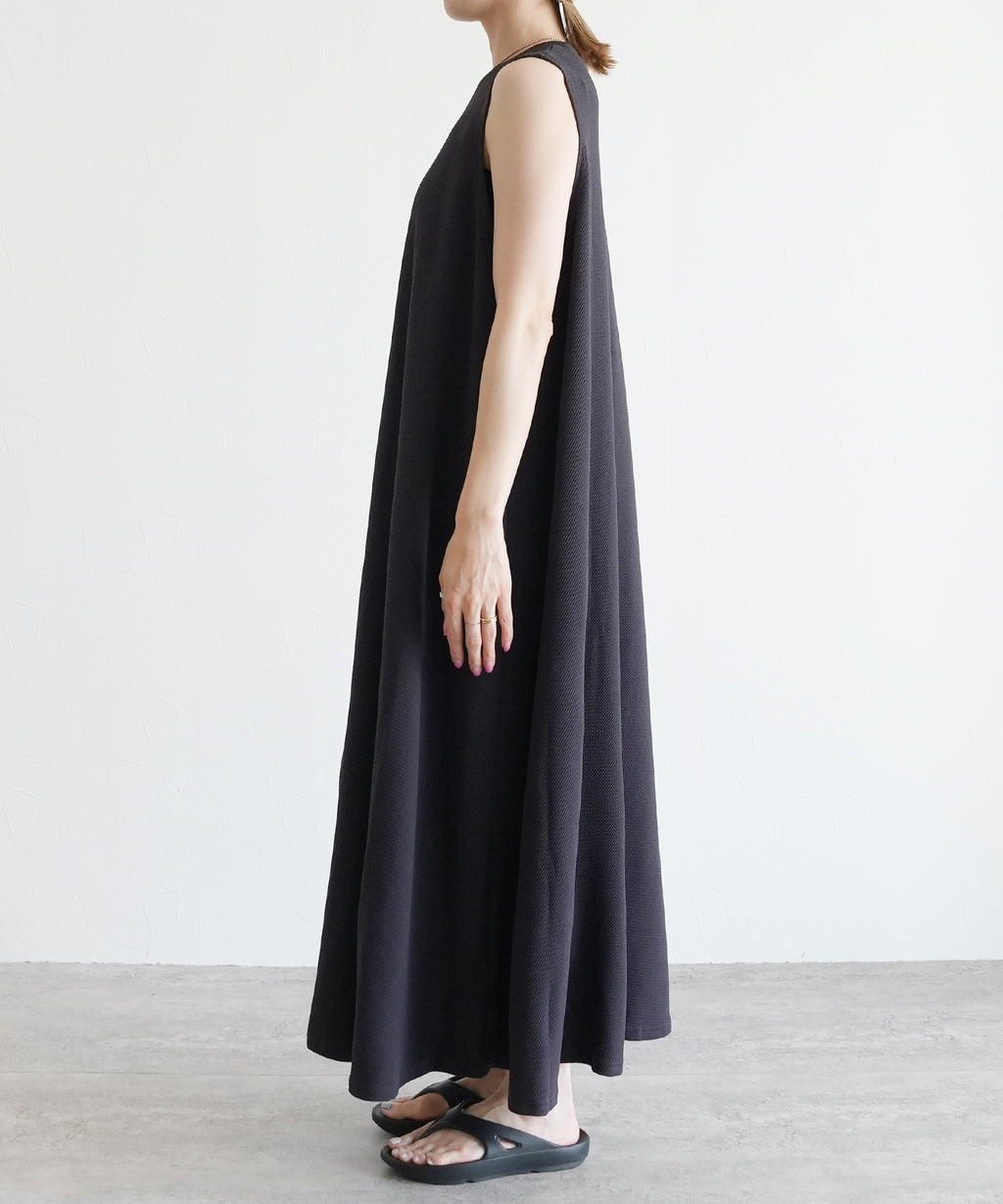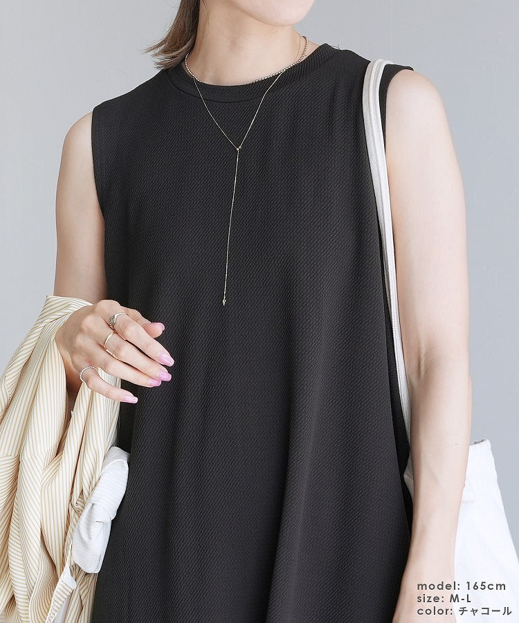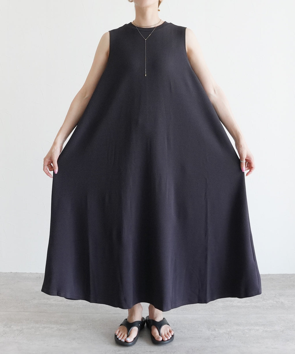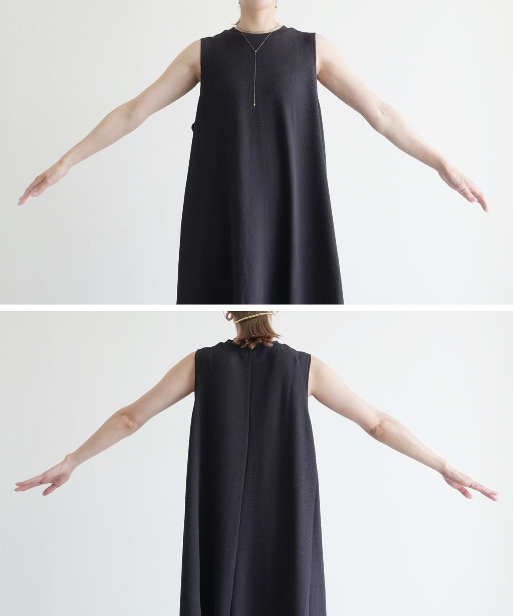 For outings or at home ♪ Sleeveless dress with embossed-like processing