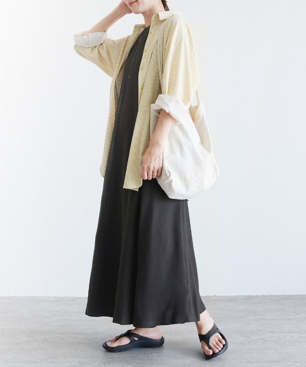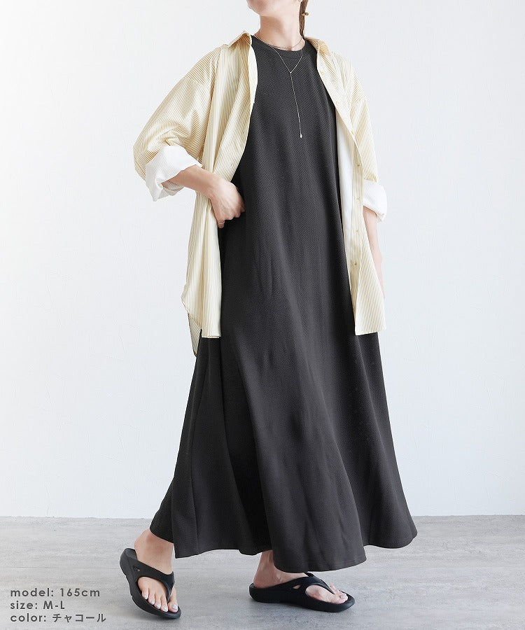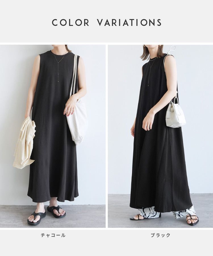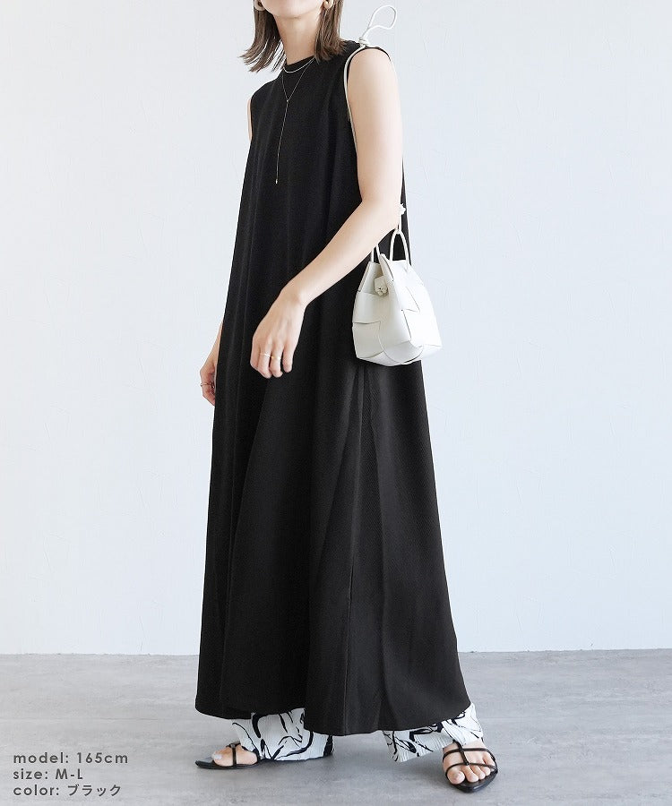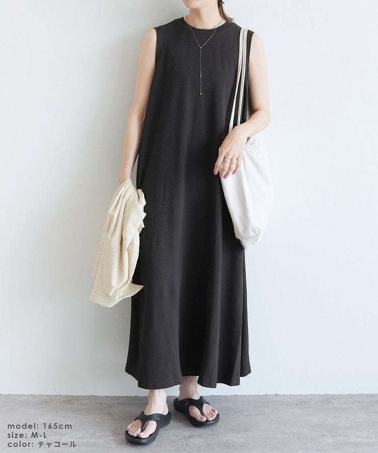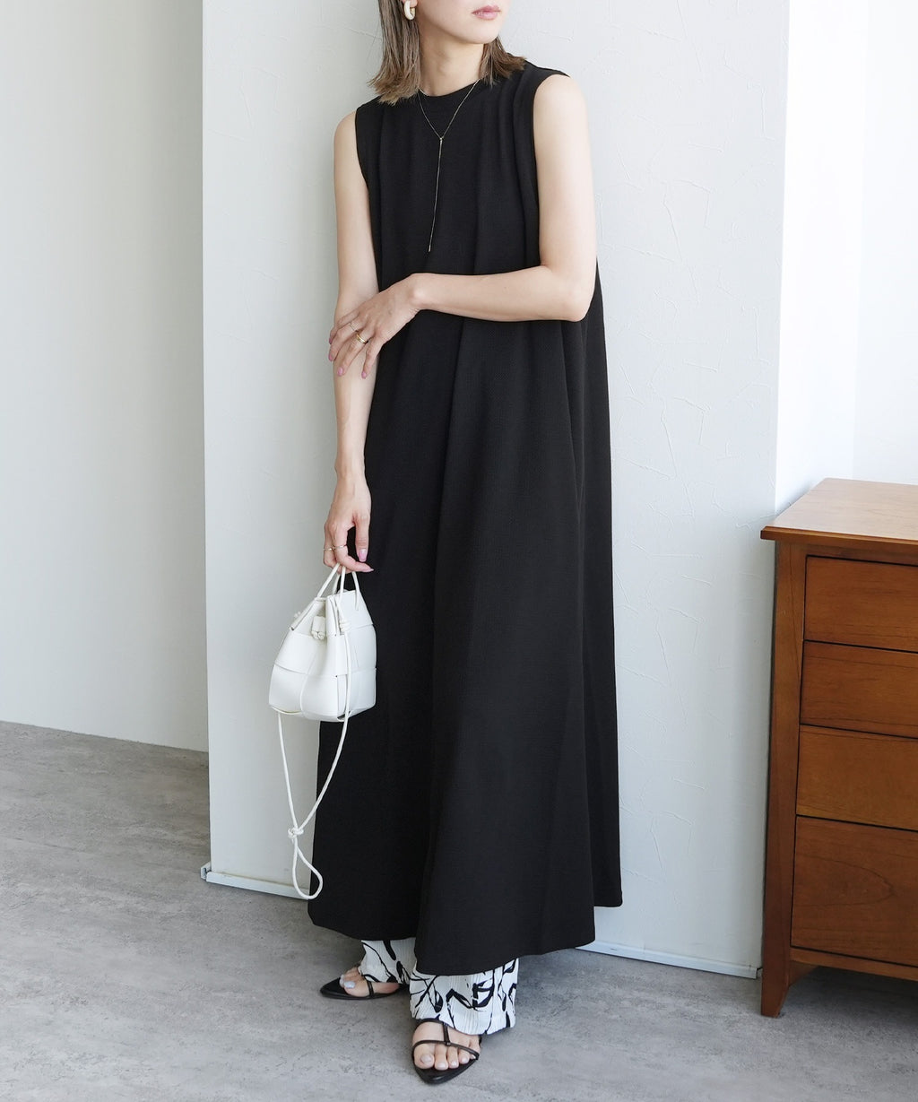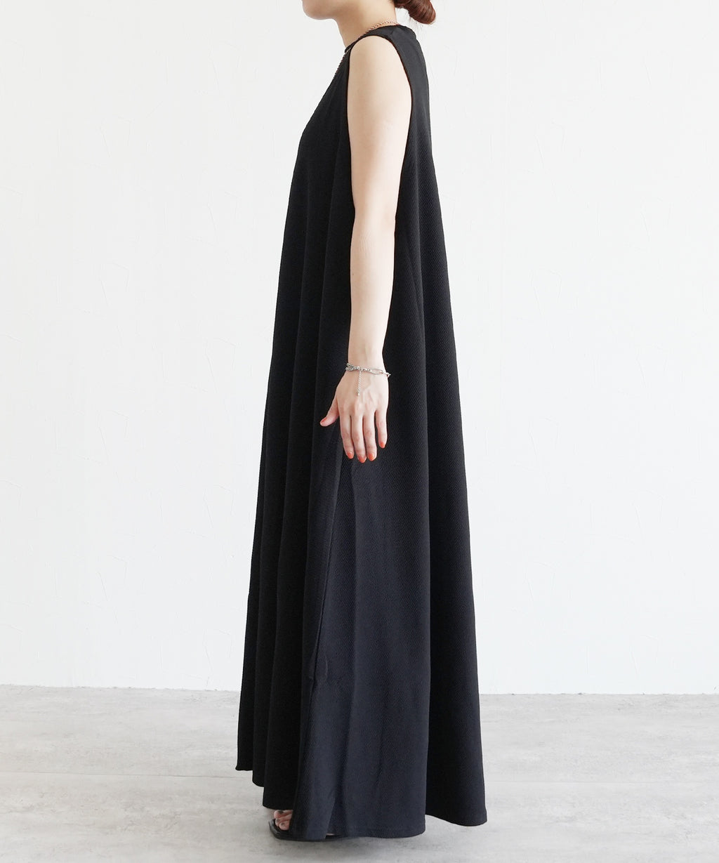 For outings or at home ♪ Sleeveless dress with embossed-like processing