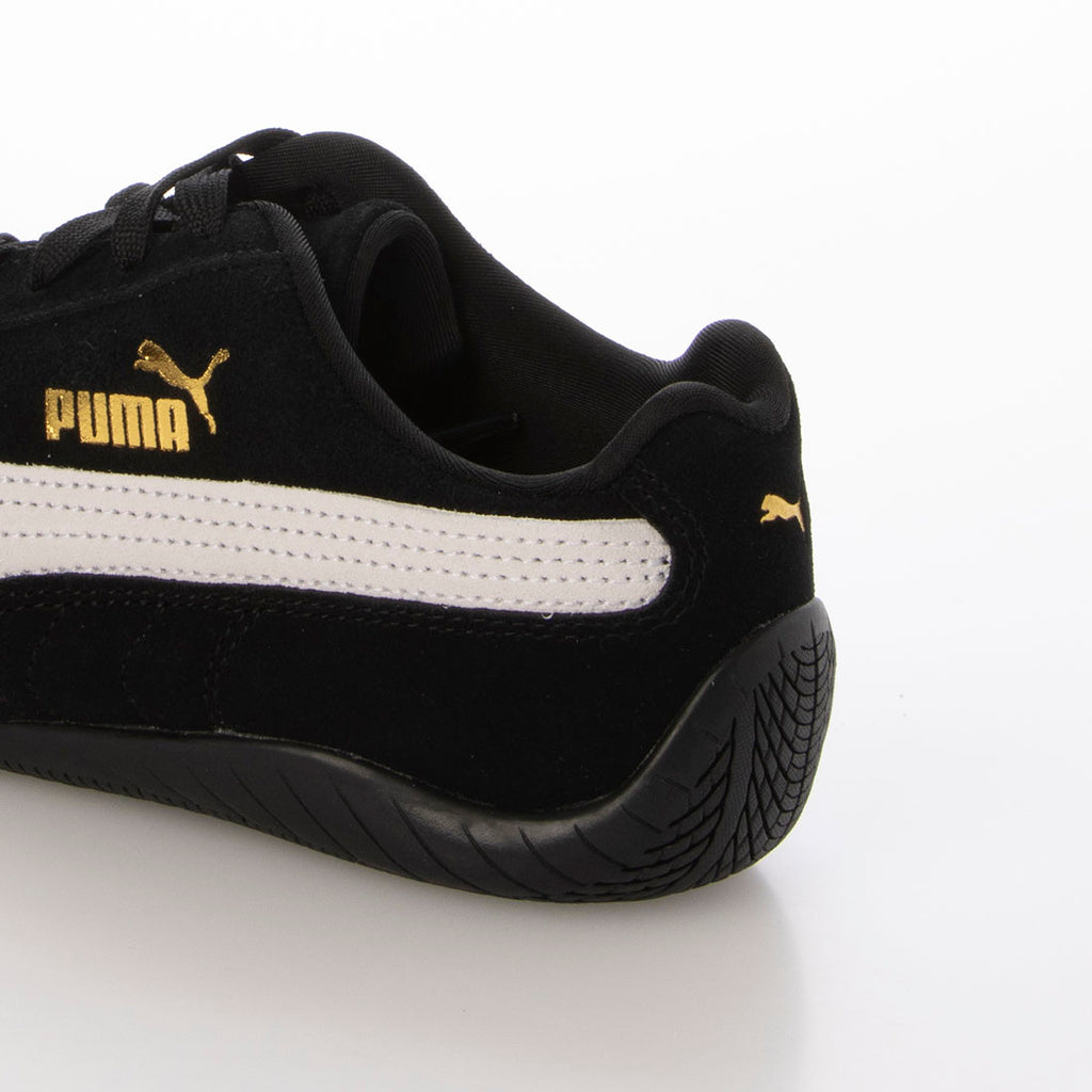 Paying homage to racing wear of the early 2000s, the toe features embroidery of the 'Puma Cat,' and gold logos are designed on the tongue and form strip.