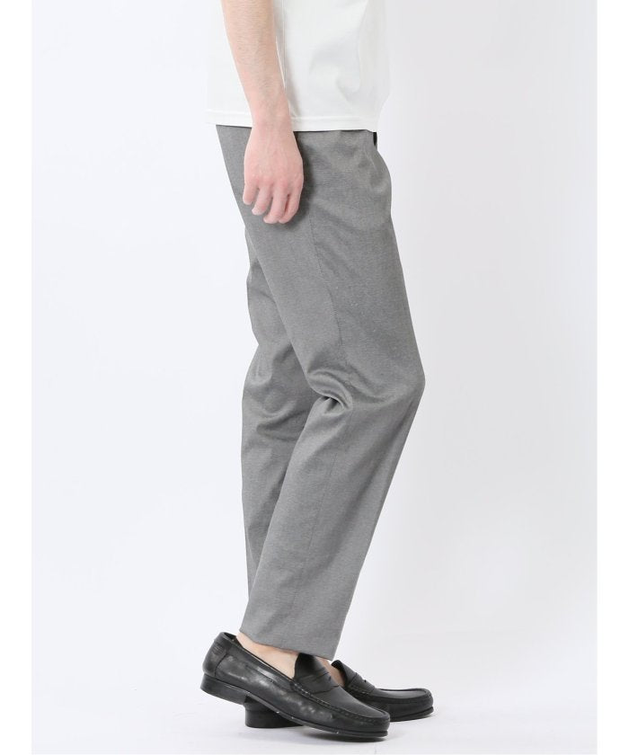 We use "Cross Stretch," which stretches freely and easily. It is a comfortable material that can achieve both ease and neatness. It features a nuanced appearance with a heathered look and a lightweight, thin feel.