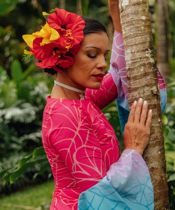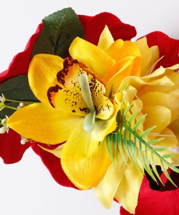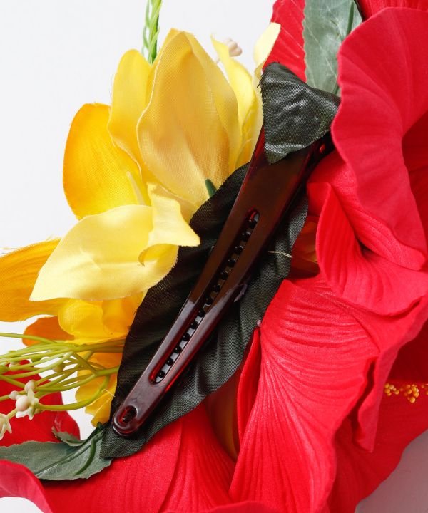 A clip featuring hibiscus, which represents Hawaii, and cymbidium (cattleya) with elegant and graceful splendor. You can enjoy a different impression just by changing the way you wear it. It adds a glamorous touch to the stage with its voluminous presence that stands out on stage.