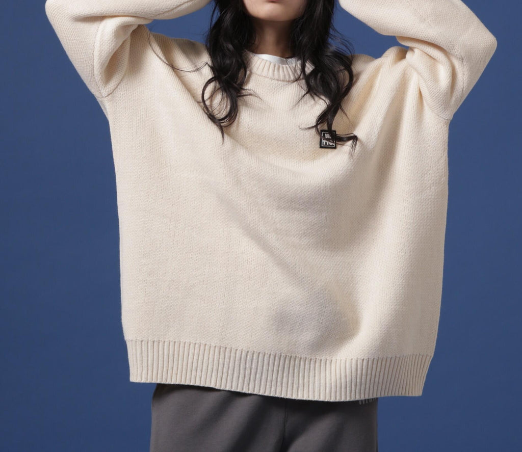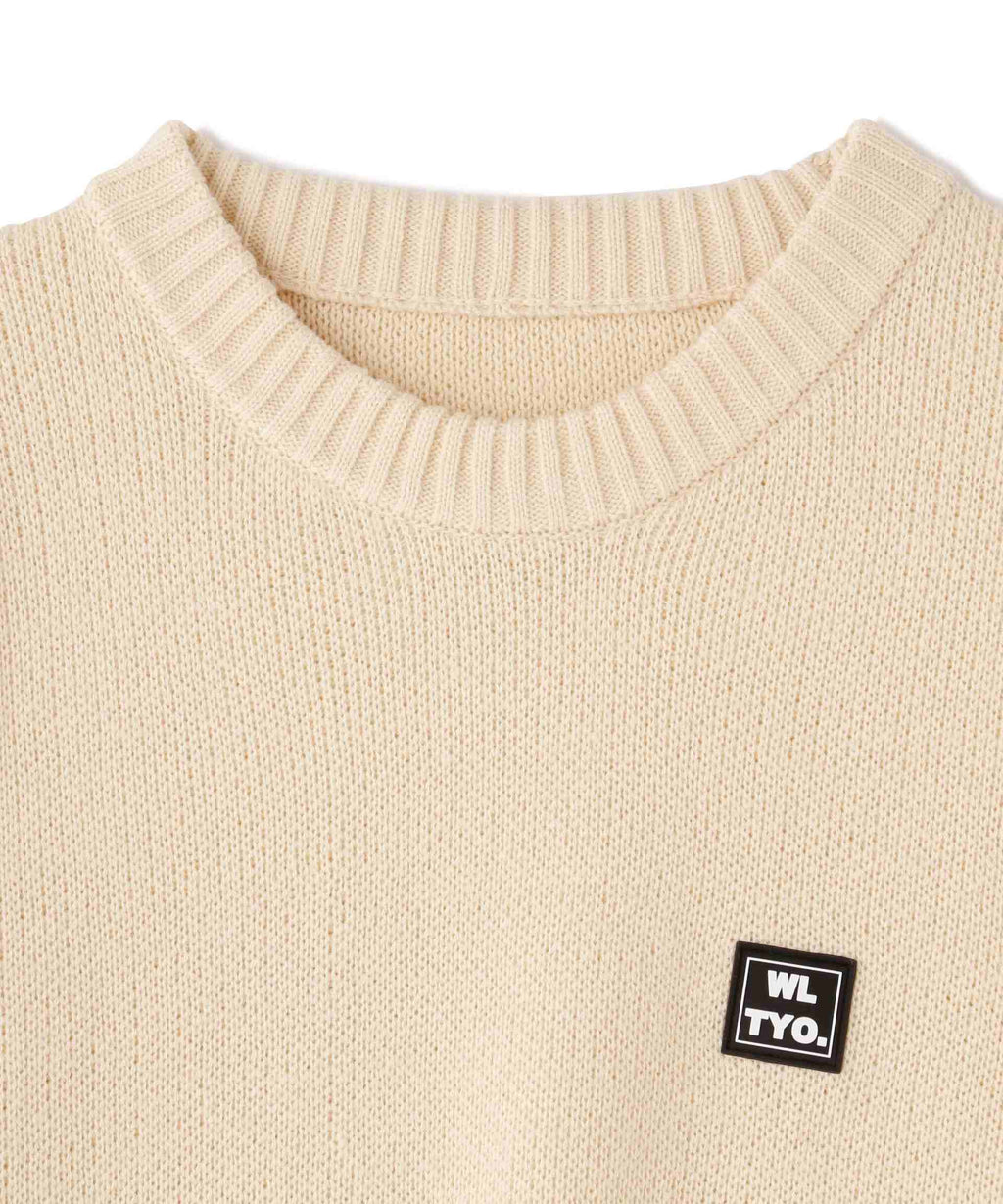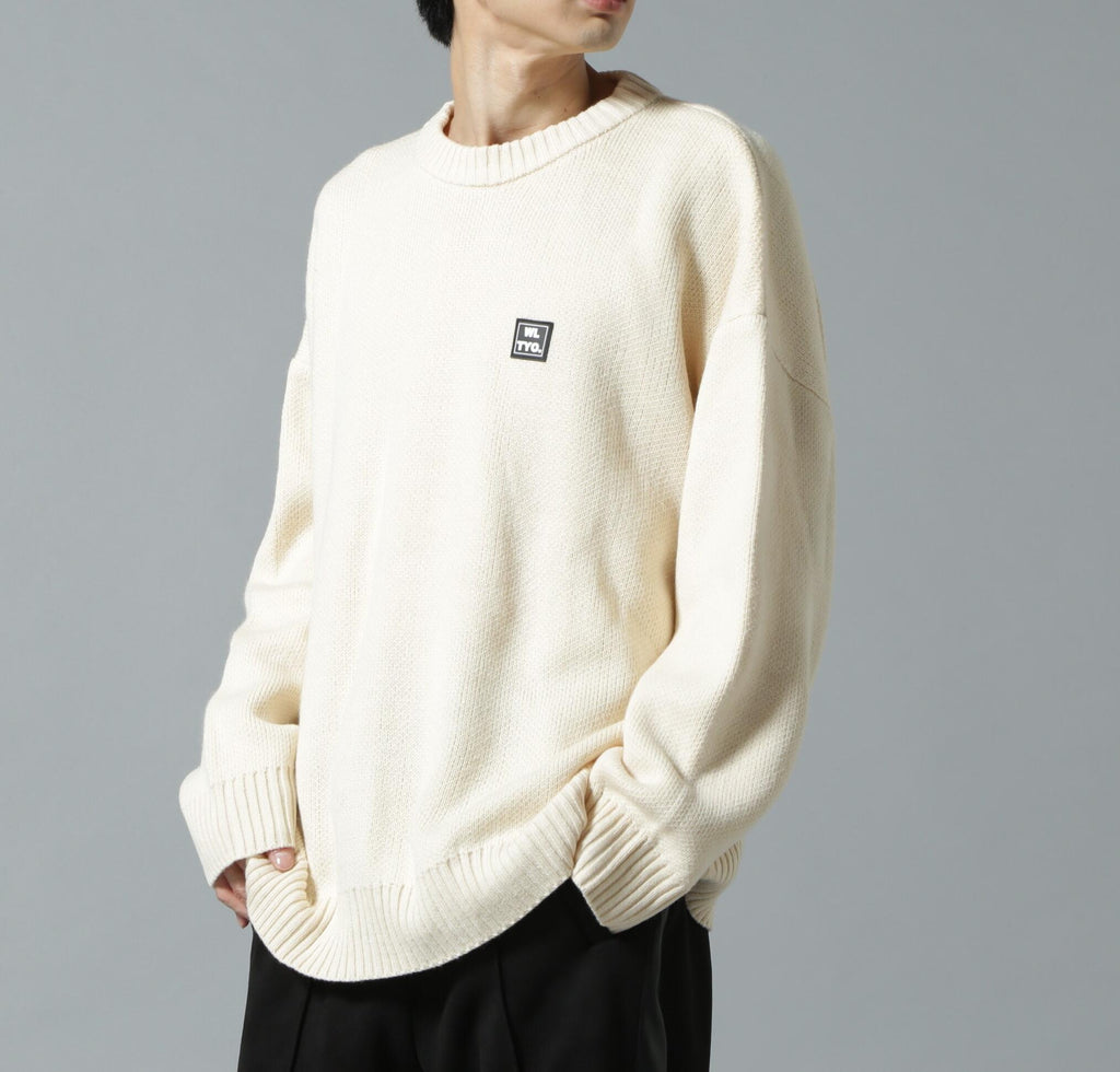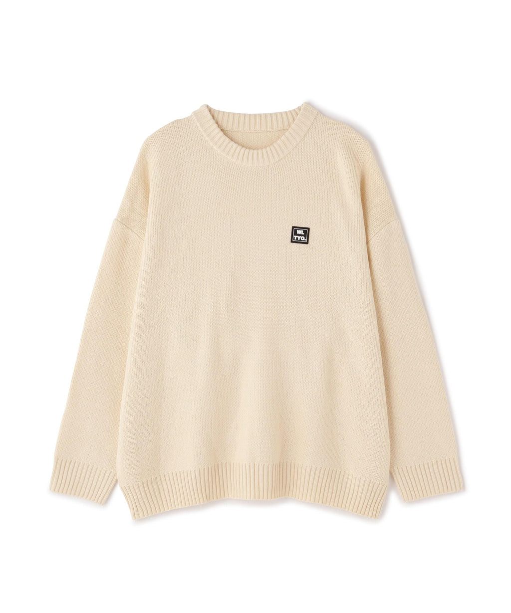 white land familiar gel logo point crew neck knit.