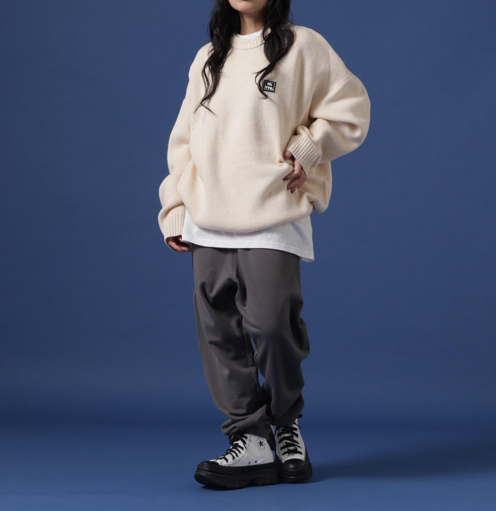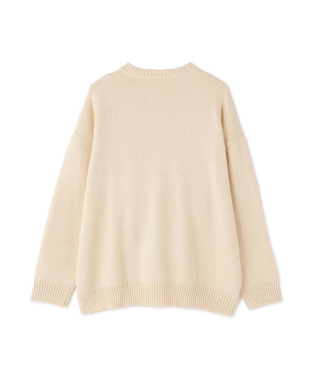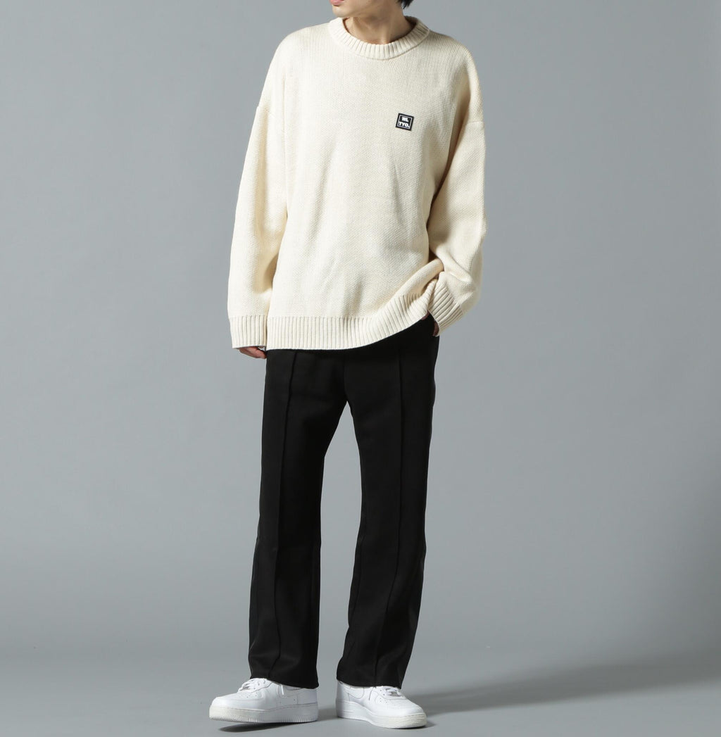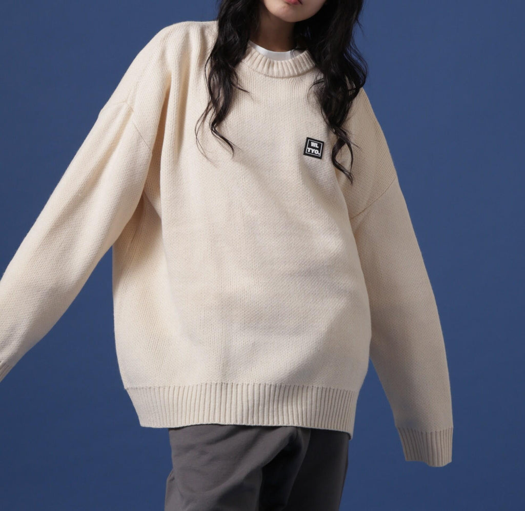 white land familiar gel logo point crew neck knit.