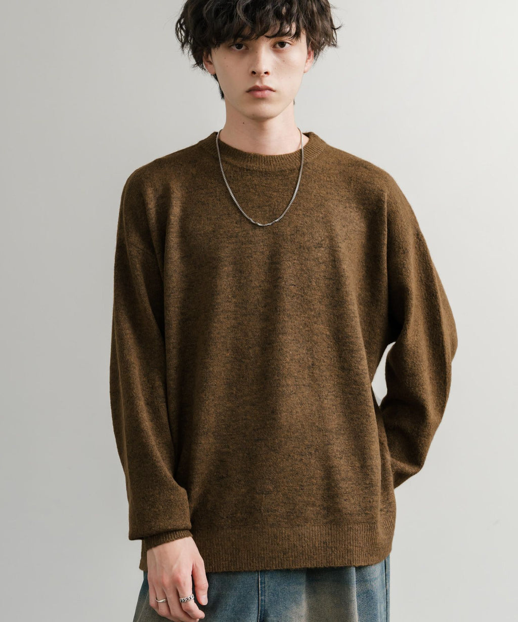 A 6-gauge jersey knit pullover sweater blended with wool.
