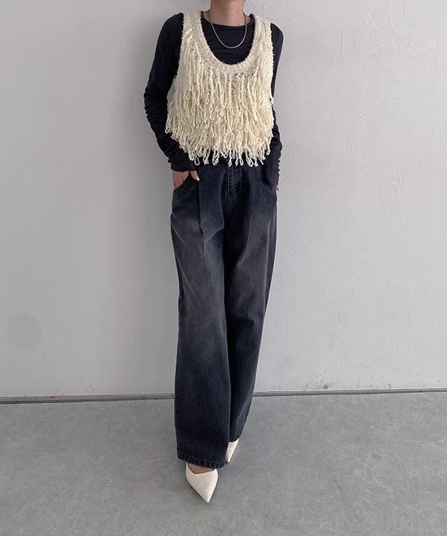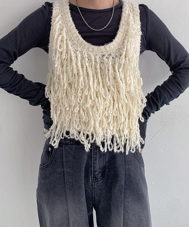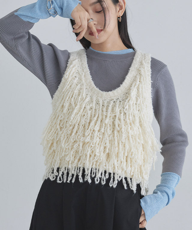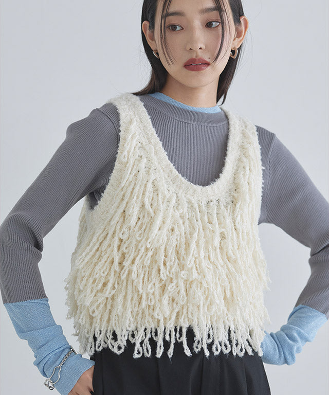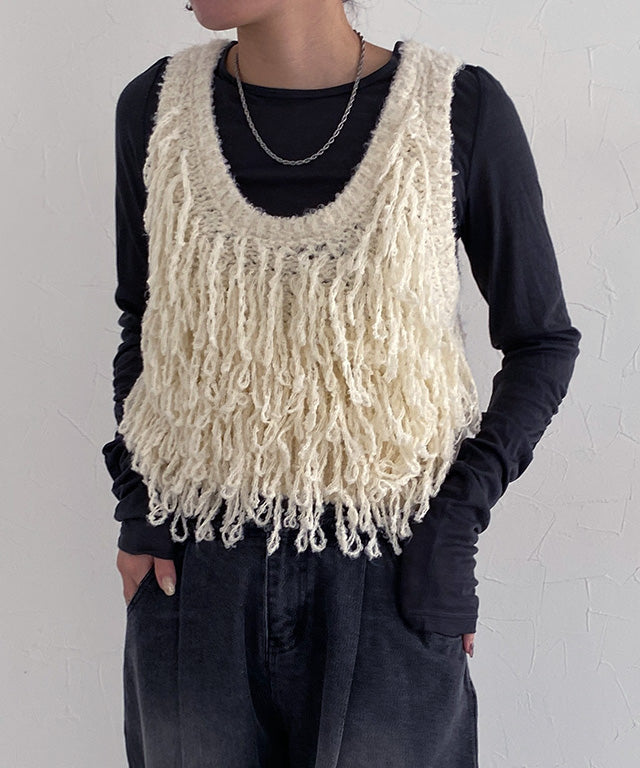 Just add it to your usual coordinate to look stylish: "Loop Yarn Knit Vest"