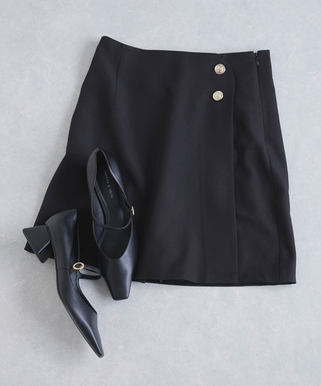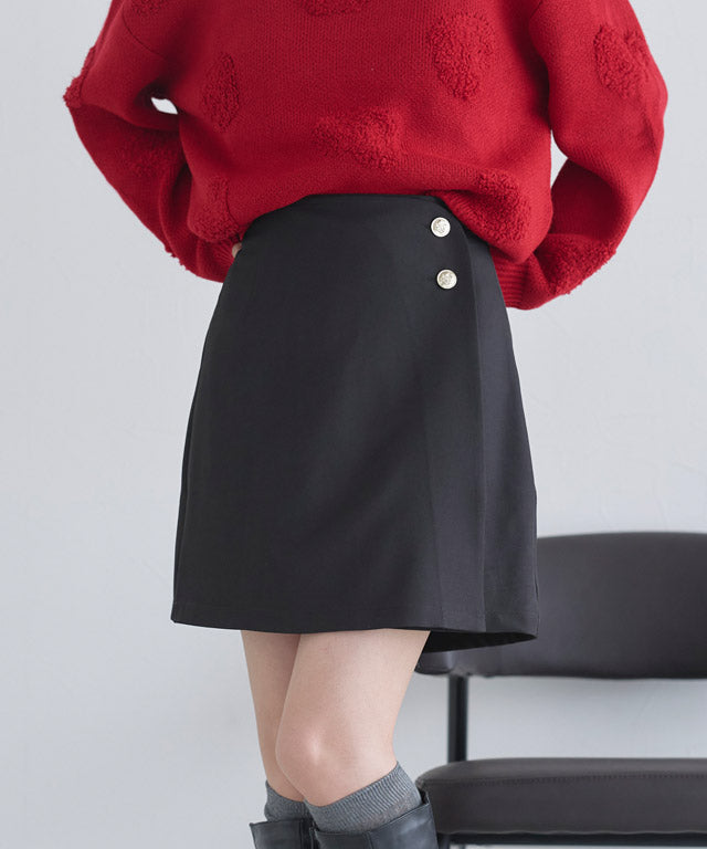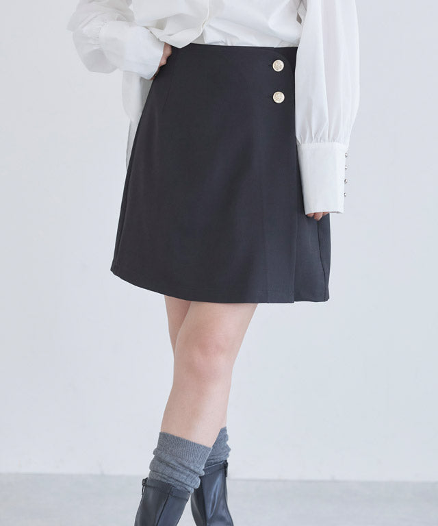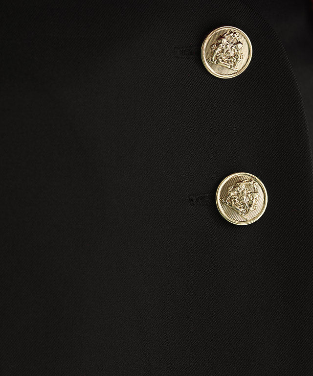 The gold buttons on the front and the subtle wrap-style design give a classic and elegant impression.