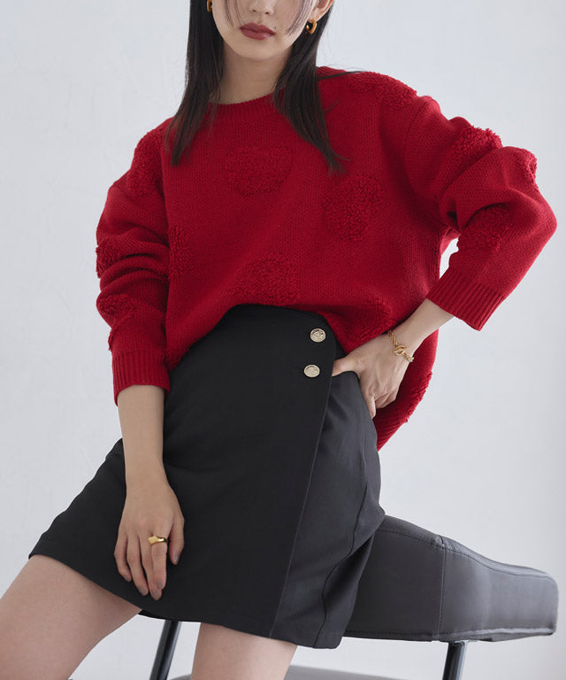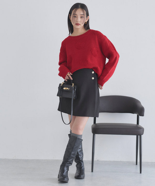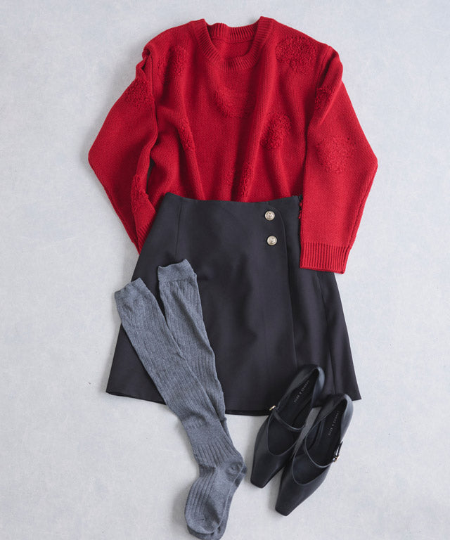 The flare silhouette that gradually widens towards the hem covers the leg line while creating a slimming effect.