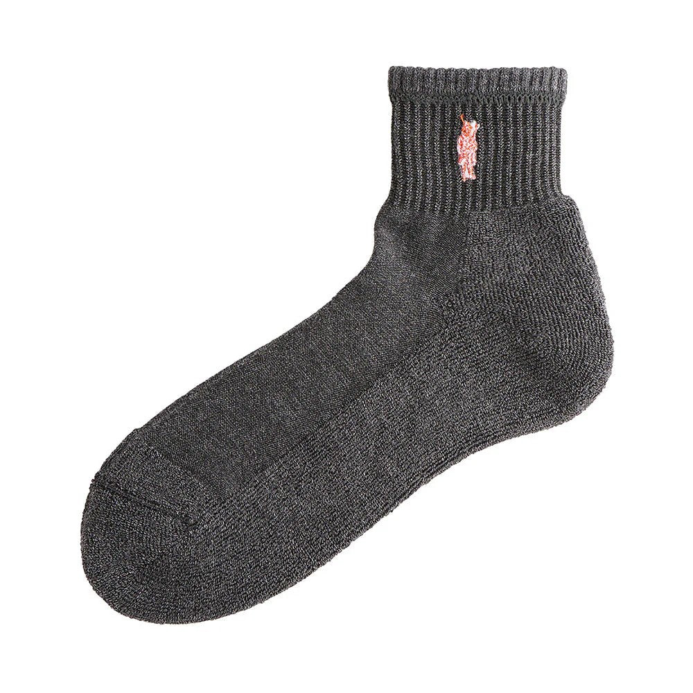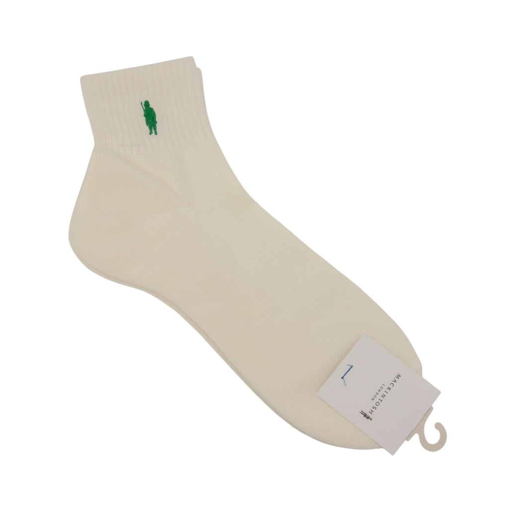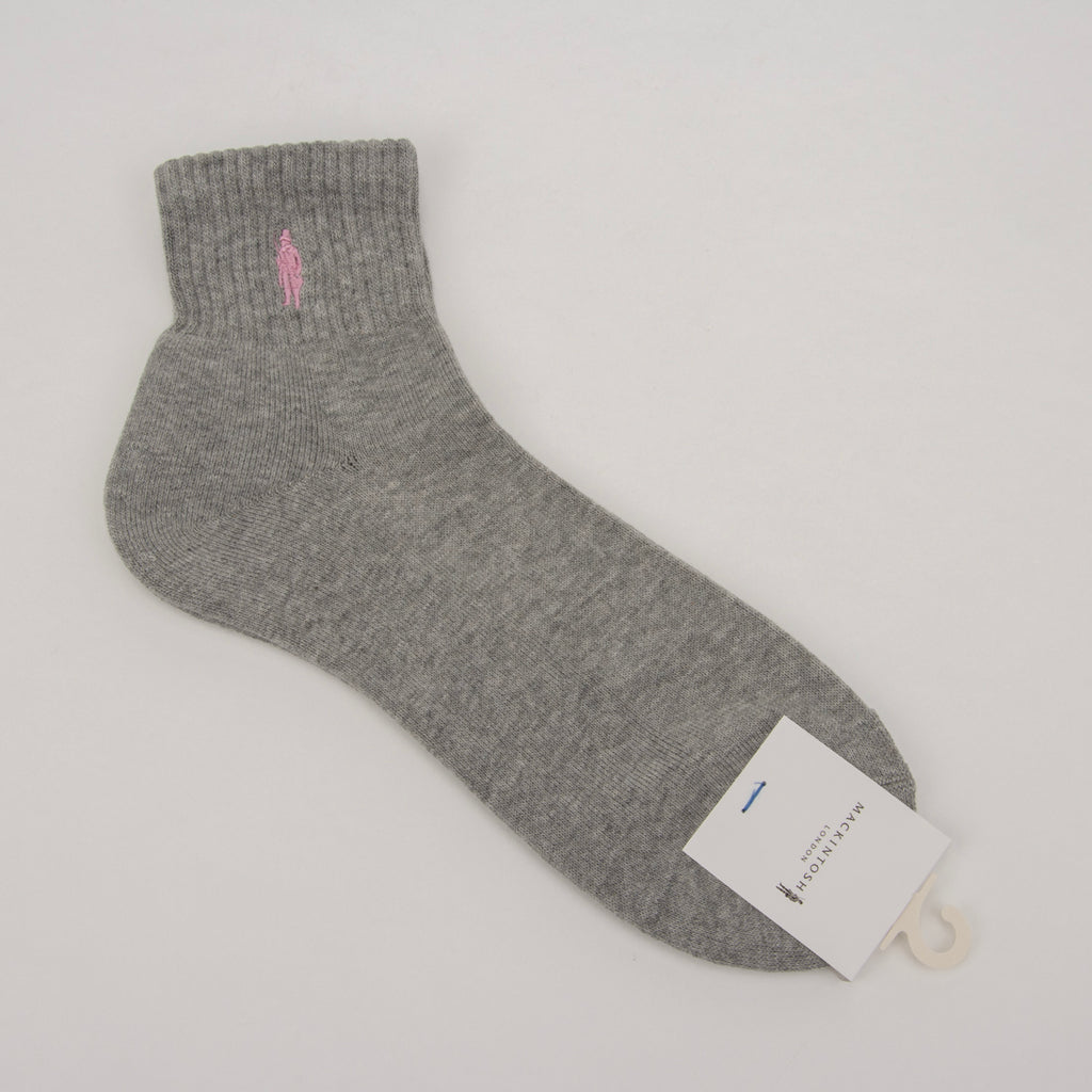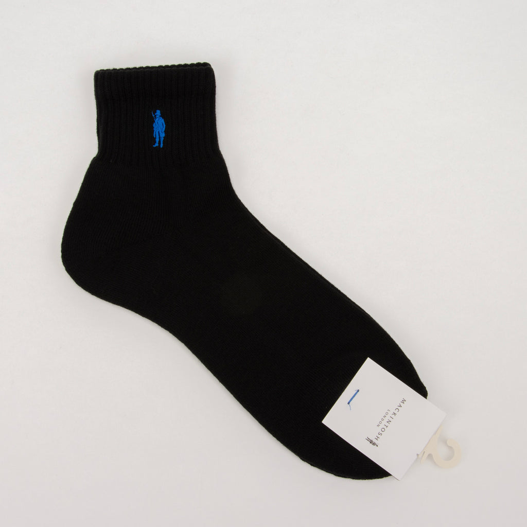 These are pile-knit short socks featuring a single point embroidery of the Dandy Man icon of Mackintosh London.