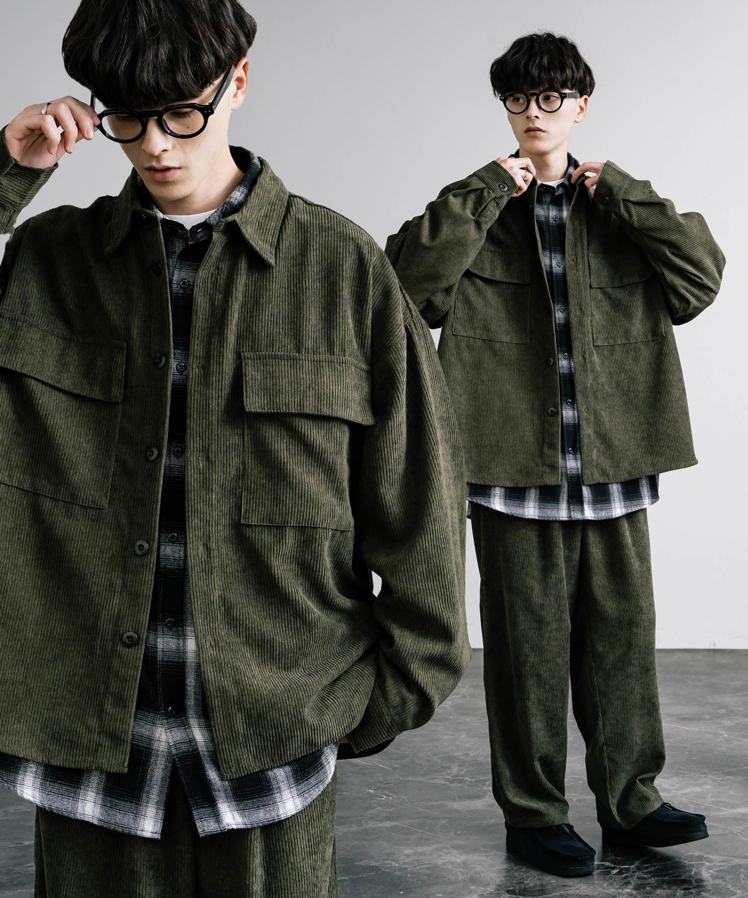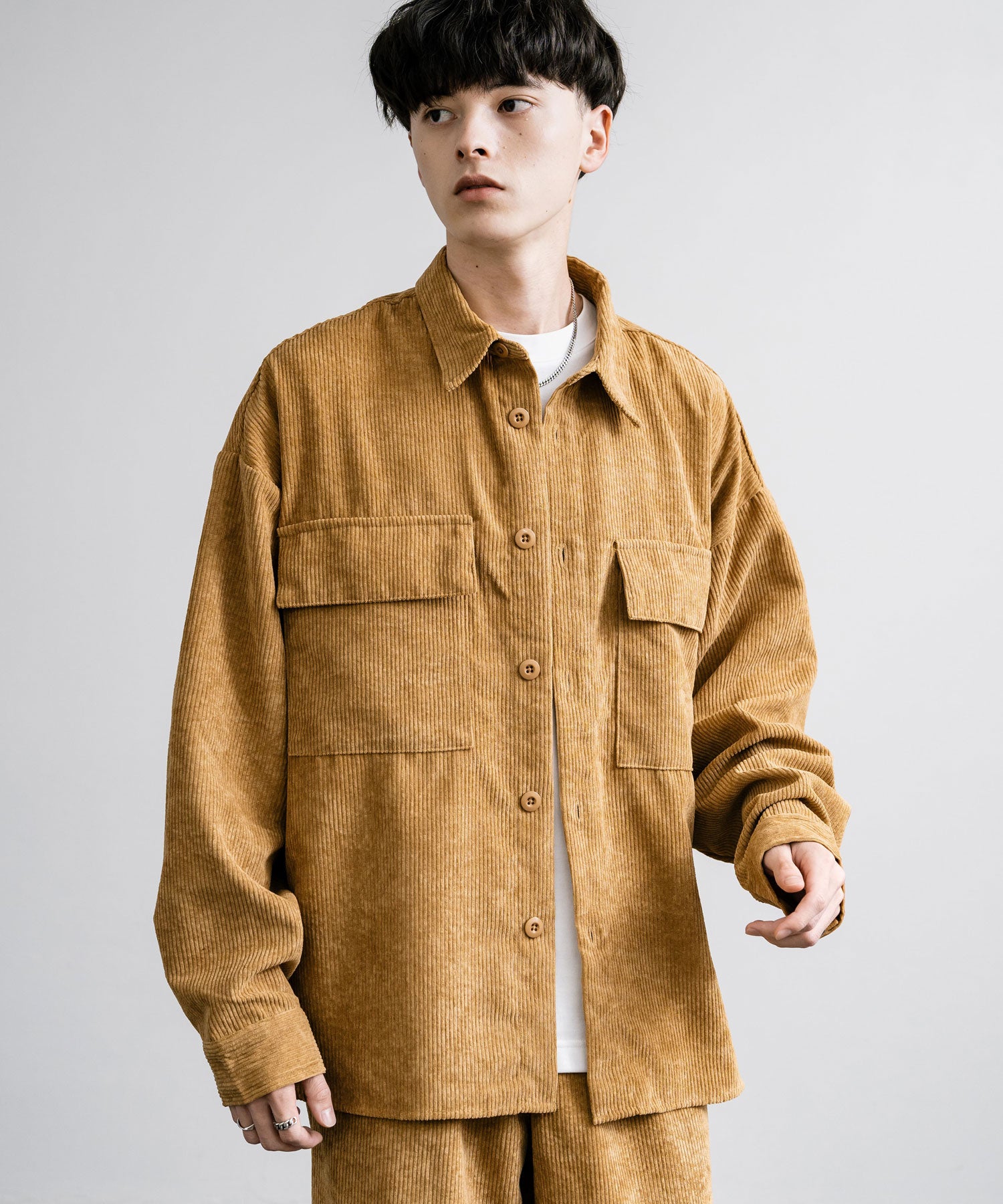 Corduroy CPO shirt jacket & wide pants set-up
