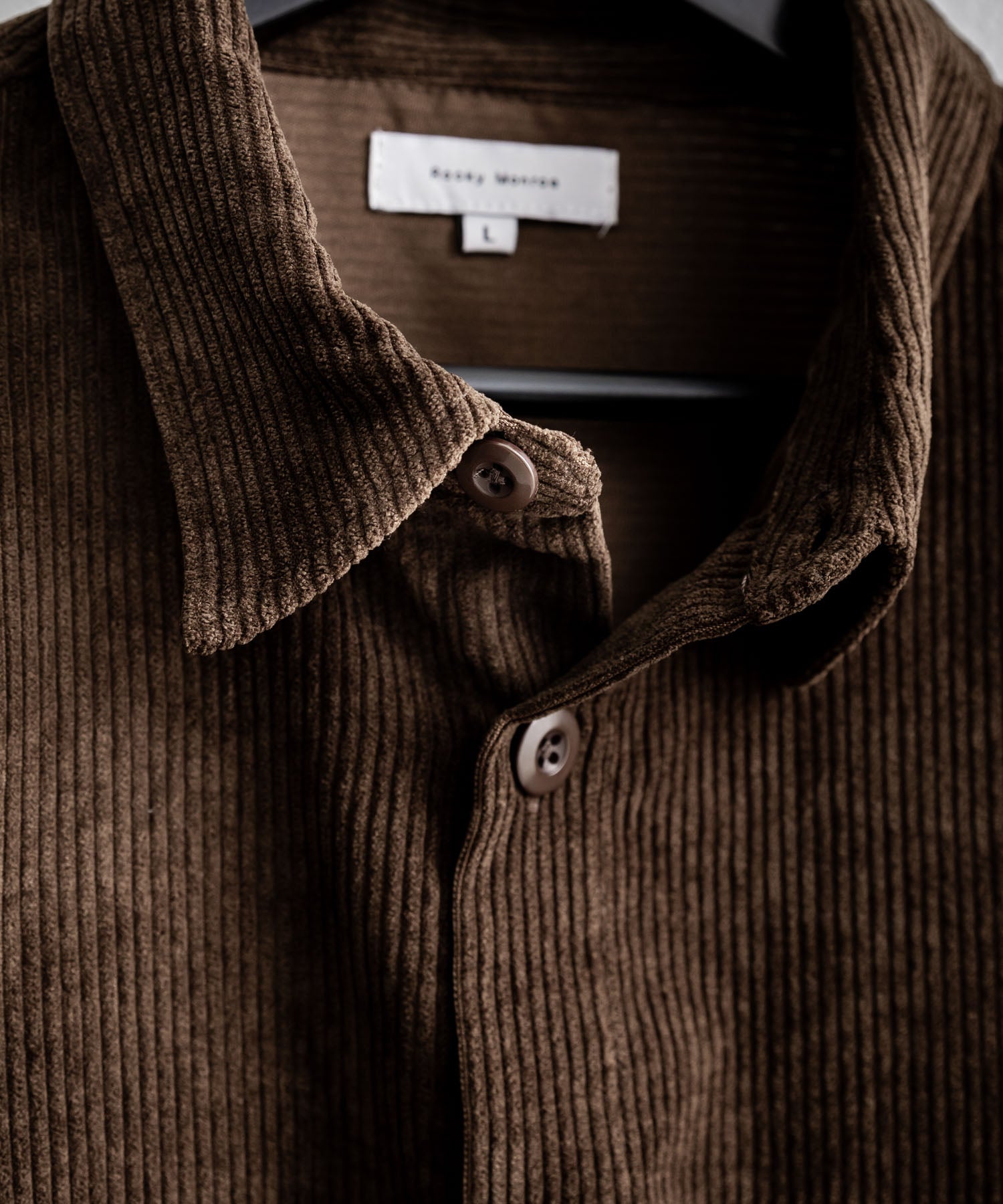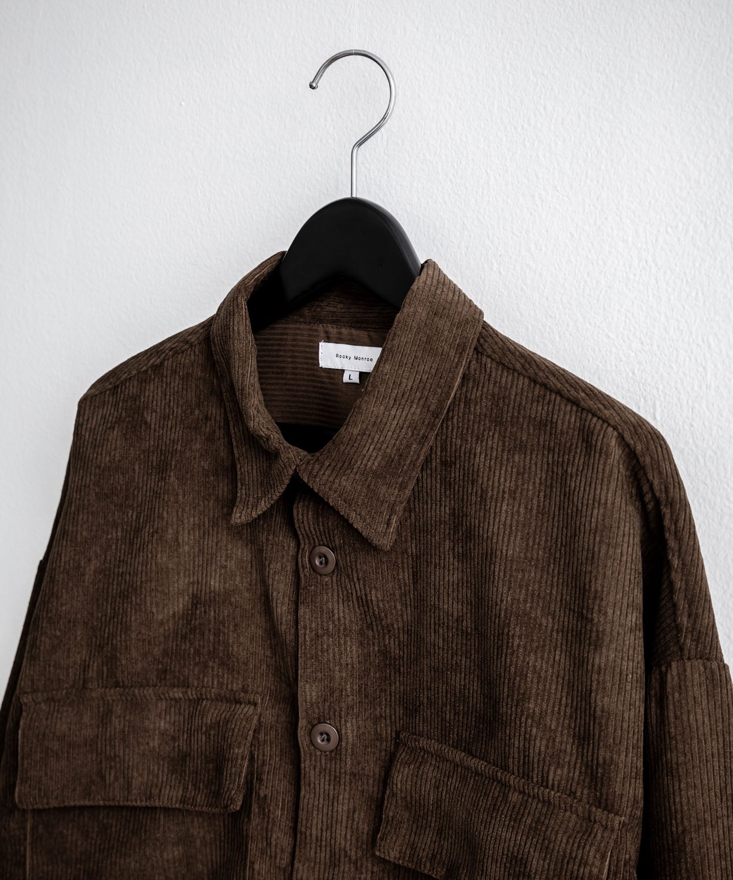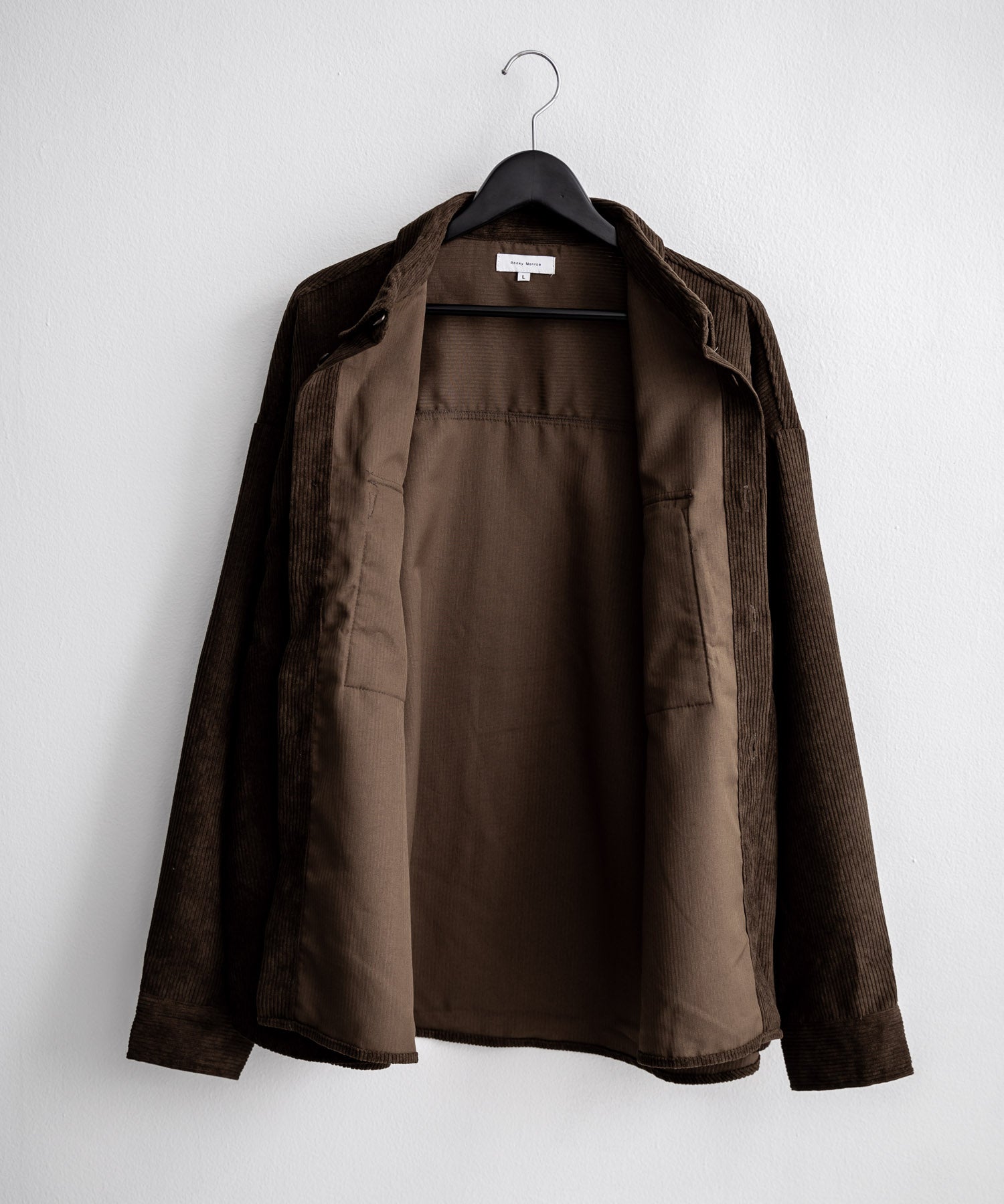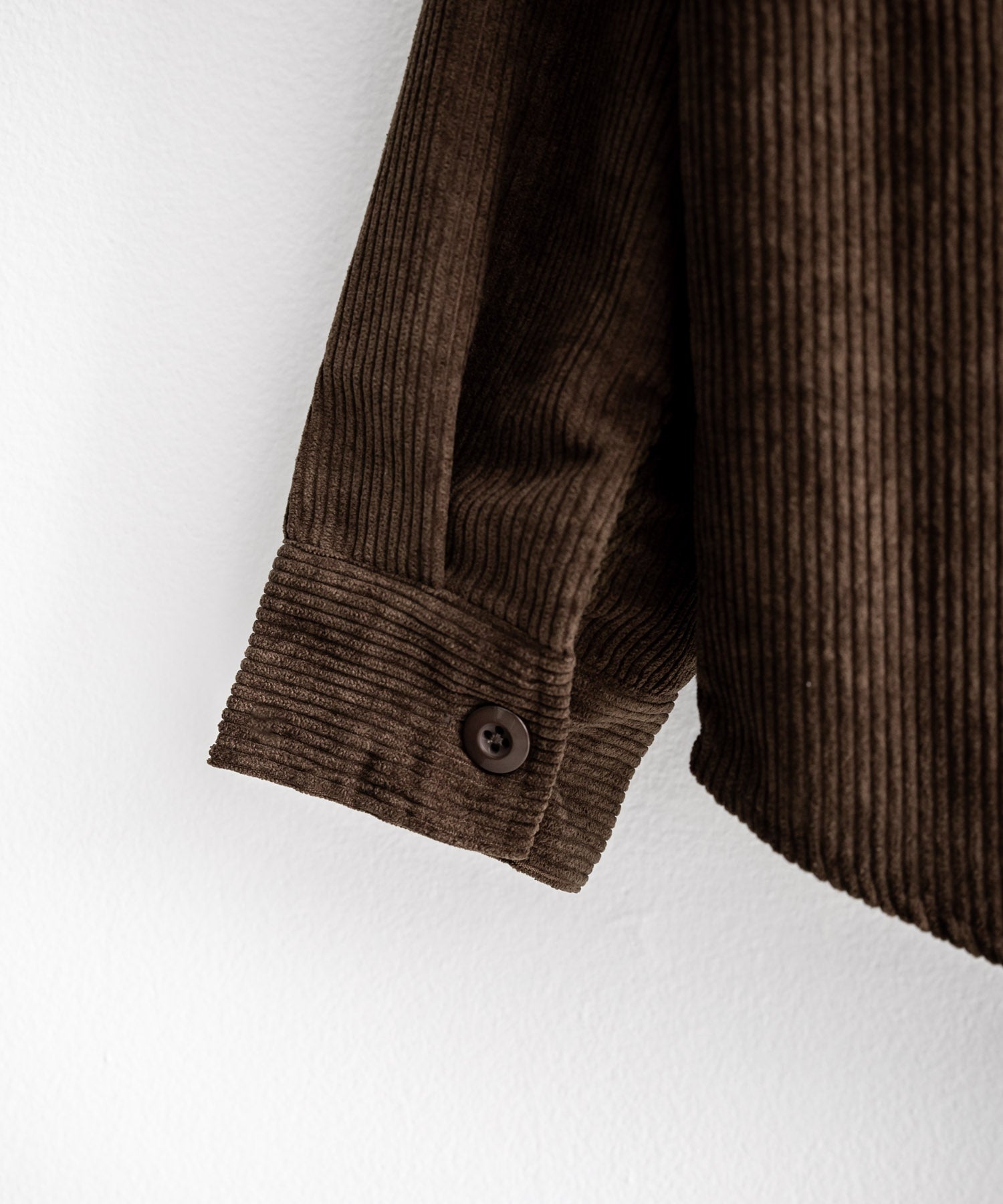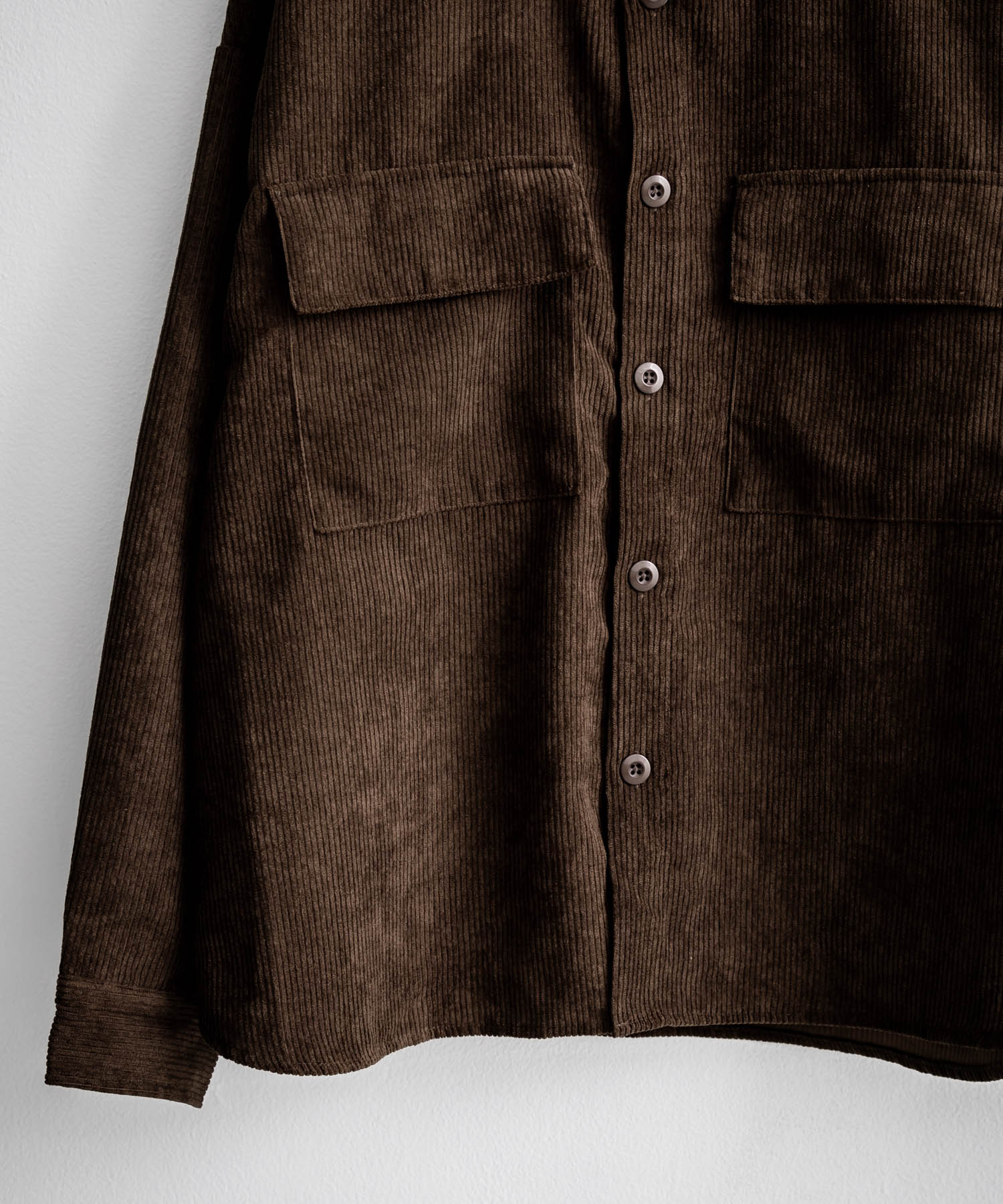 Made from 8-wale thick corduroy fabric, characterized by a three-dimensional texture and a warm appearance.