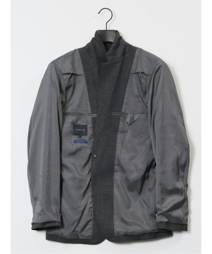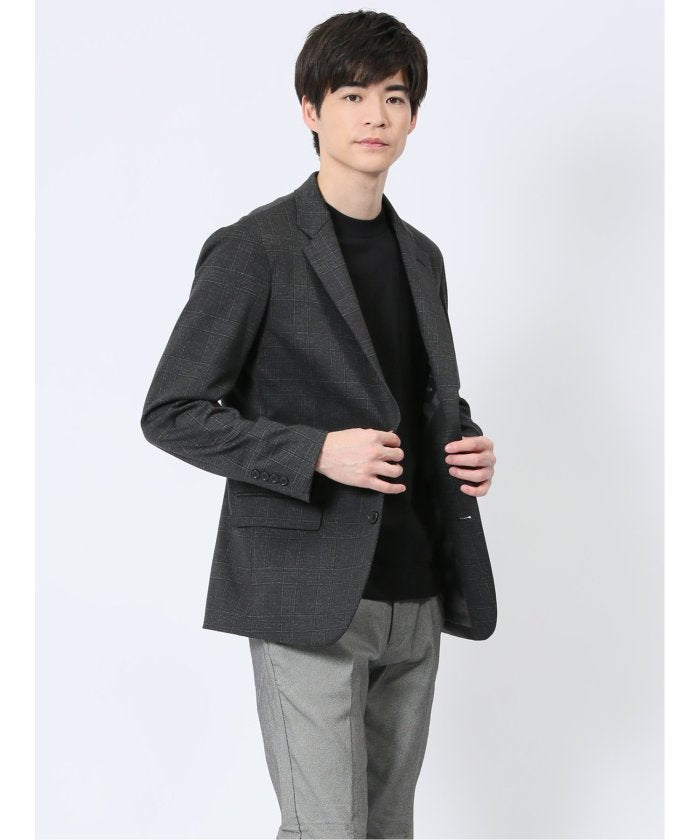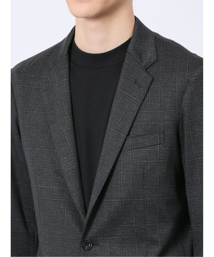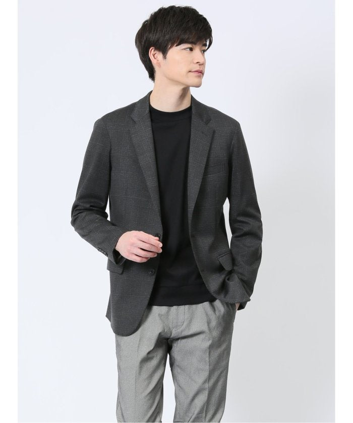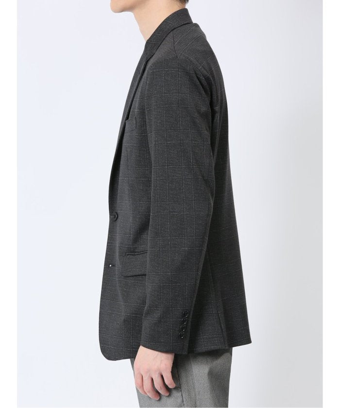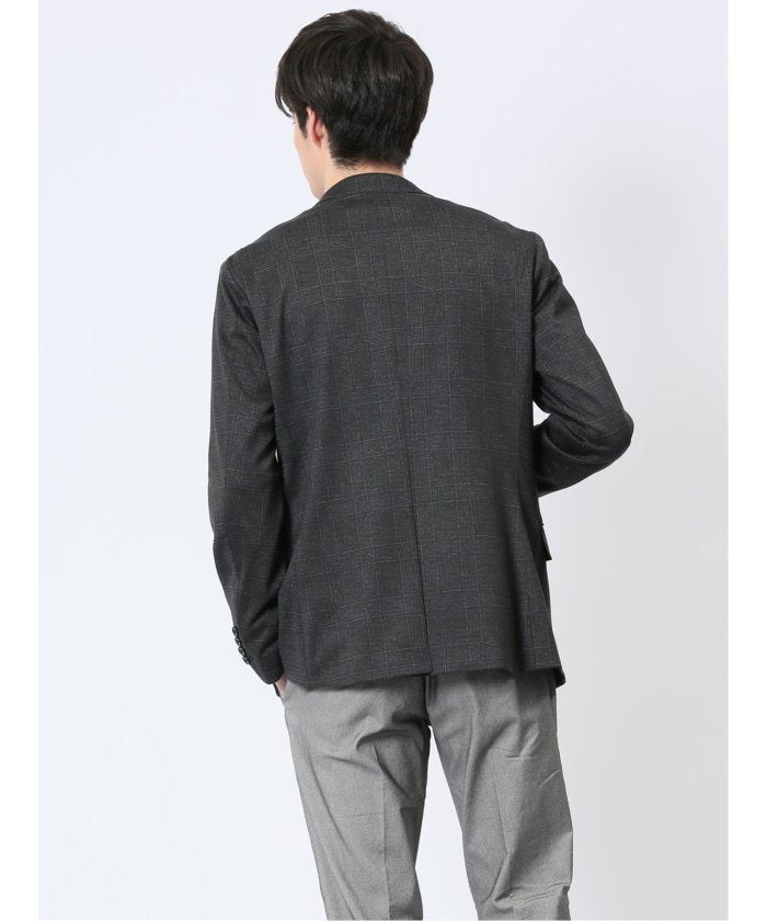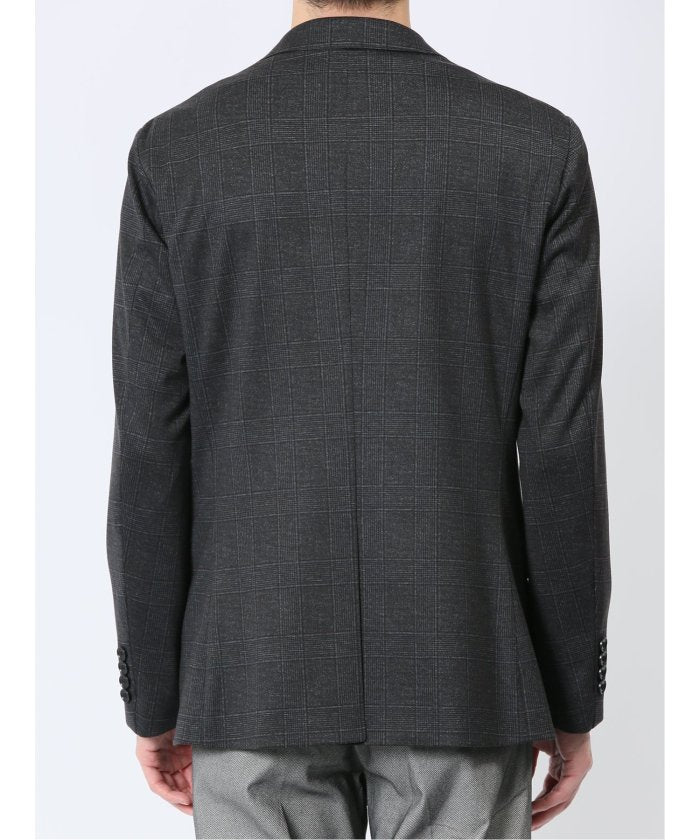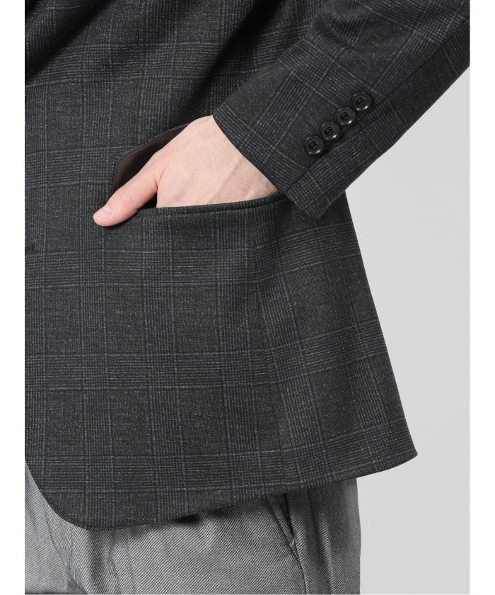 Takakyū TAKA-Q Stretch Ponte Slim Fit 2-Button Jacket Glen Check Navy
