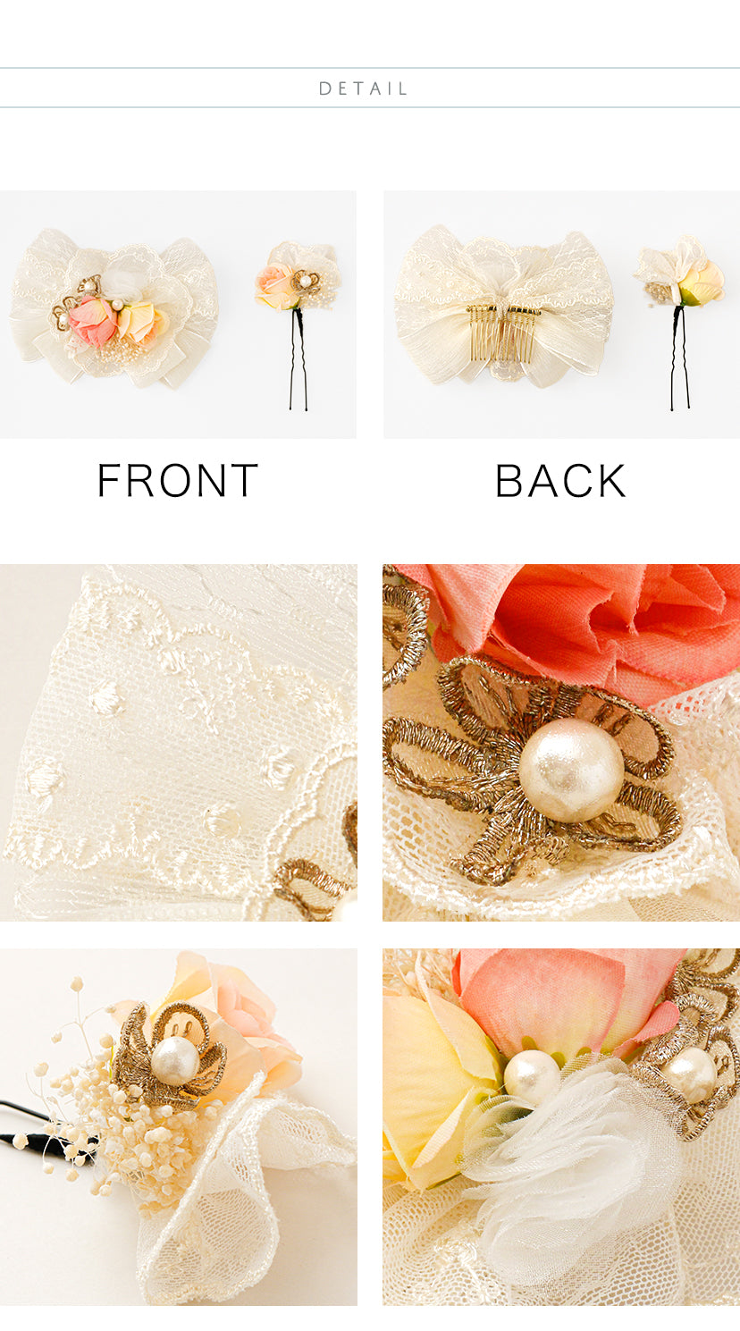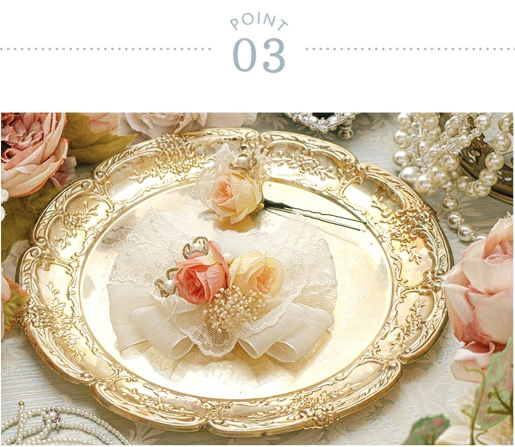 An elegant hair accessory set adorned with roses, delicate lace, and pearls.