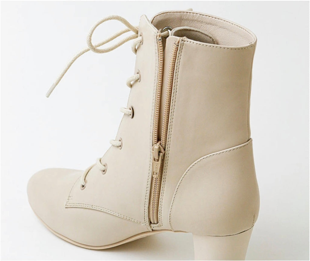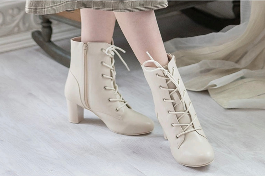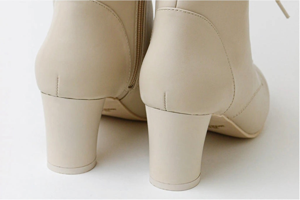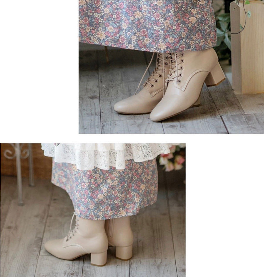 Actual size | ヒールの型:太めヒール, トゥタイプ:ラウンド, クロージング:ジッパー |