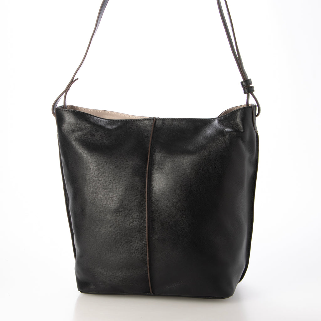 A one-shoulder bag made from supple and durable natural goat leather from Bangladesh