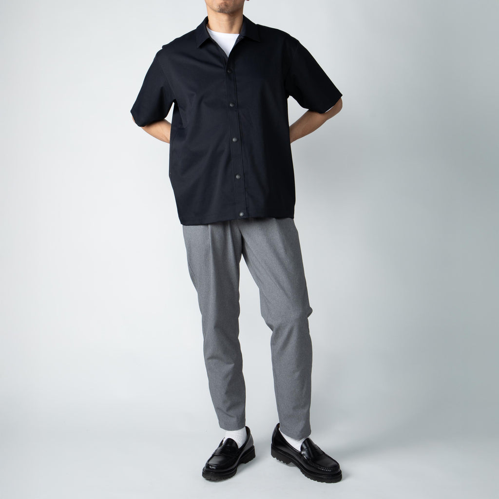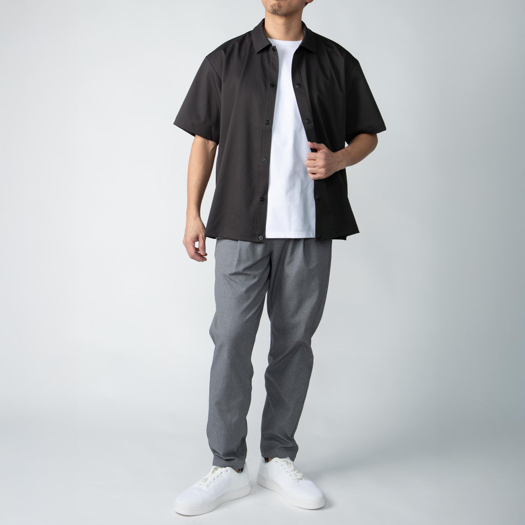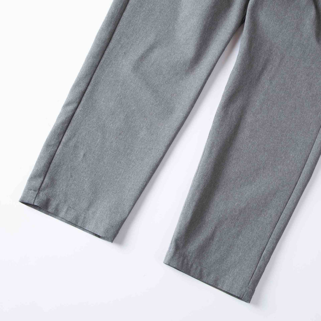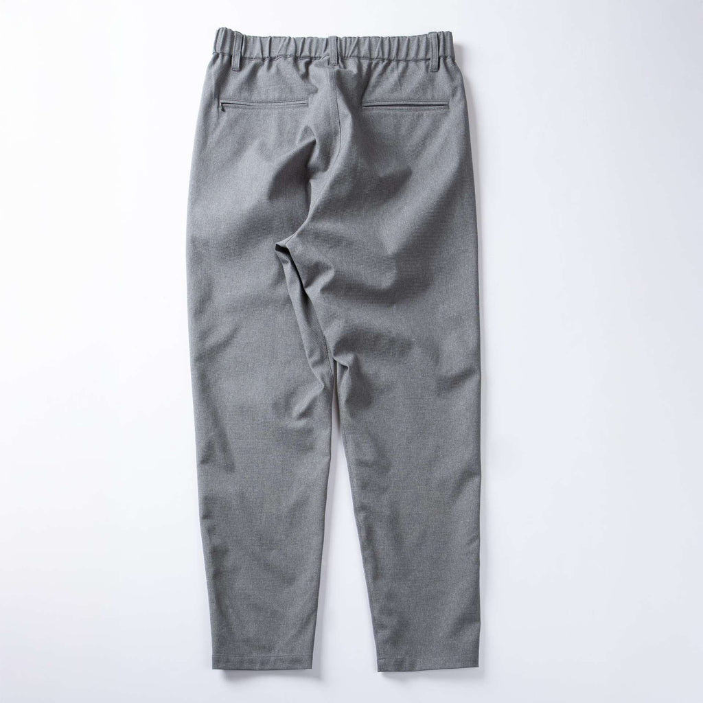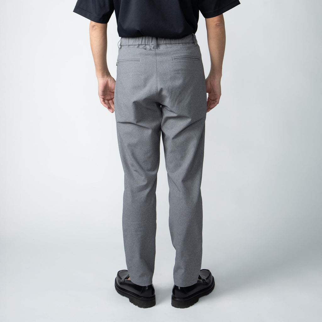 Pants with a tapered silhouette featuring tucks, achieving a summer-like clean and fresh style.
