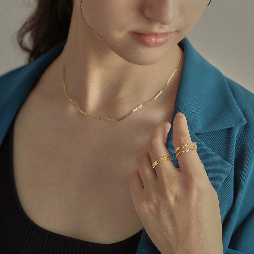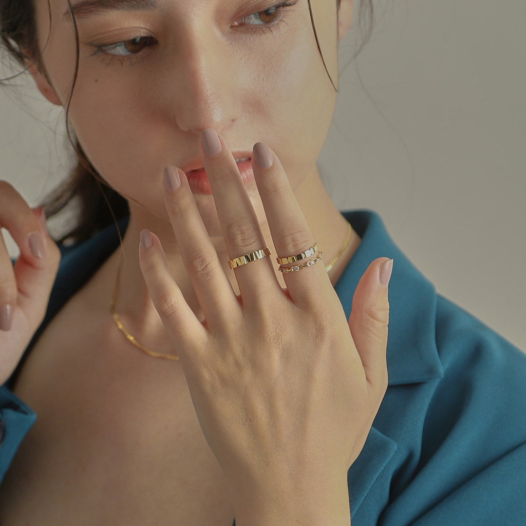 Cocoshnik COCOSHNIK K18 Diamond Long Cut Azuki Chain Ring
