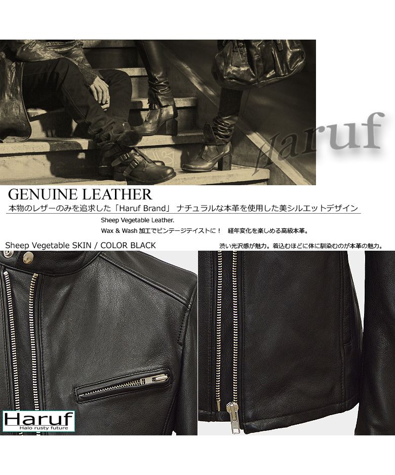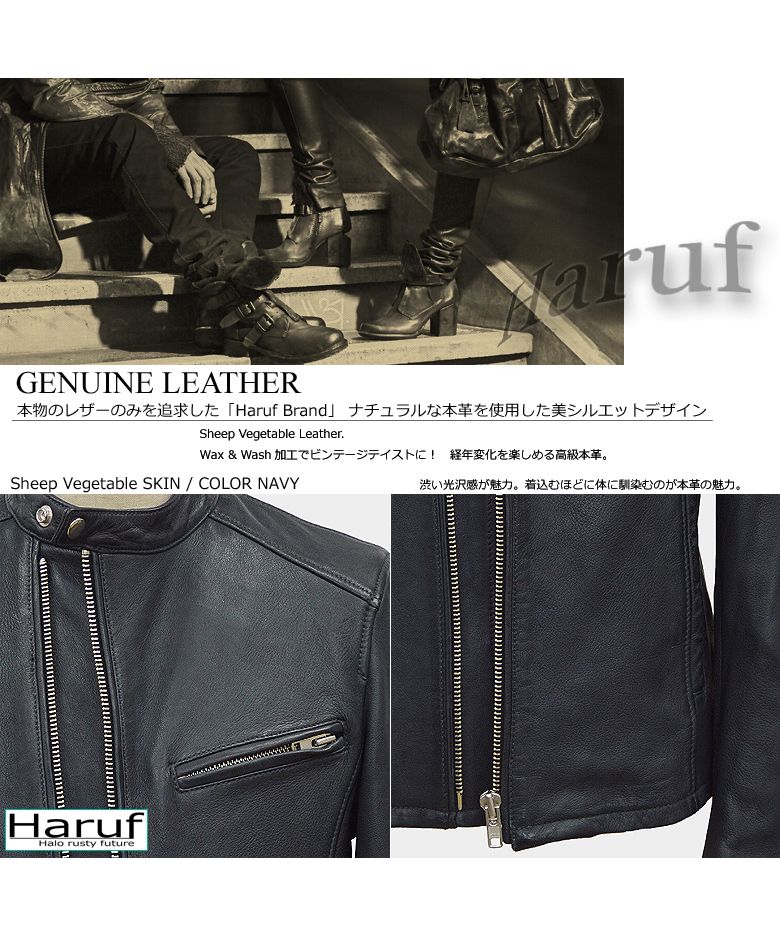 This is a genuine lamb leather jacket tanned with naturally friendly plant-based vegetable tannins. The soft and comfortable lamb leather conforms to your body the more you wear it, making it feel light. You can also enjoy the aging process unique to genuine leather jackets.