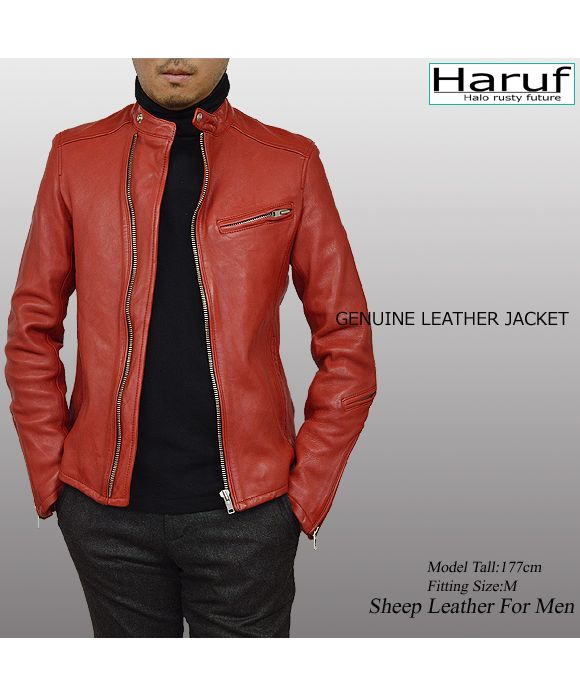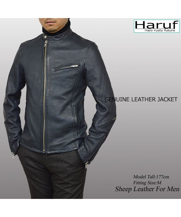 Haruf Single Riders Jacket Leather Jacket Men's Genuine Leather Diagonal Zip Simple Autumn Winter Spring Men's Outerwear RSW1