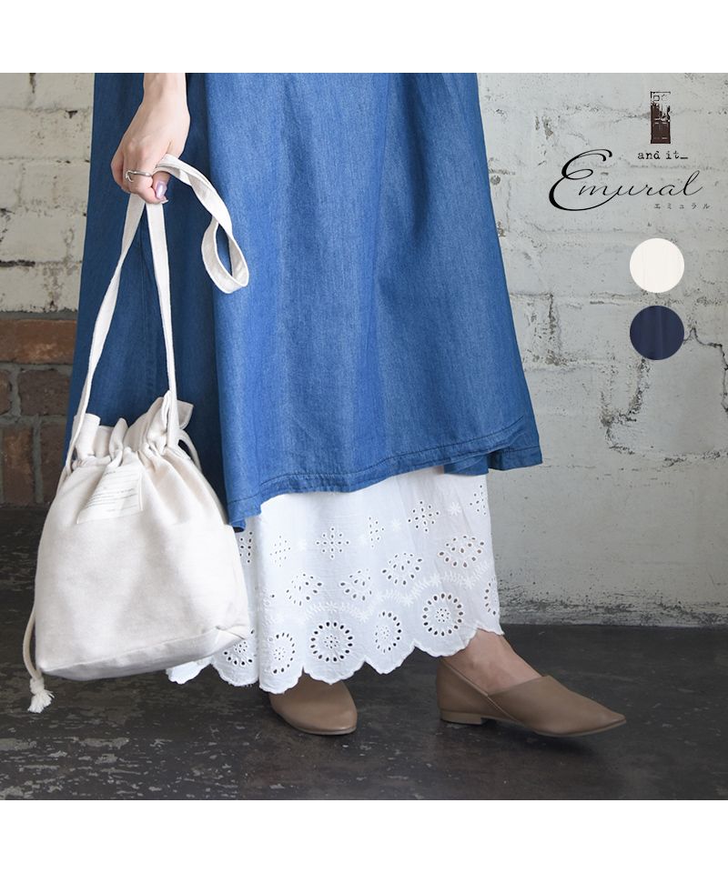 And it and it_ Emural Hem Lace Cotton Petticoat [M-L] Ladies Spring Summer Autumn Winter Bottom Skirt Petticoat Off White Light Beige navy Bra